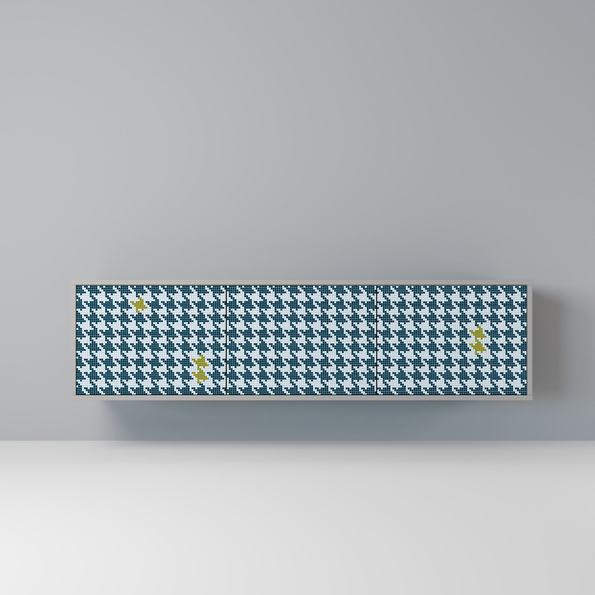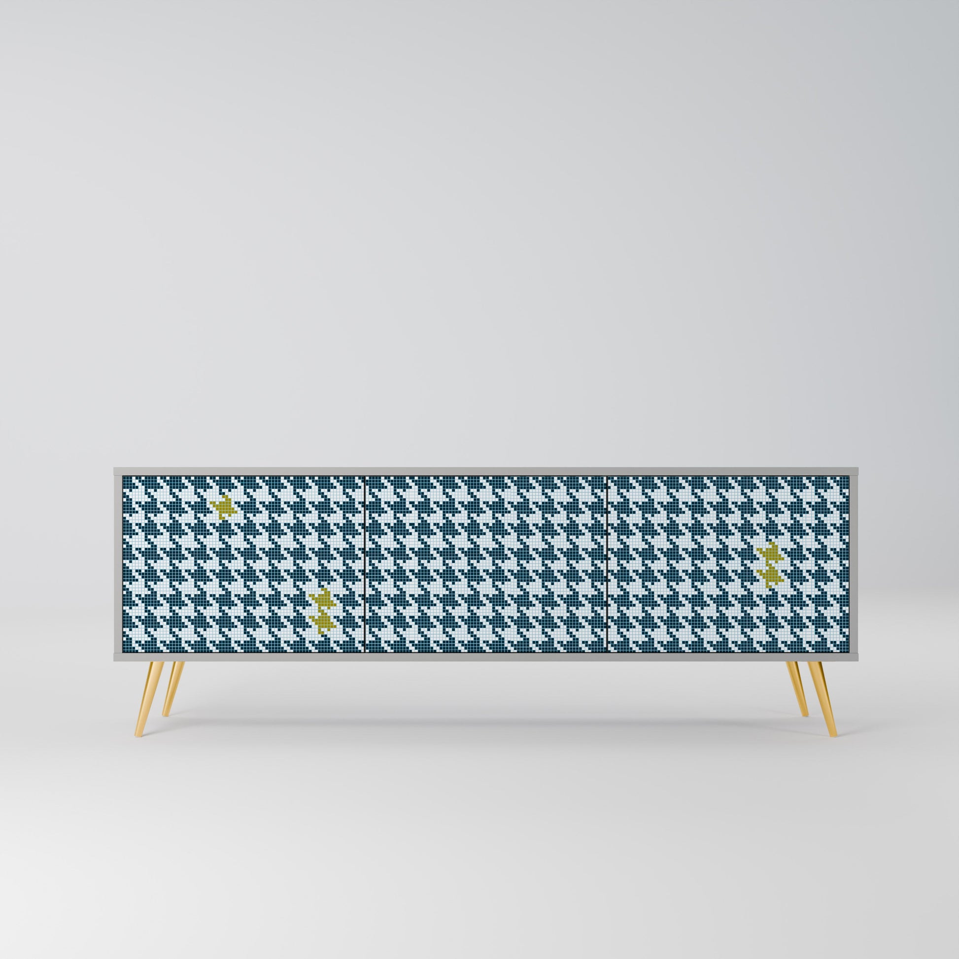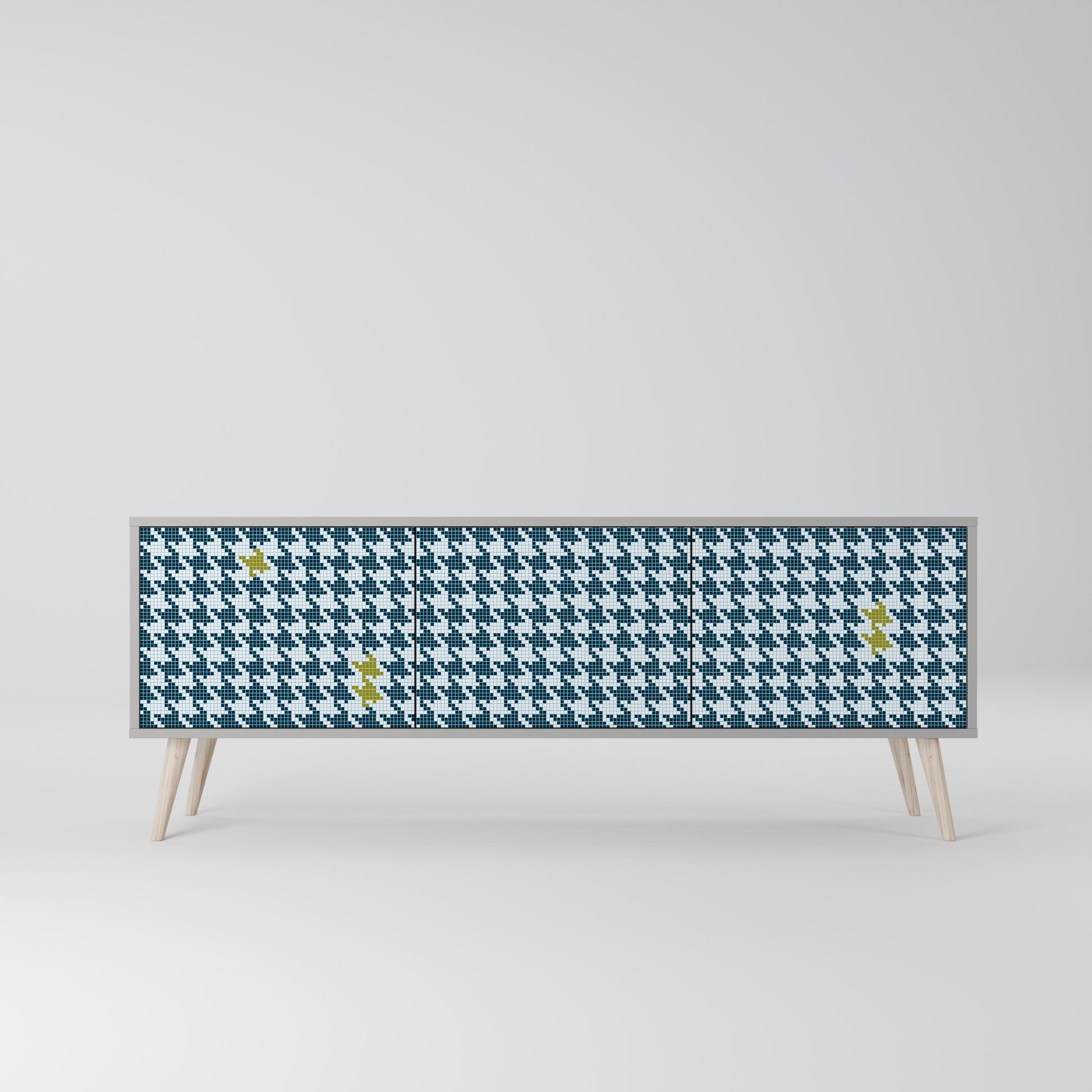 The grey body of the stand creates a refined, modern accent that pairs beautifully with industrial and minimalist arrangements. The fronts with a designer print add character and uniqueness, making this piece not only practical but also a standout decorative element.