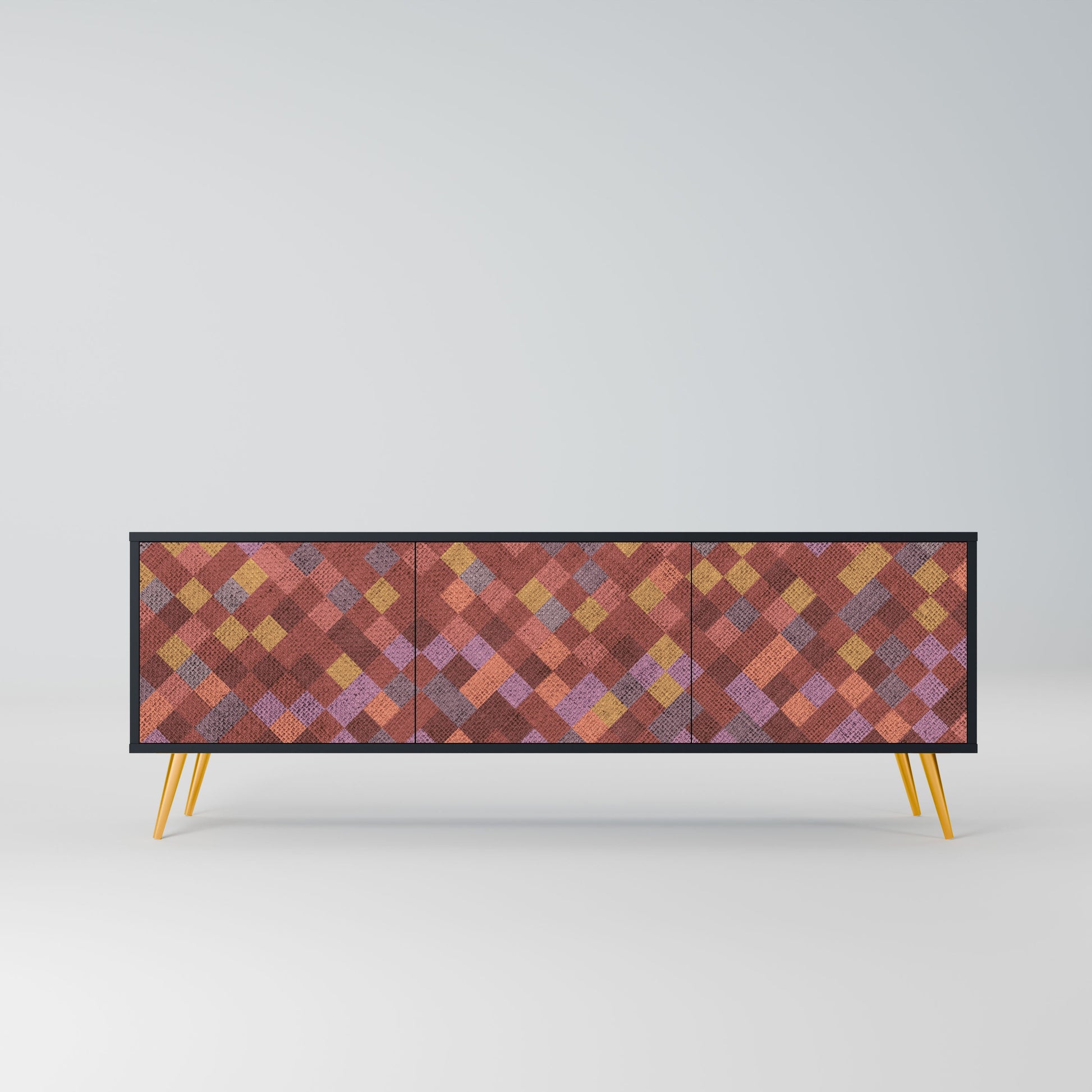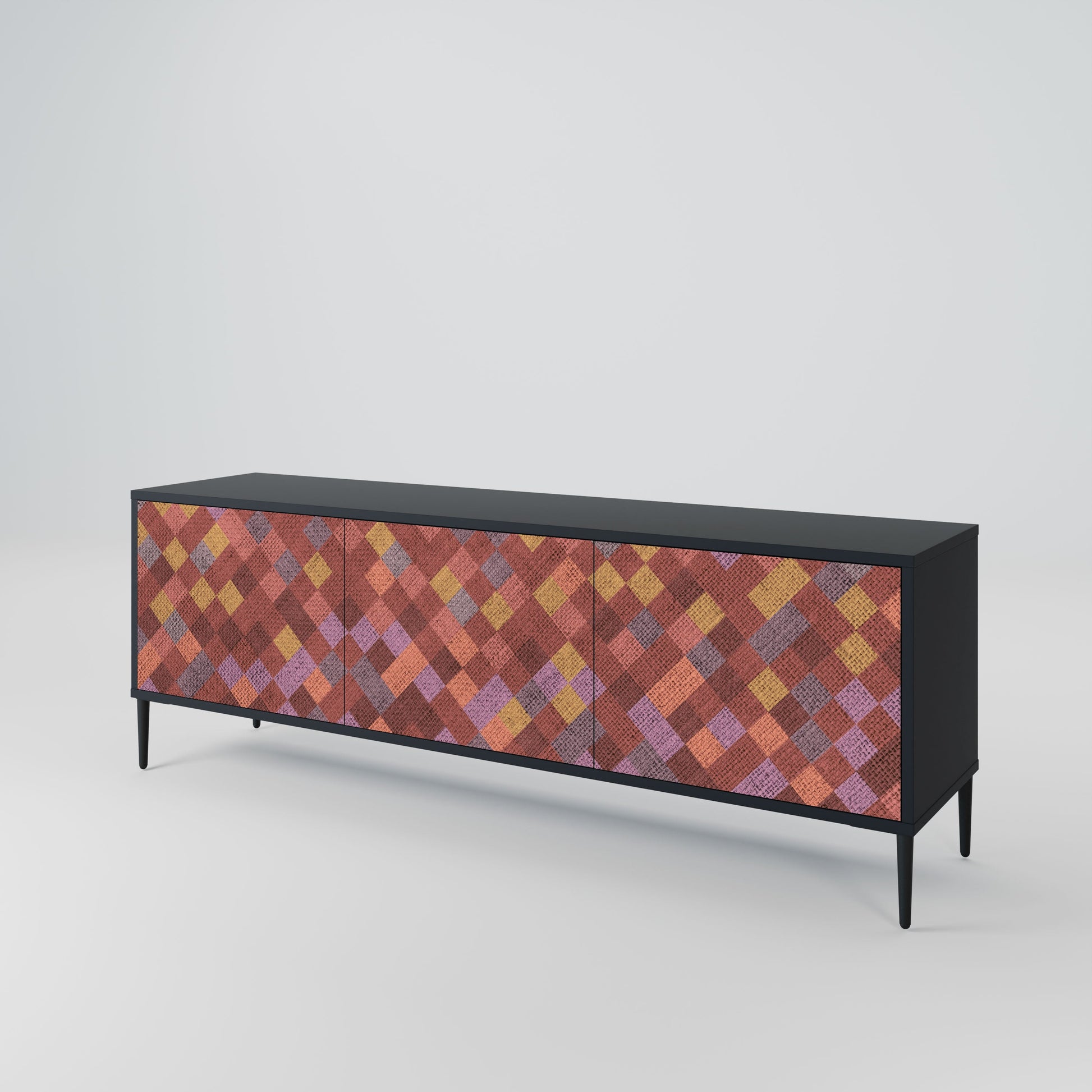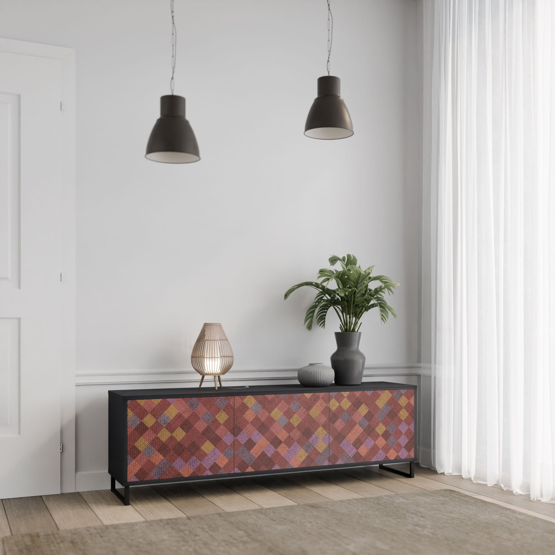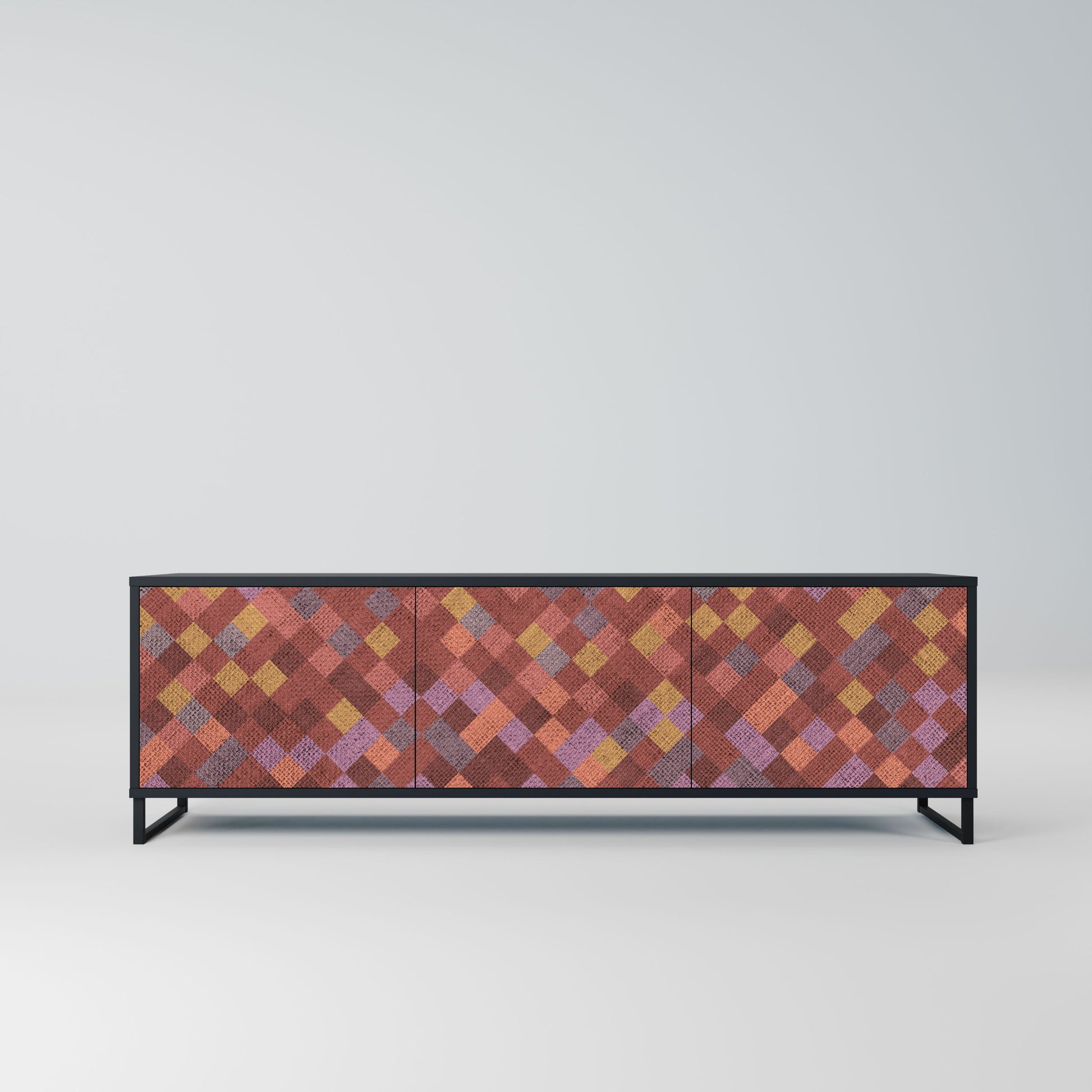PAINTED SQUARES 3-Door TV Stand in Black Finish