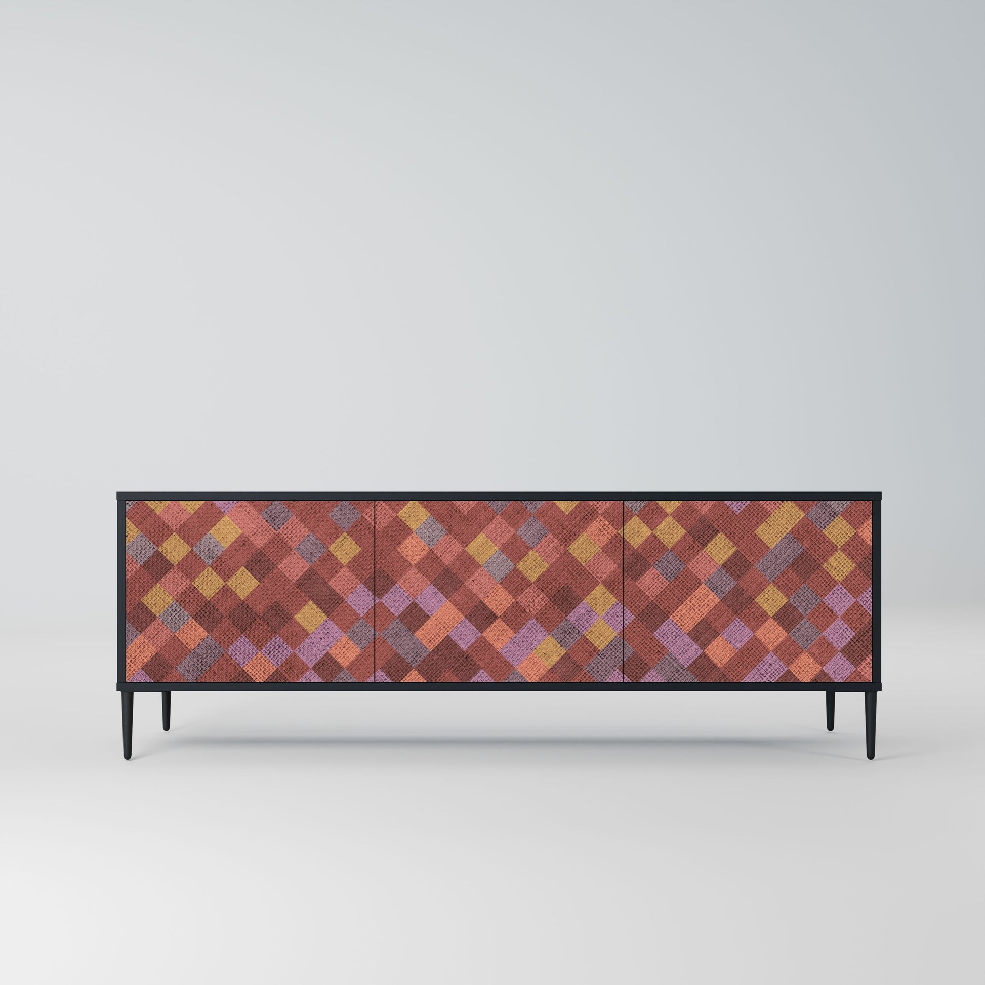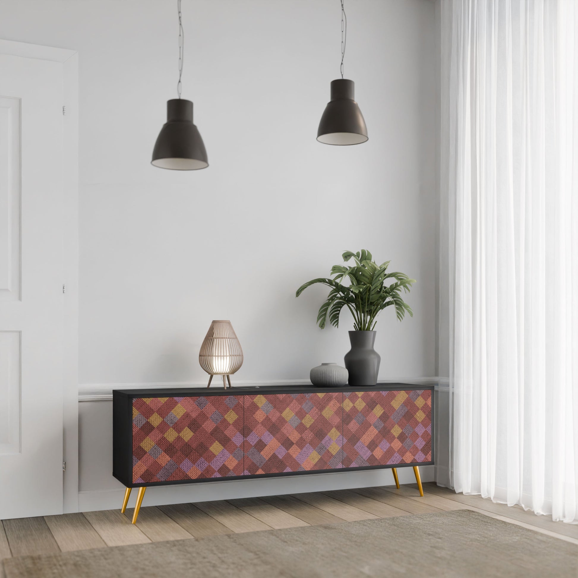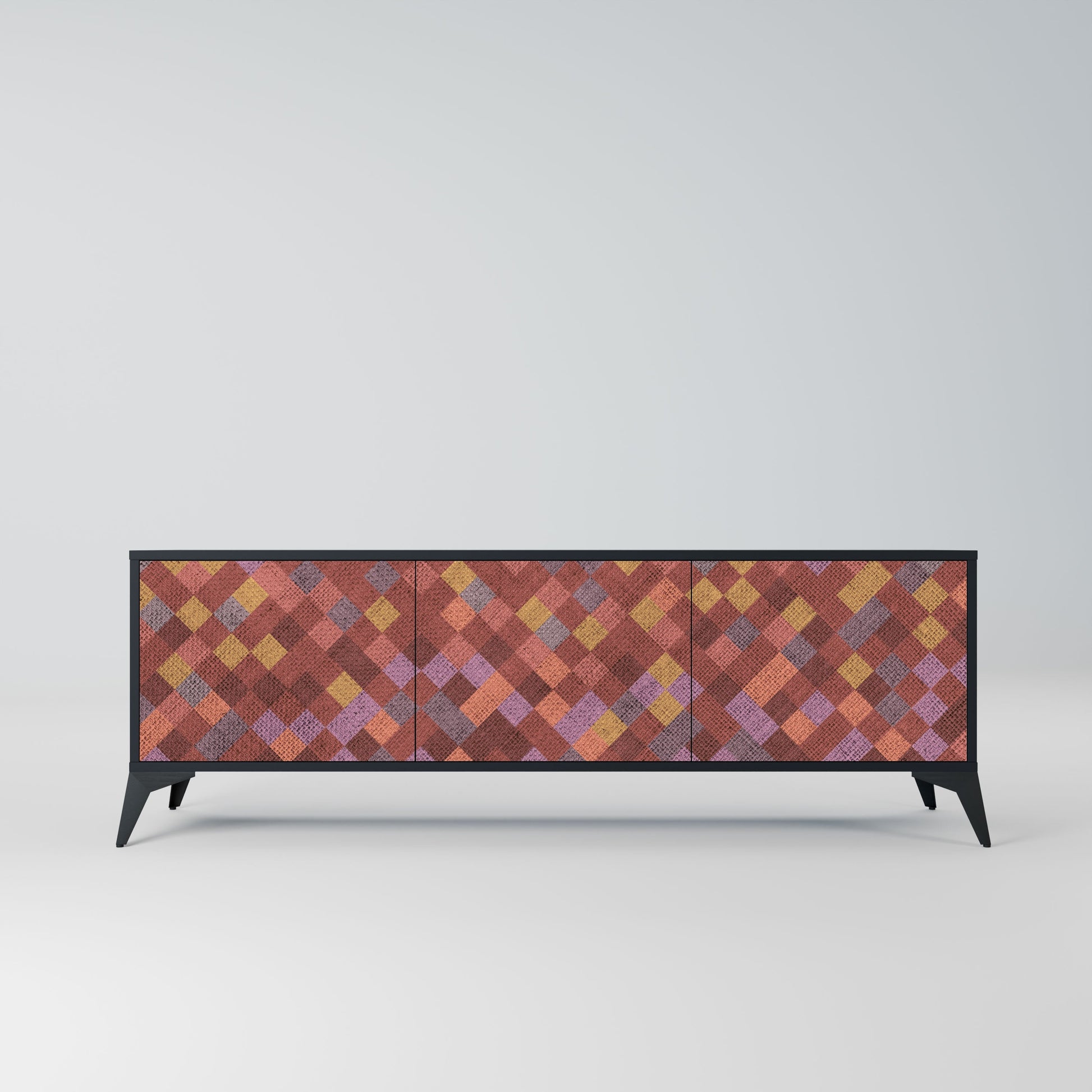 PAINTED SQUARES 3-Door TV Stand in Black Finish