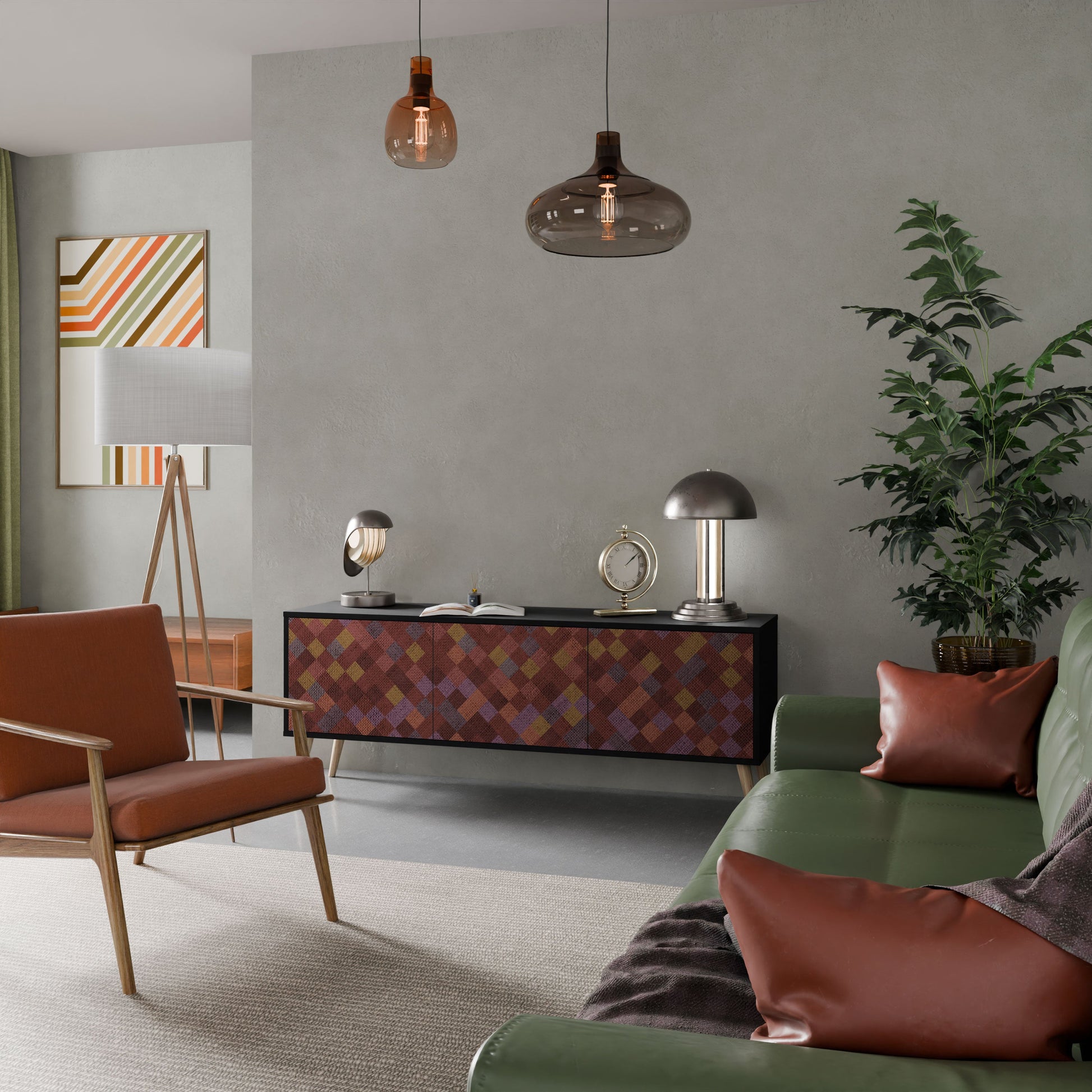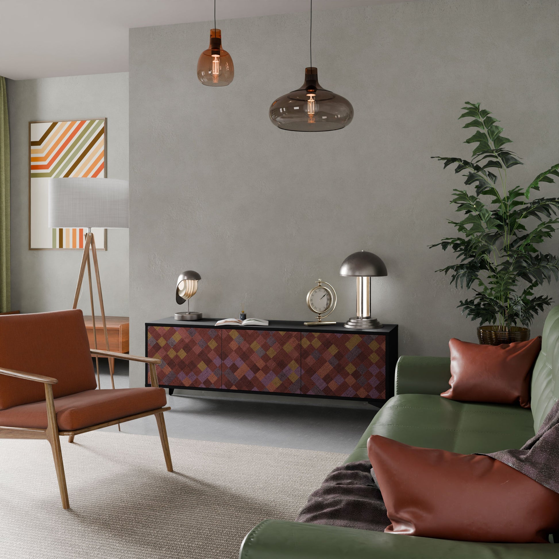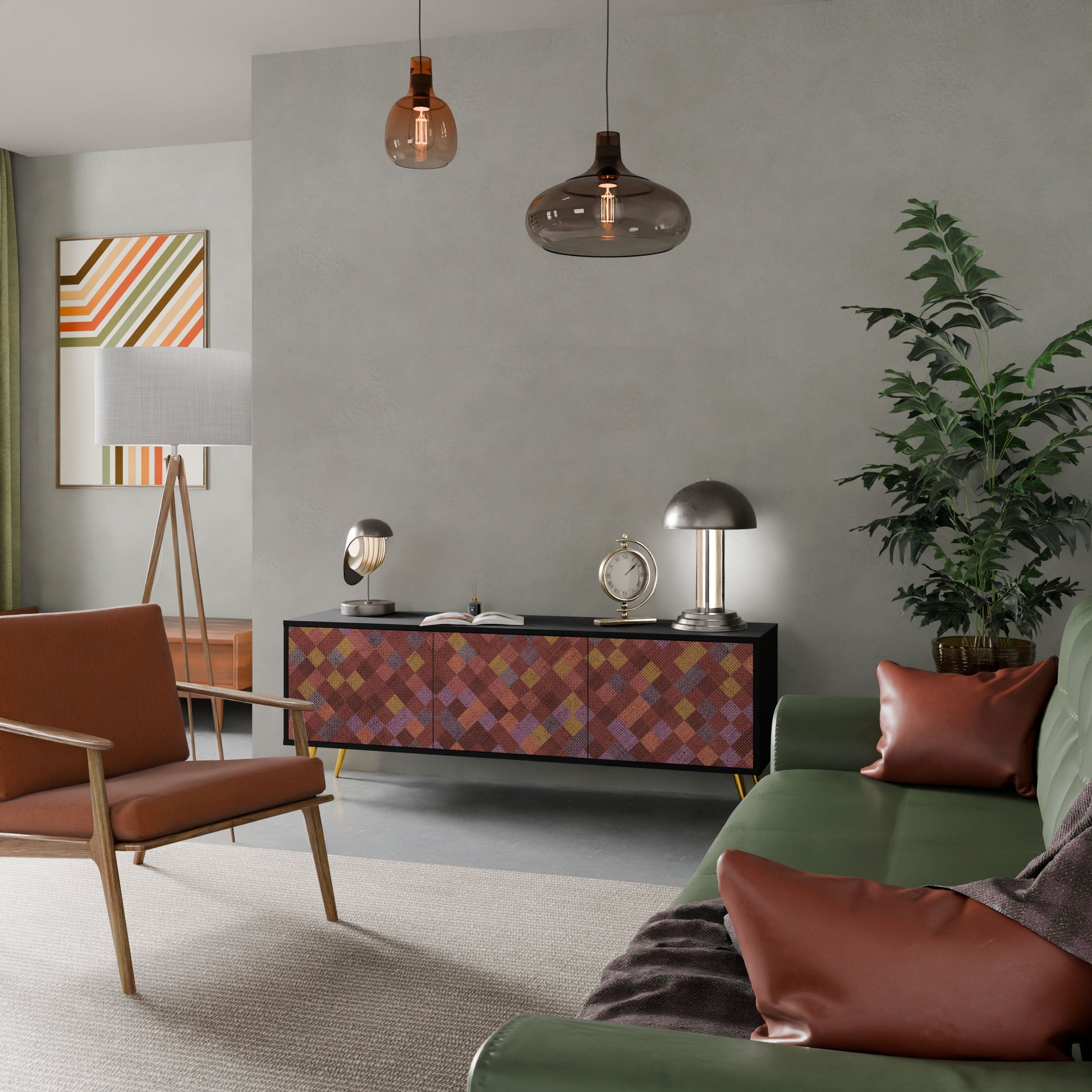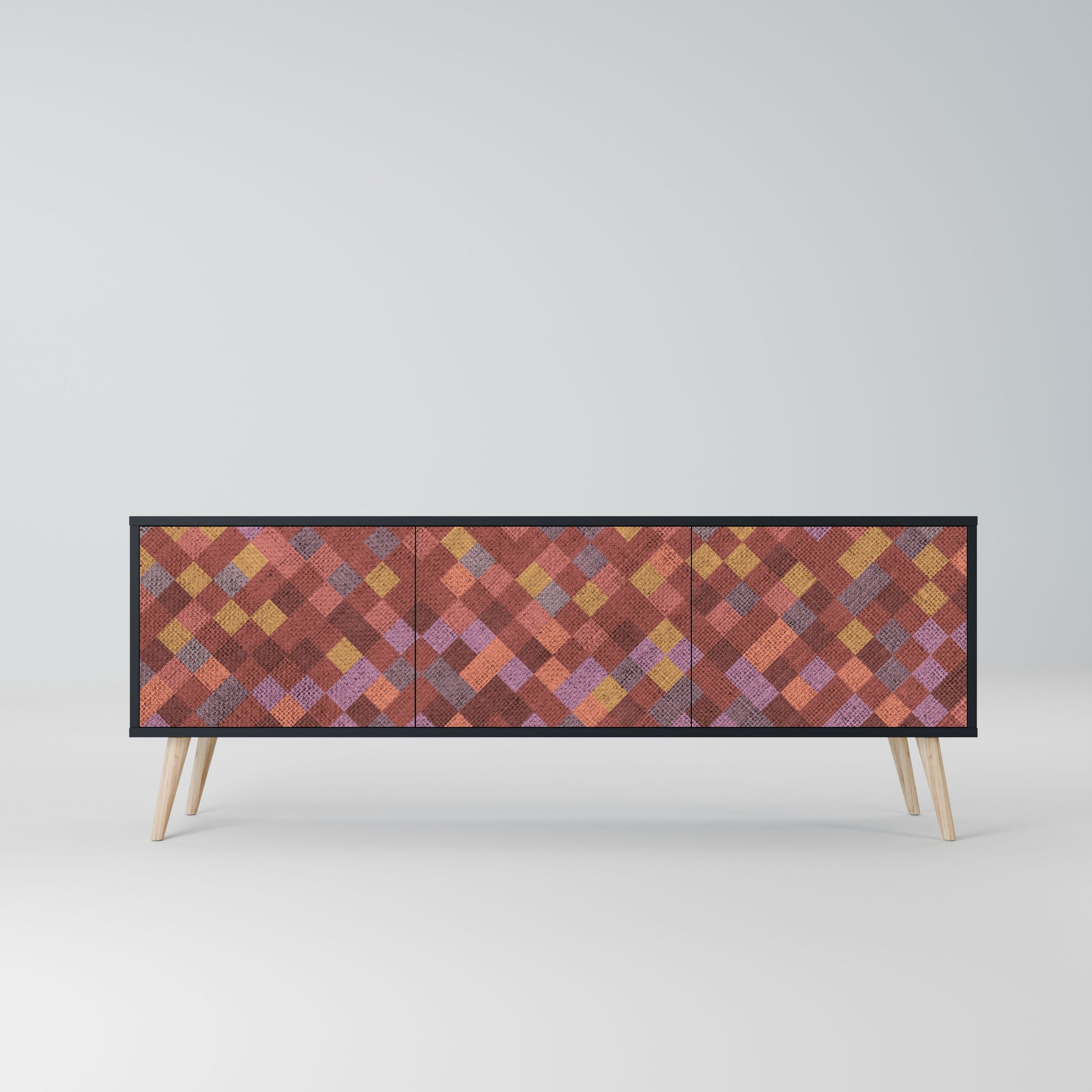 PAINTED SQUARES 3-Door TV Stand in Black Finish