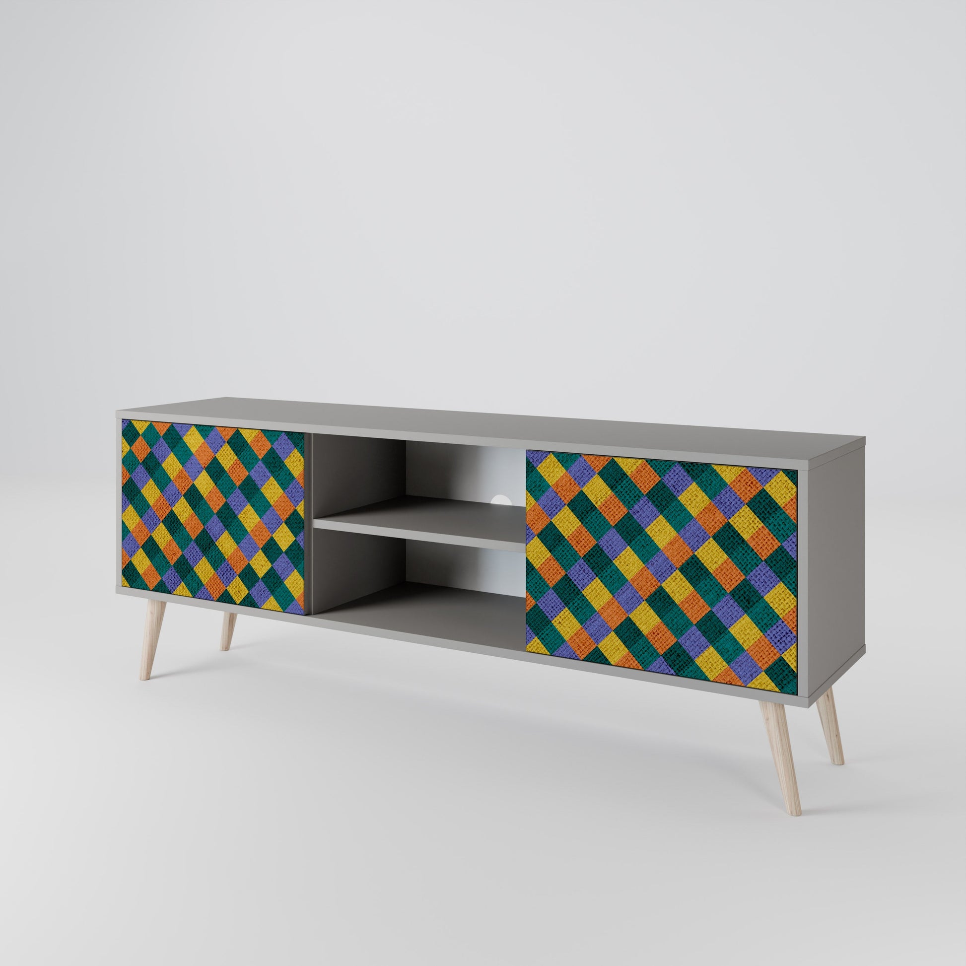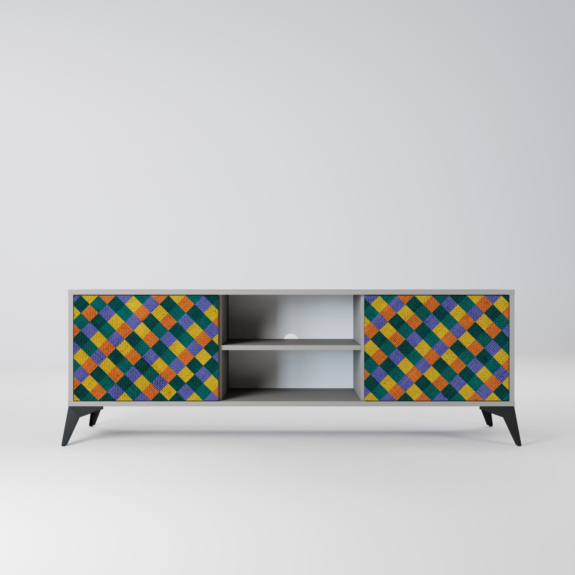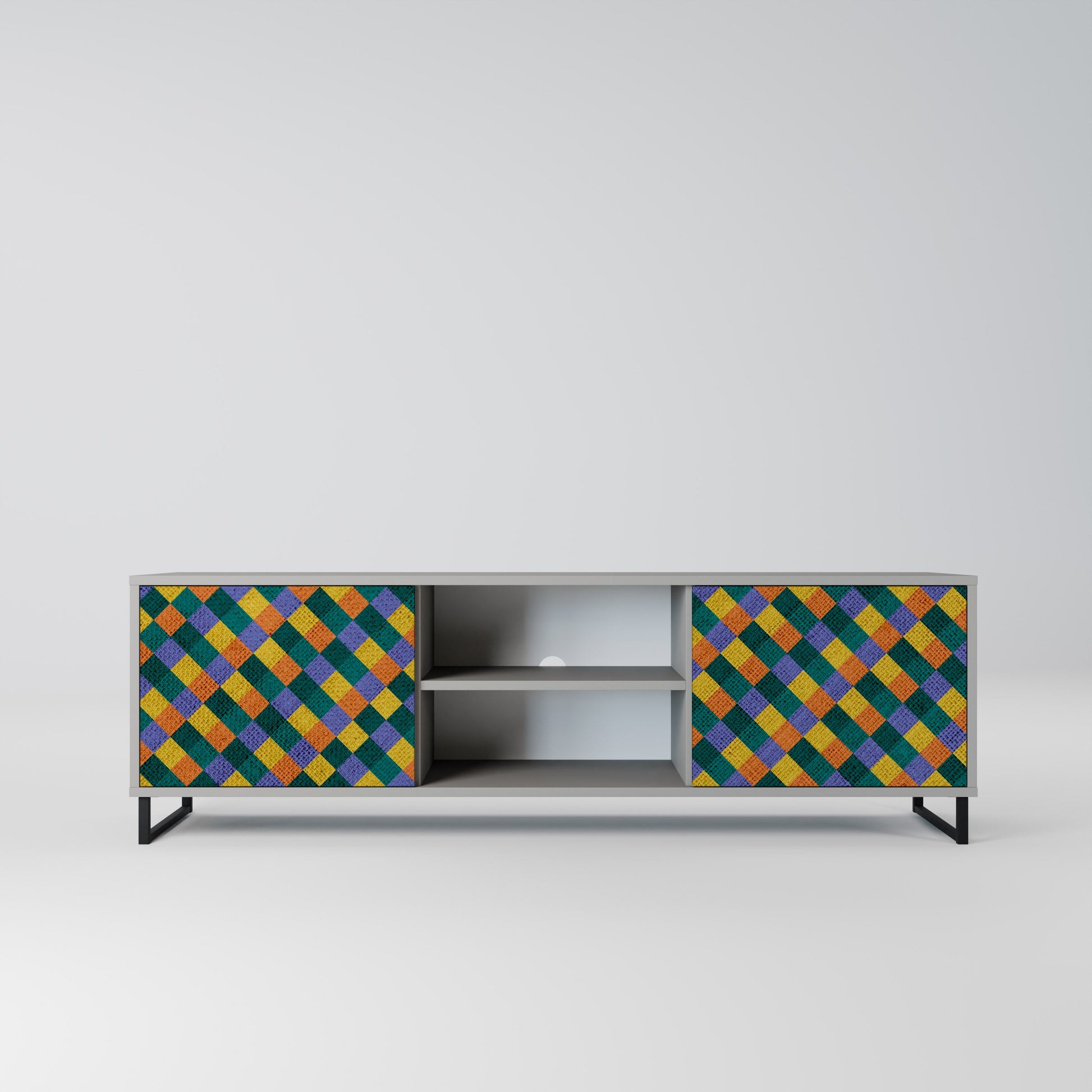 PAINTED SQUARES MIX 2-Door TV Stand in Grey Finish