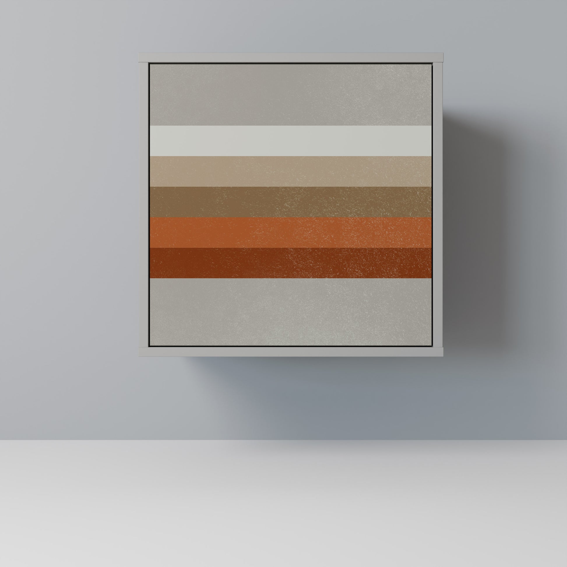 This compact yet remarkably elegant piece of furniture impresses with its minimalist design, perfectly fitting into both modern and classic interiors. The subdued grey color of the body gives the furniture a subtle yet distinctive character, while the fronts with a unique print add an artistic touch.