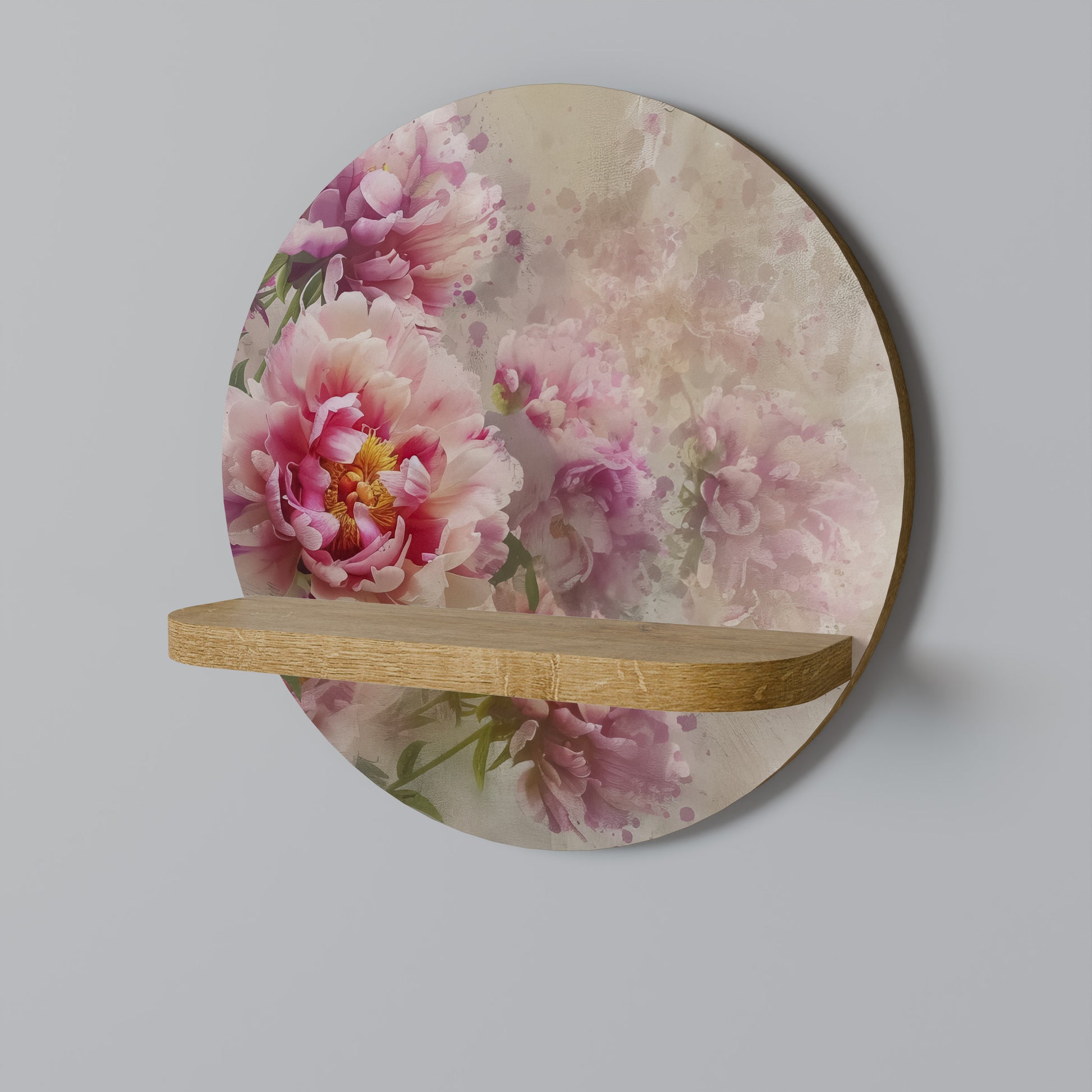 PEONY WHISPER Round Art Shelf In Oak Effect