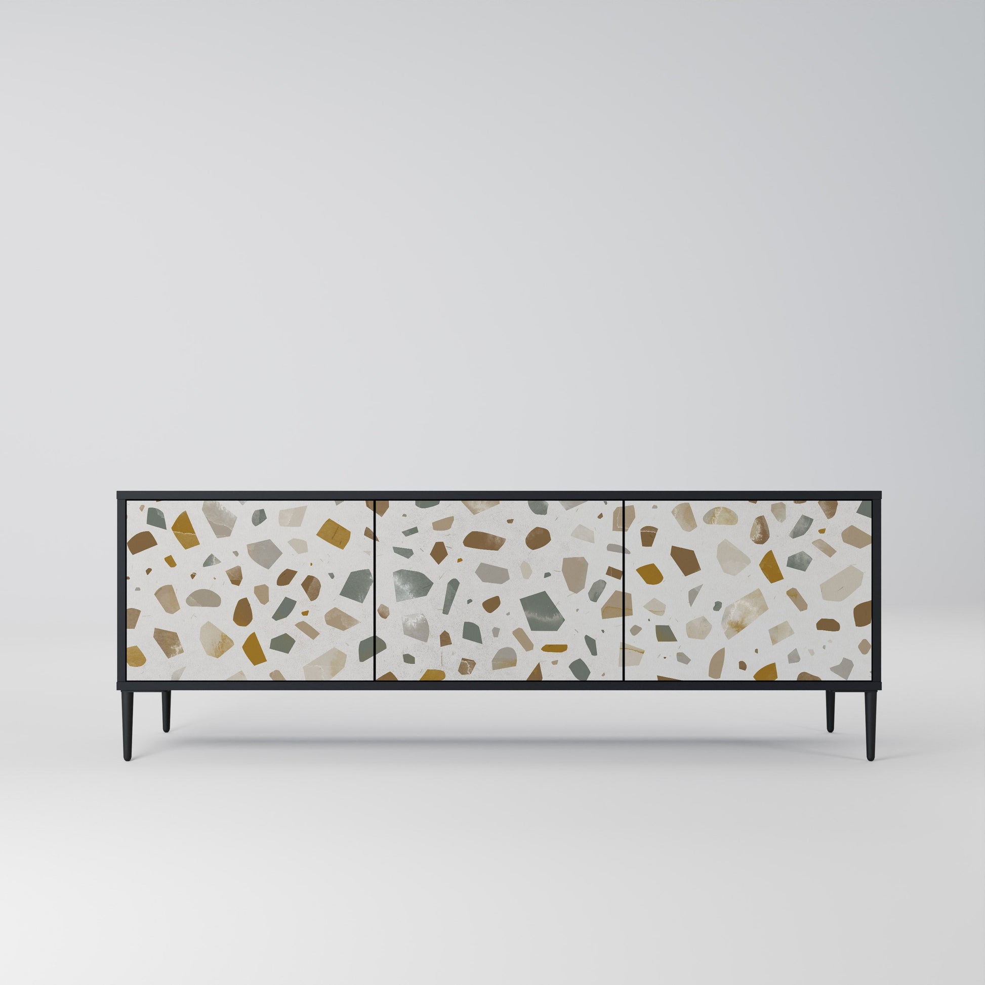 The black body of the stand creates a bold, modern accent that pairs beautifully with industrial and minimalist arrangements. The fronts with a designer print add character and uniqueness, making this piece not only practical but also a standout decorative element.