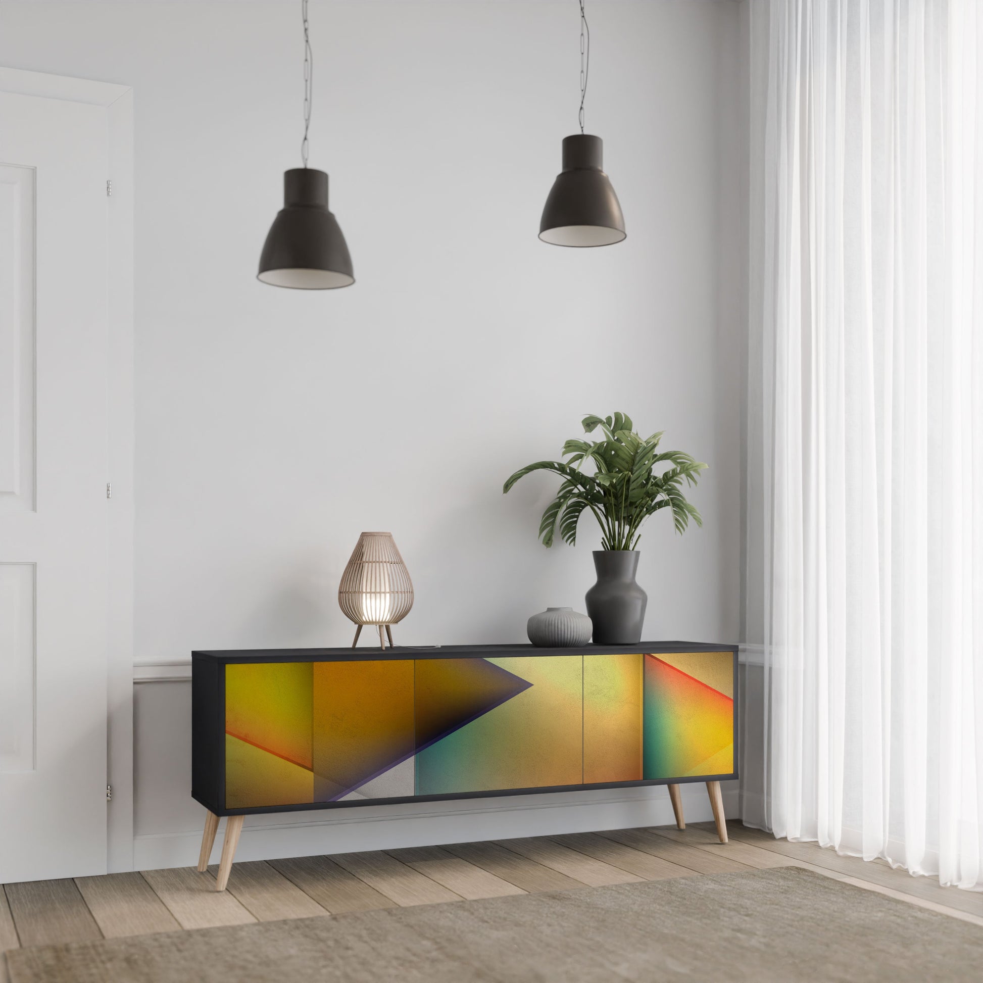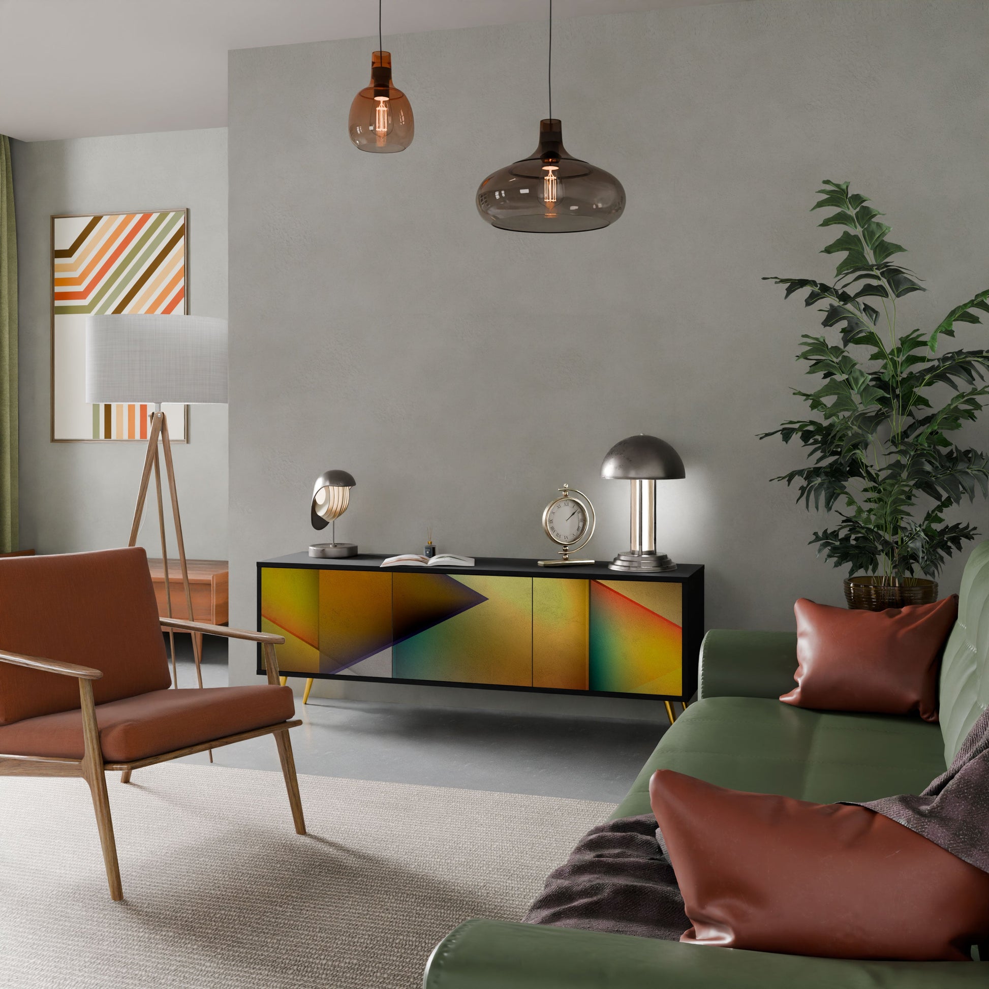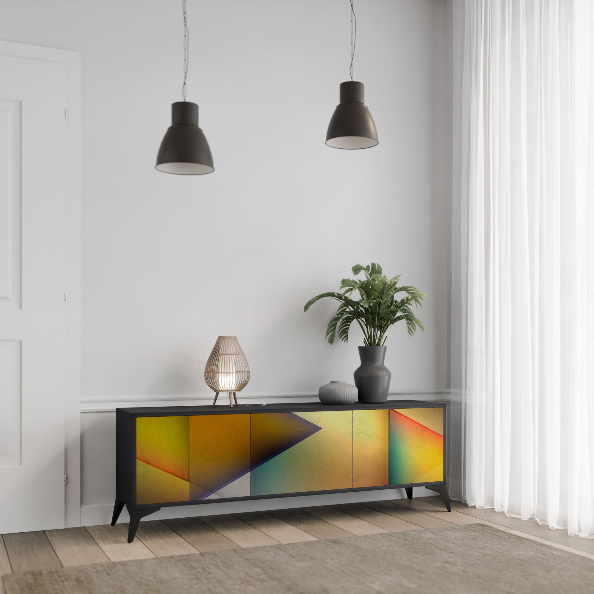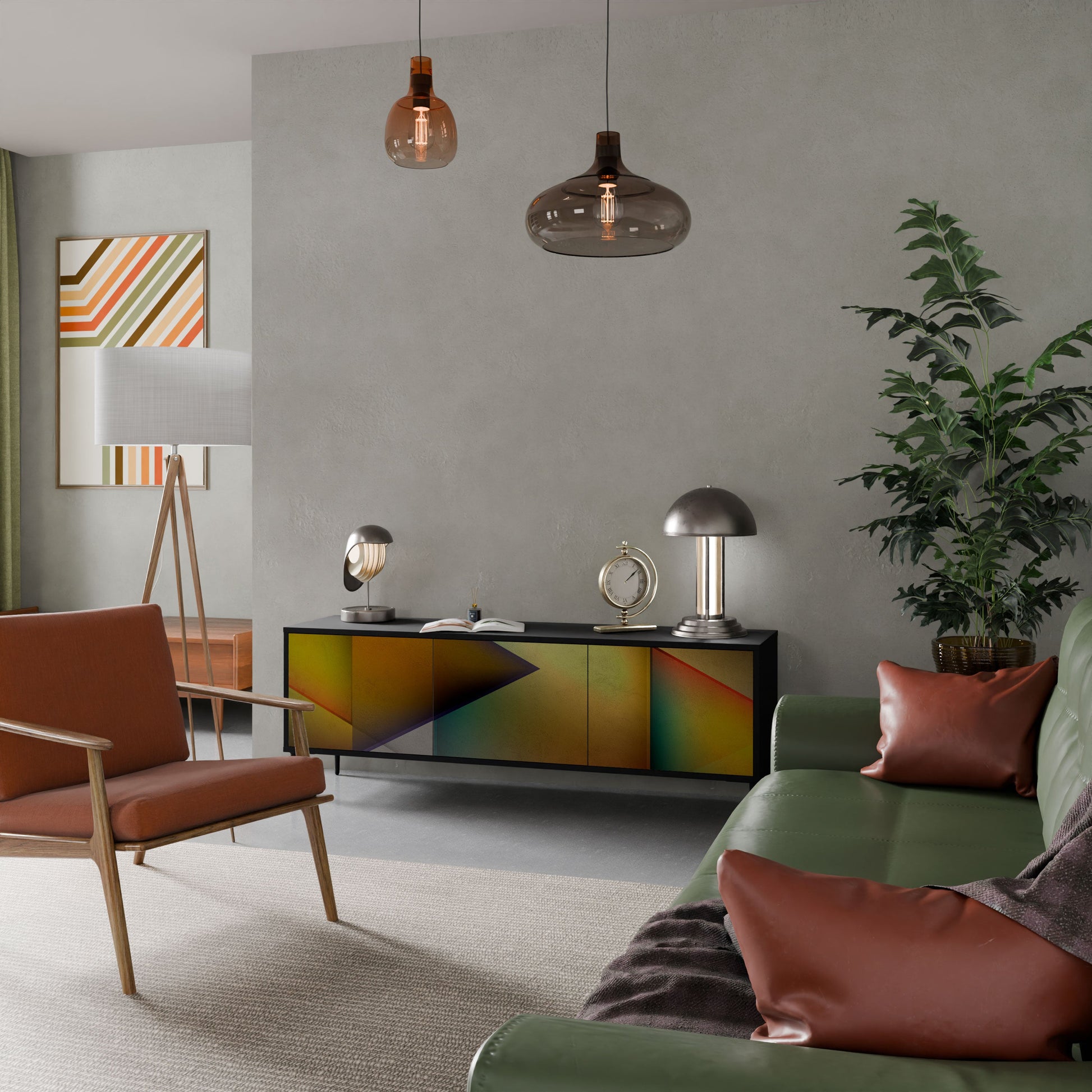 The black body of the stand creates a bold, modern accent that pairs beautifully with industrial and minimalist arrangements. The fronts with a designer print add character and uniqueness, making this piece not only practical but also a standout decorative element.