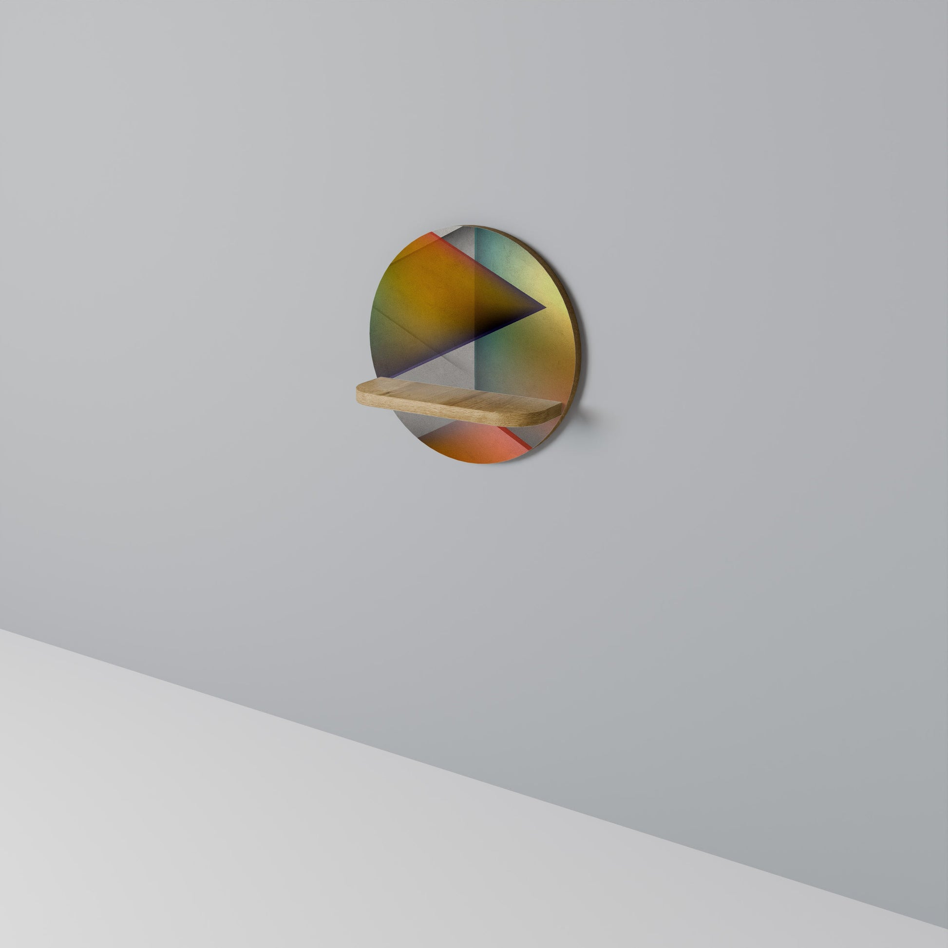 PIERCING SHARPNESS Round Art Shelf In Oak Effect