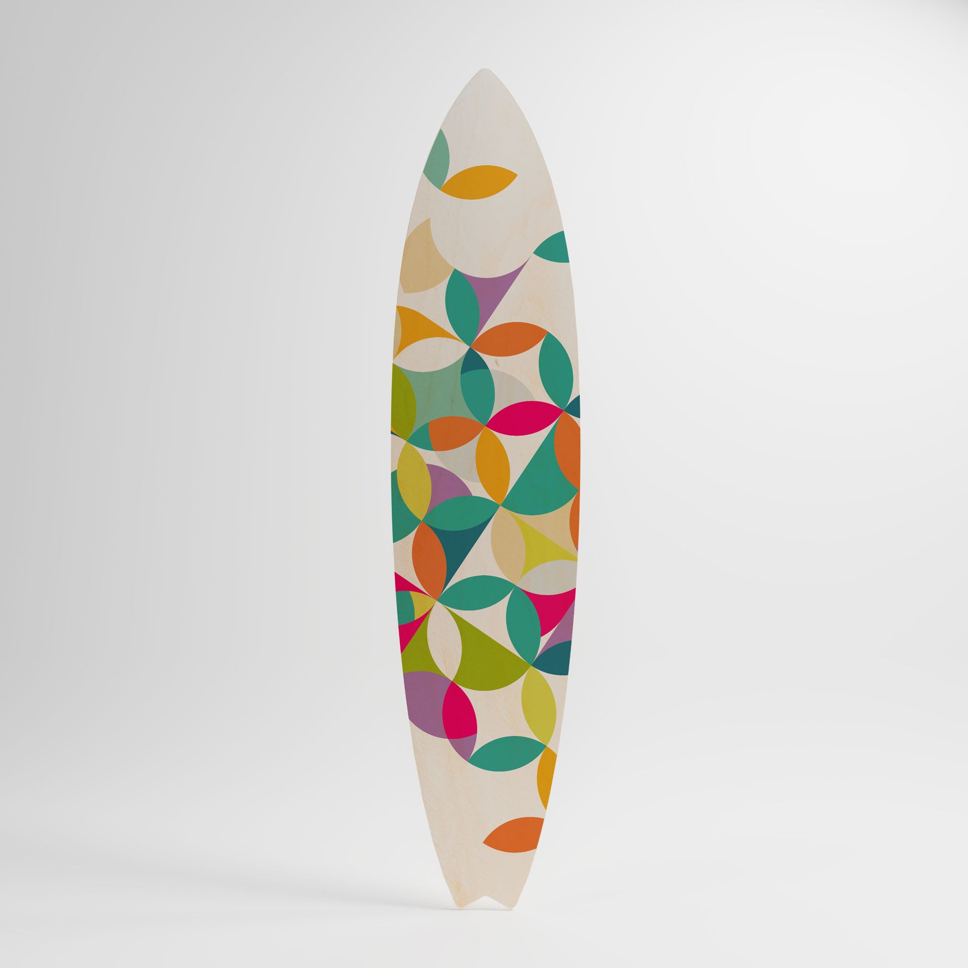 The modern print gives the surfboard a bold yet elegant look, while the subtle matte finish enhances its decorative quality. This surfboard is an excellent choice for living rooms, bedrooms, hallways, offices, and commercial spaces, where it draws attention and adds an individual, stylish touch to the interior.