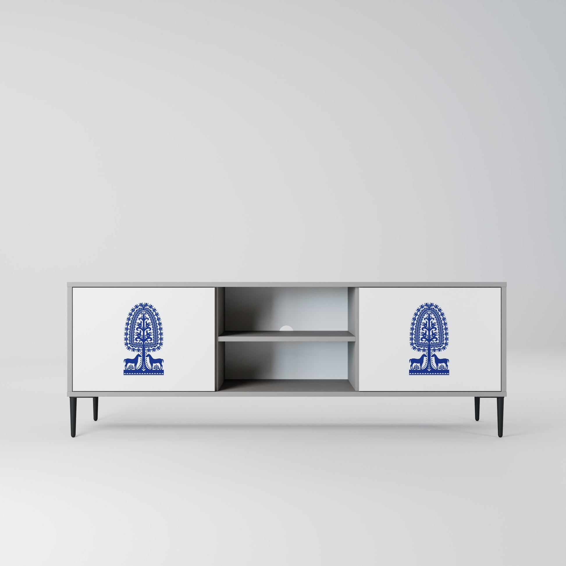 POLISH FOLK ART 2-Door TV Stand in Grey Finish