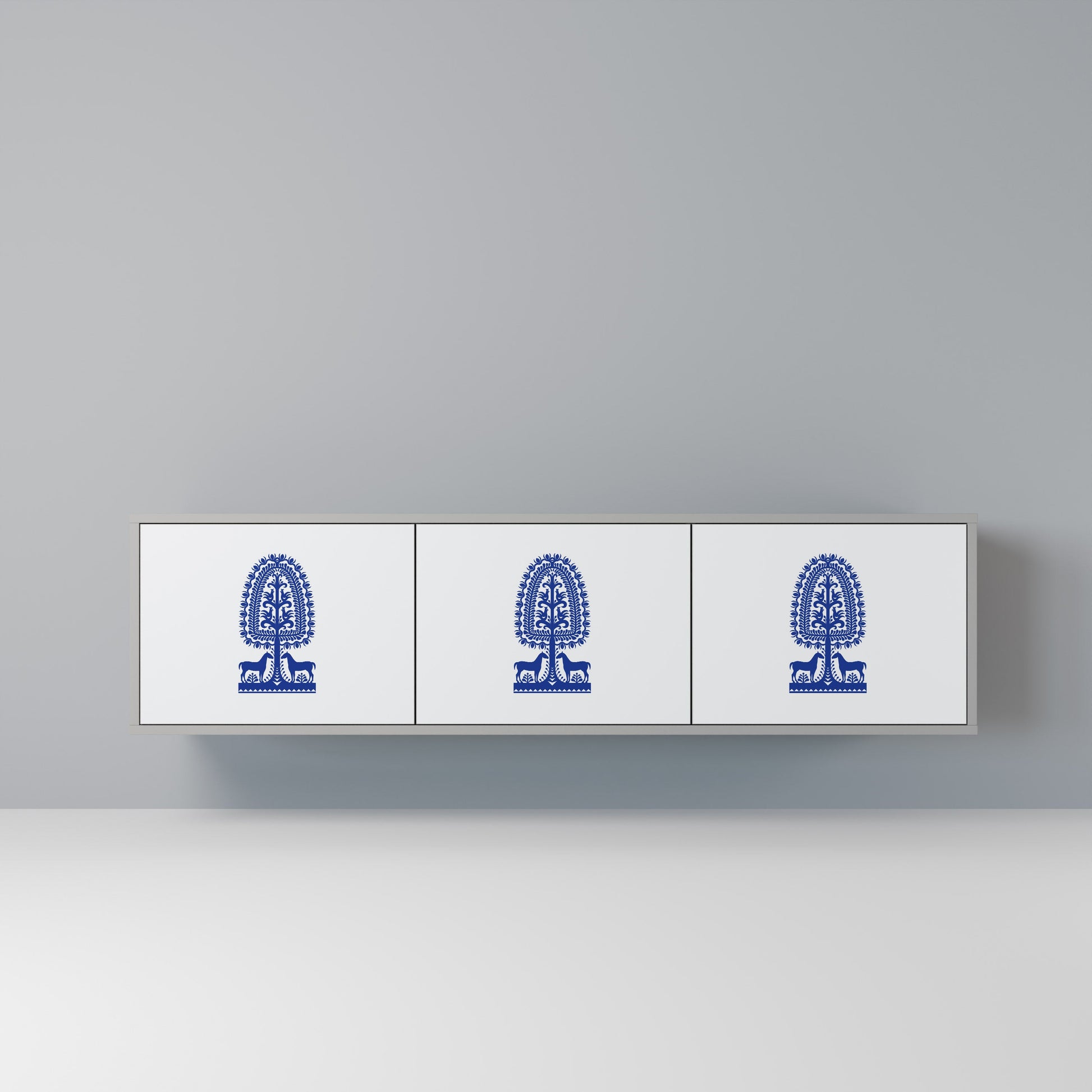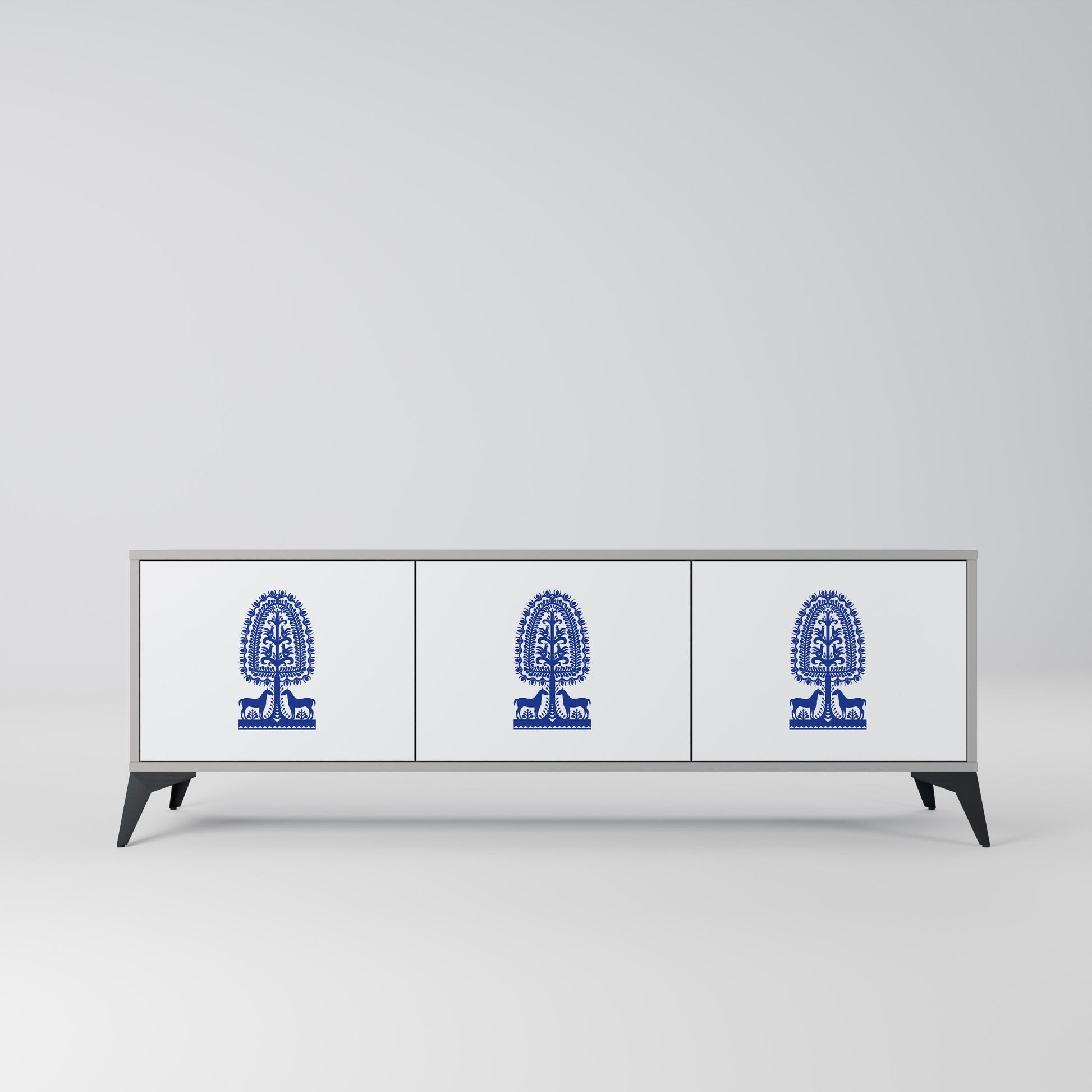 POLISH FOLK ART 3-Door TV Stand in Grey Finish