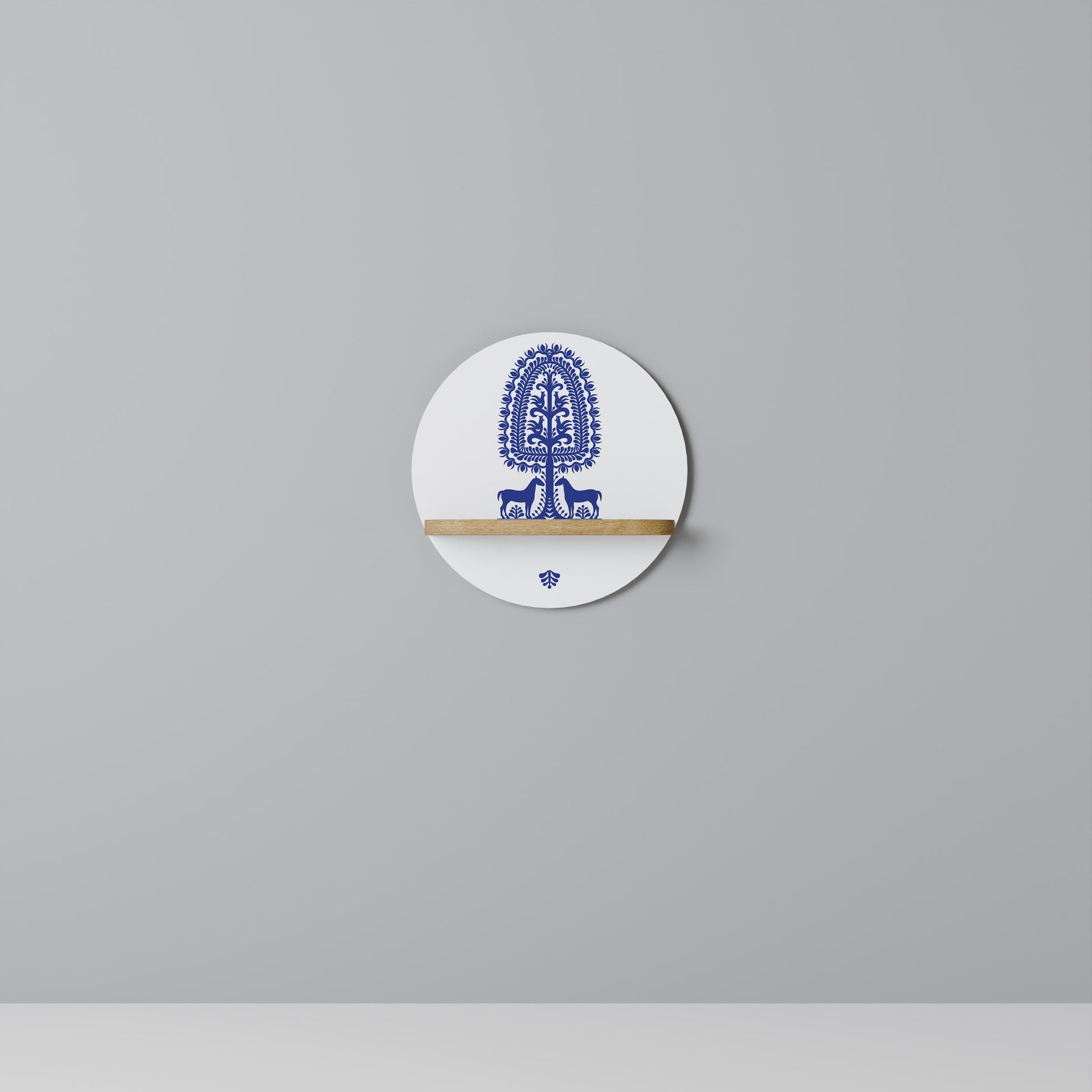 POLISH FOLK ART Round Art Shelf In Oak Effect