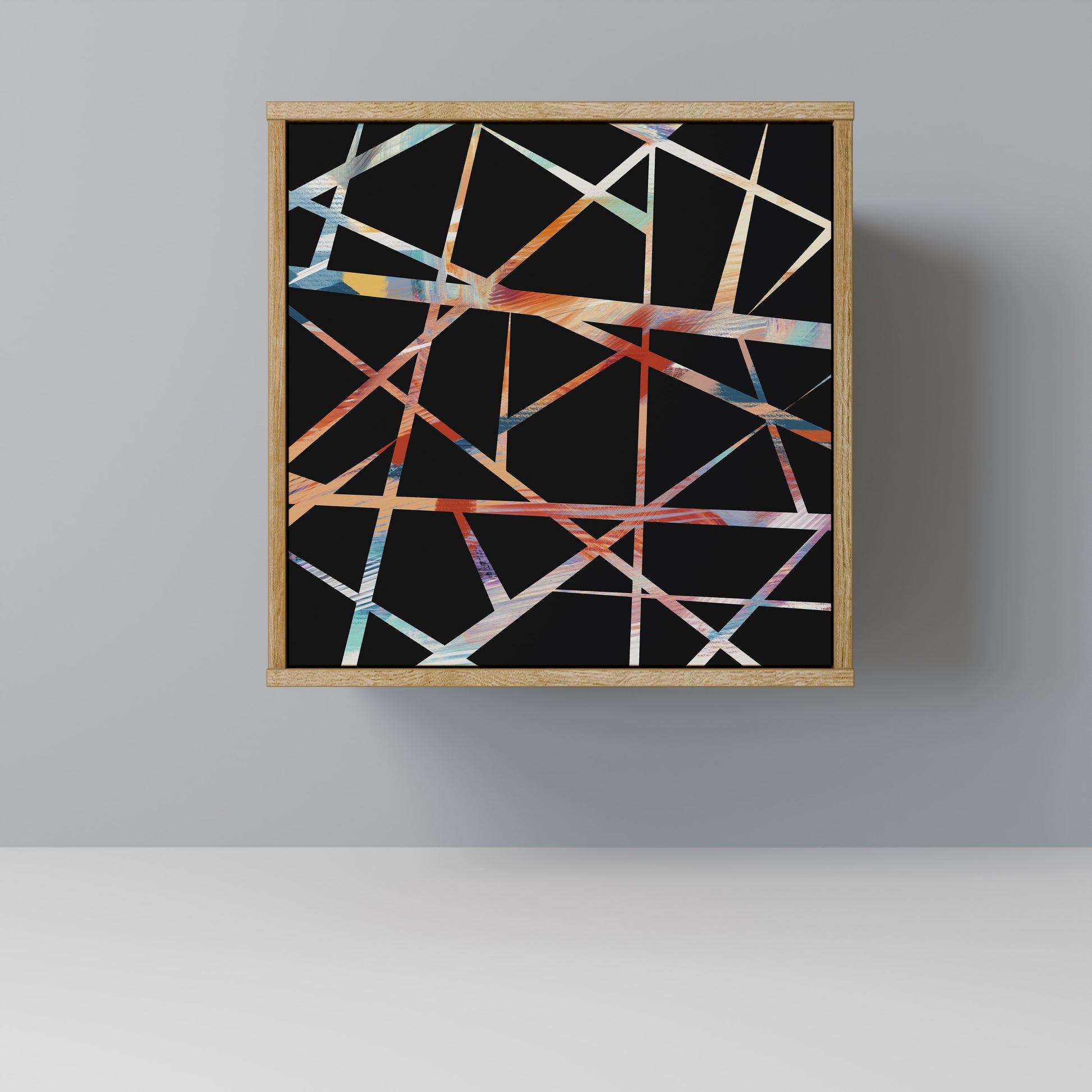 The stylish front with a subtle print adds a modern touch, making the sideboard not only a practical but also a decorative element of the interior.