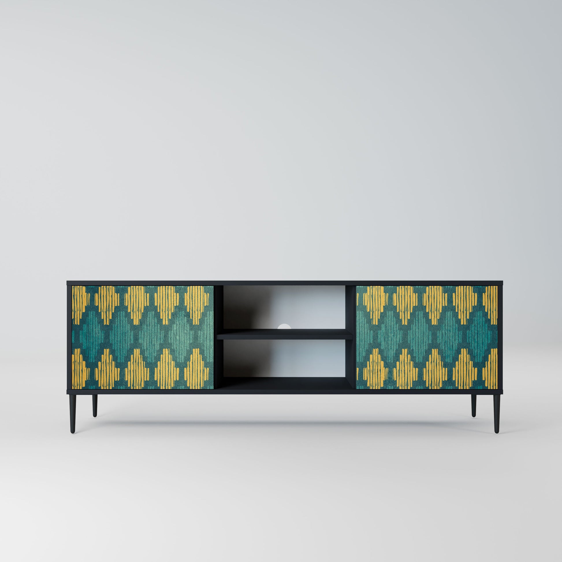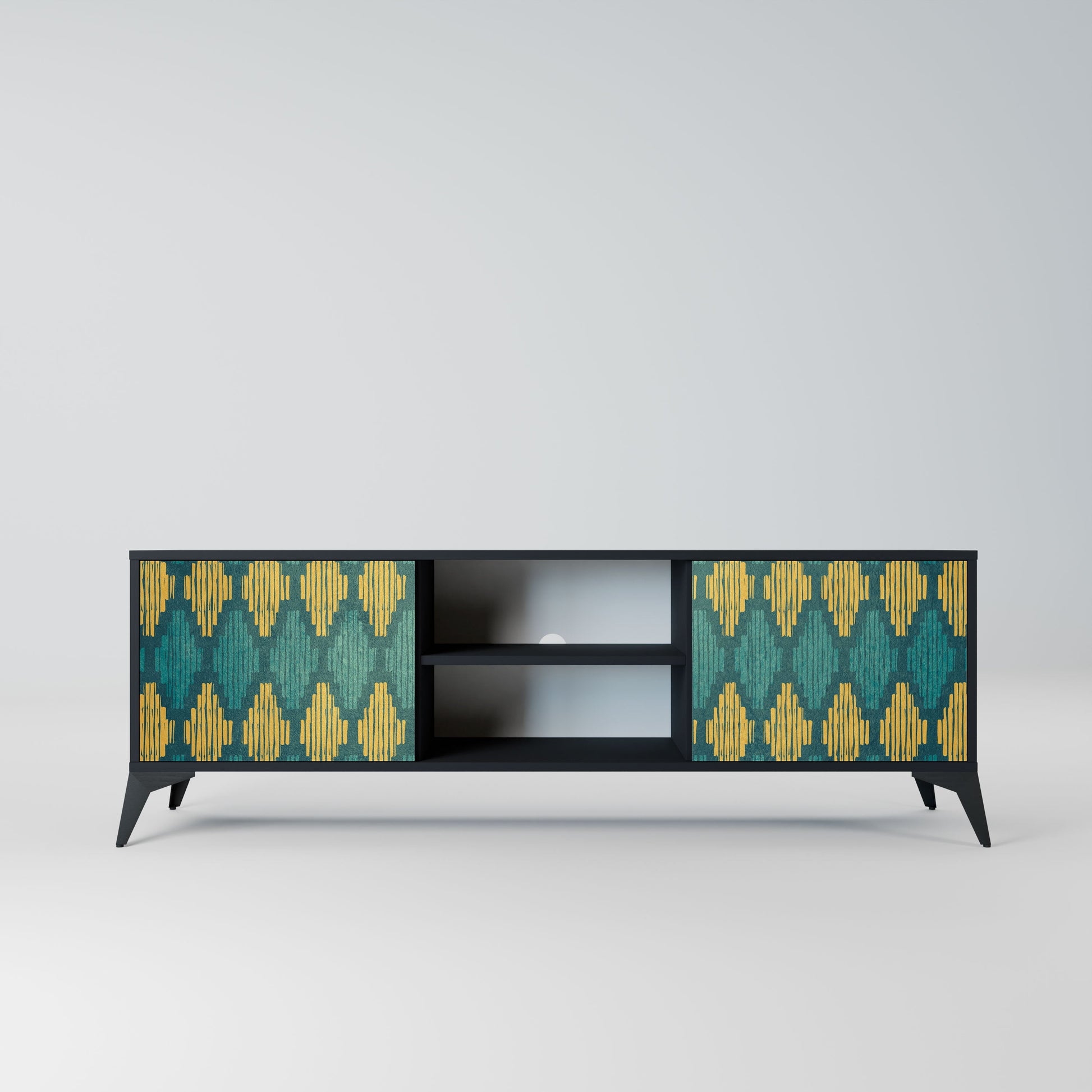 The black body gives the TV stand an elegant, modern look, while the fronts with an exceptional print draw attention, making it the focal point of any room. The spacious interior provides room for electronic devices, cables, remotes, and other accessories, helping you maintain order and organization.