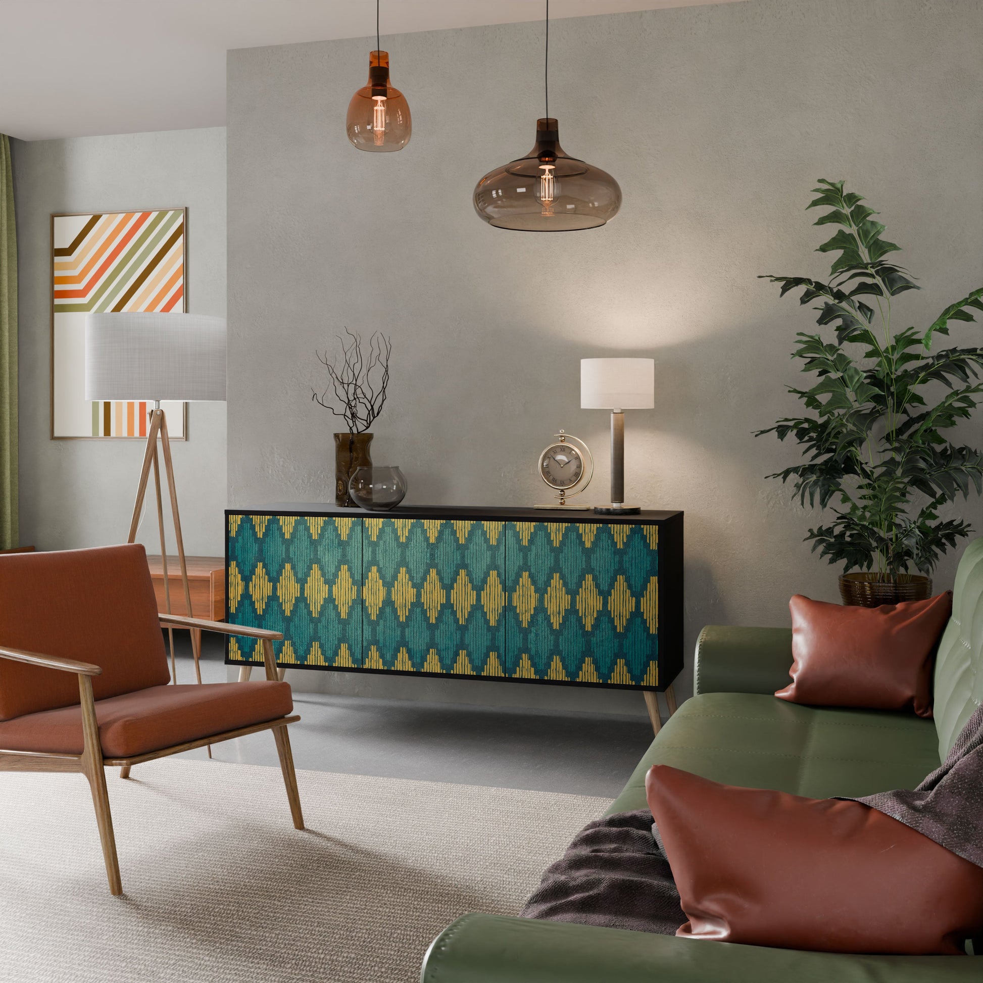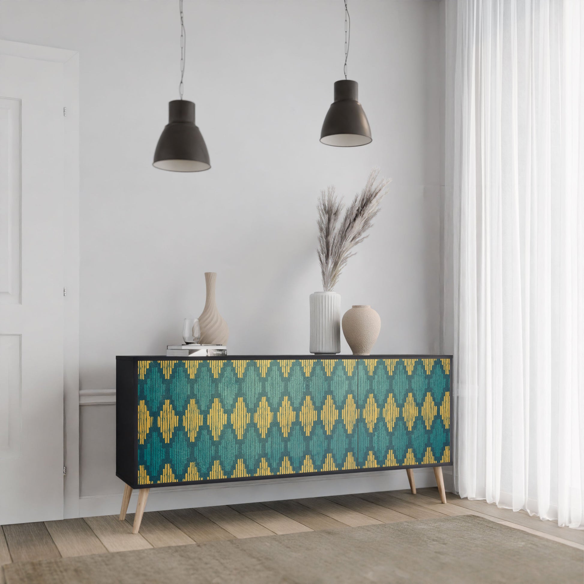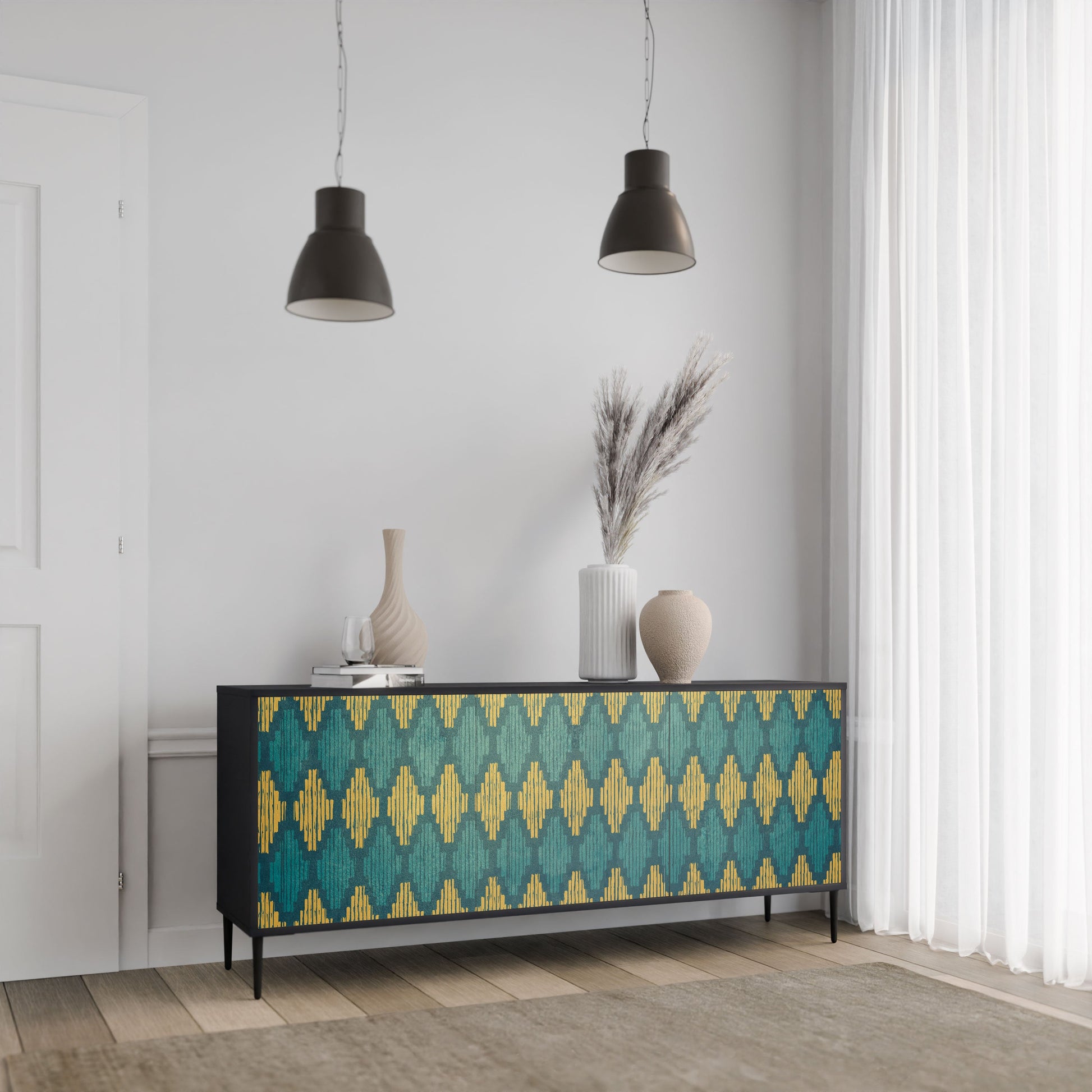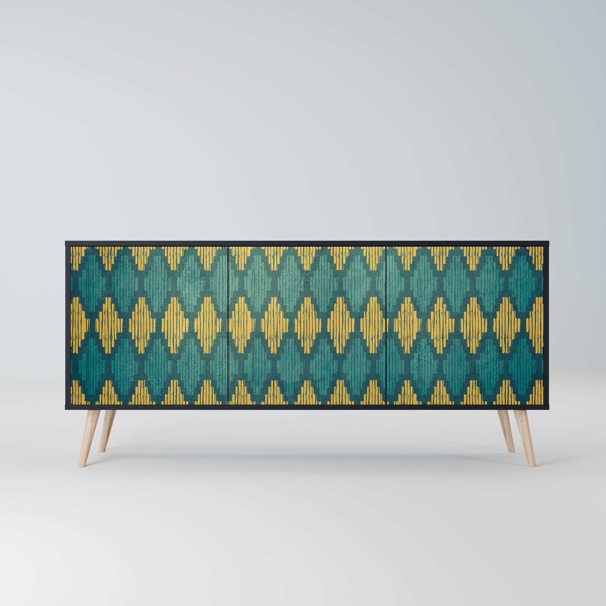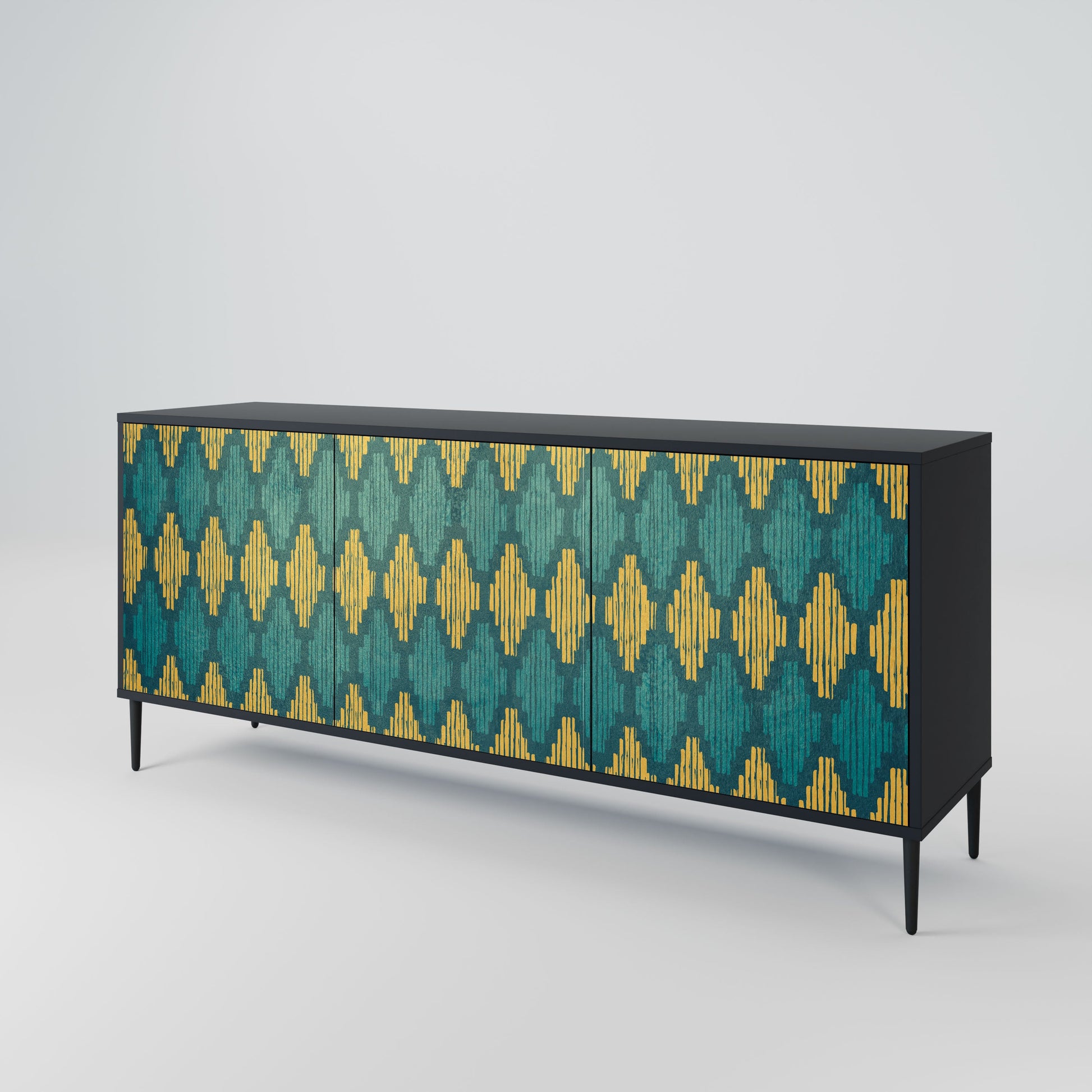 Elegance and functionality in a single piece of furniture – our 3-Door Sideboard with a black body is the perfect solution for lovers of stylish, modern interiors. The black body emphasizes the bold character of the furniture, while the fronts with a unique print add an artistic touch. It fits perfectly in the living room, bedroom, or office, complementing both modern and industrial arrangements.