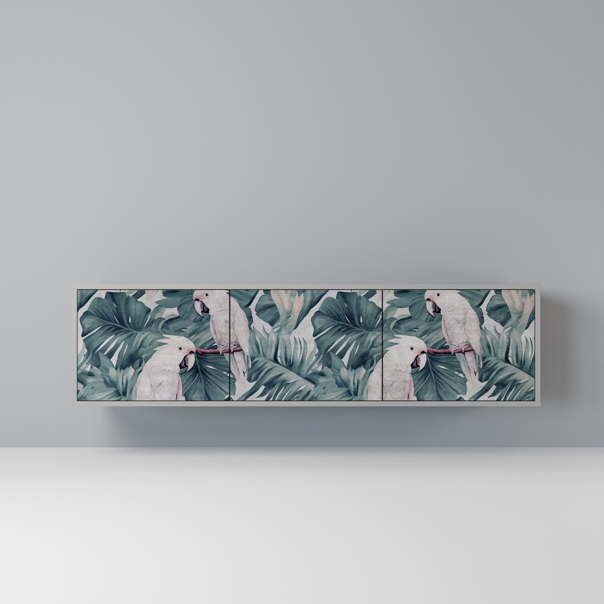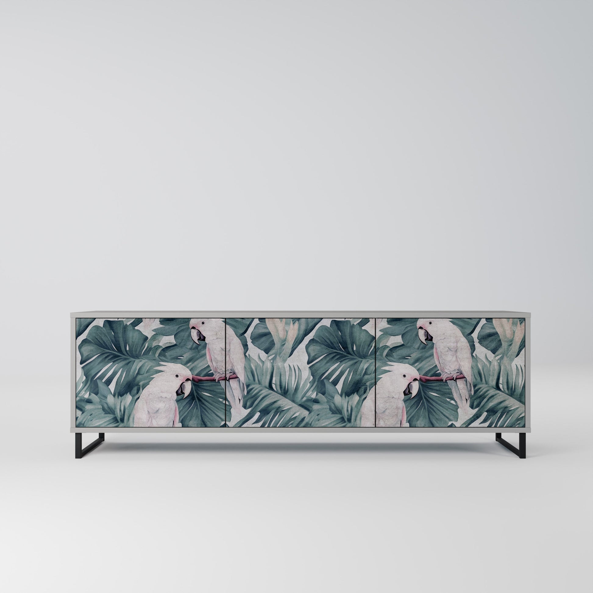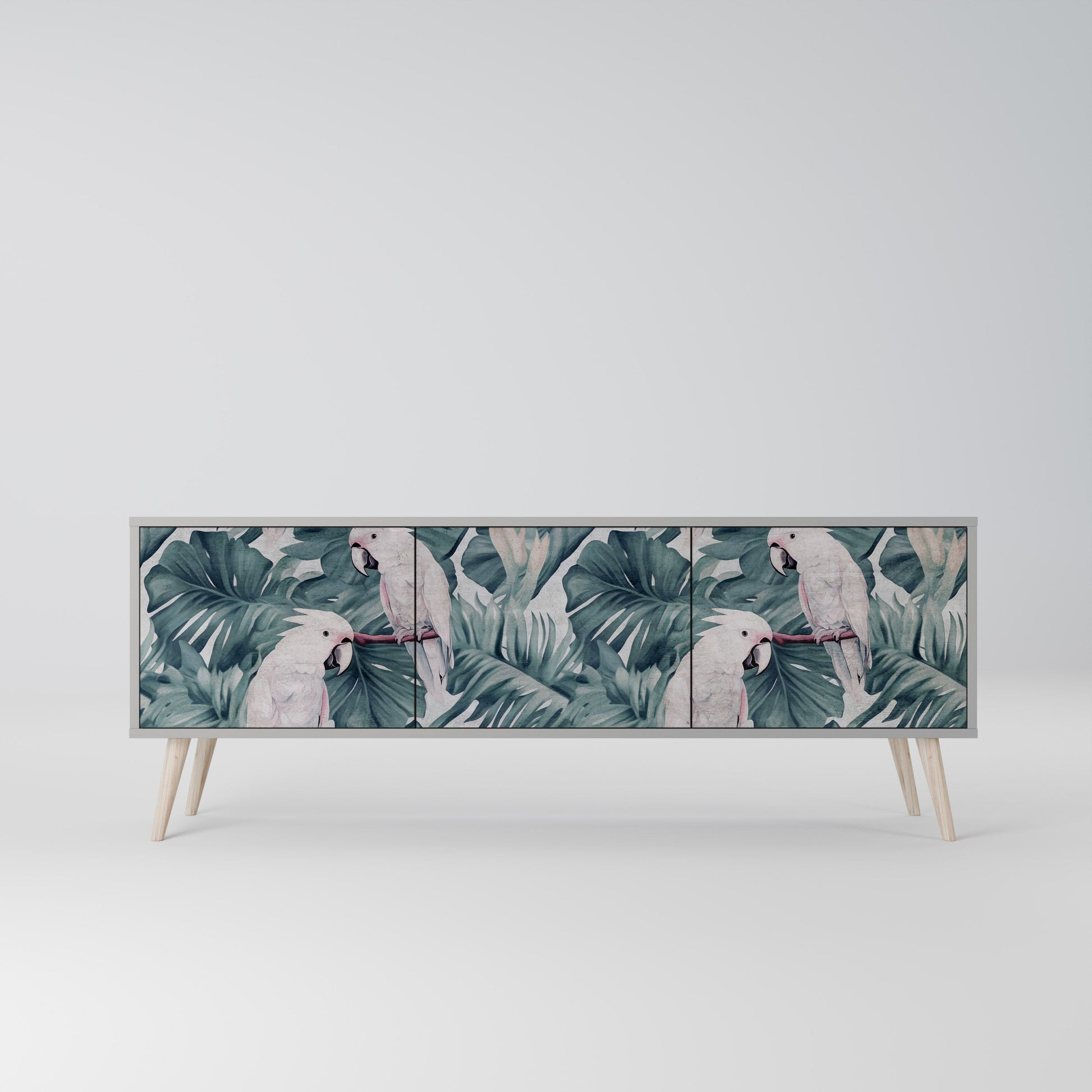 The grey body of the stand creates a refined, modern accent that pairs beautifully with industrial and minimalist arrangements. The fronts with a designer print add character and uniqueness, making this piece not only practical but also a standout decorative element.