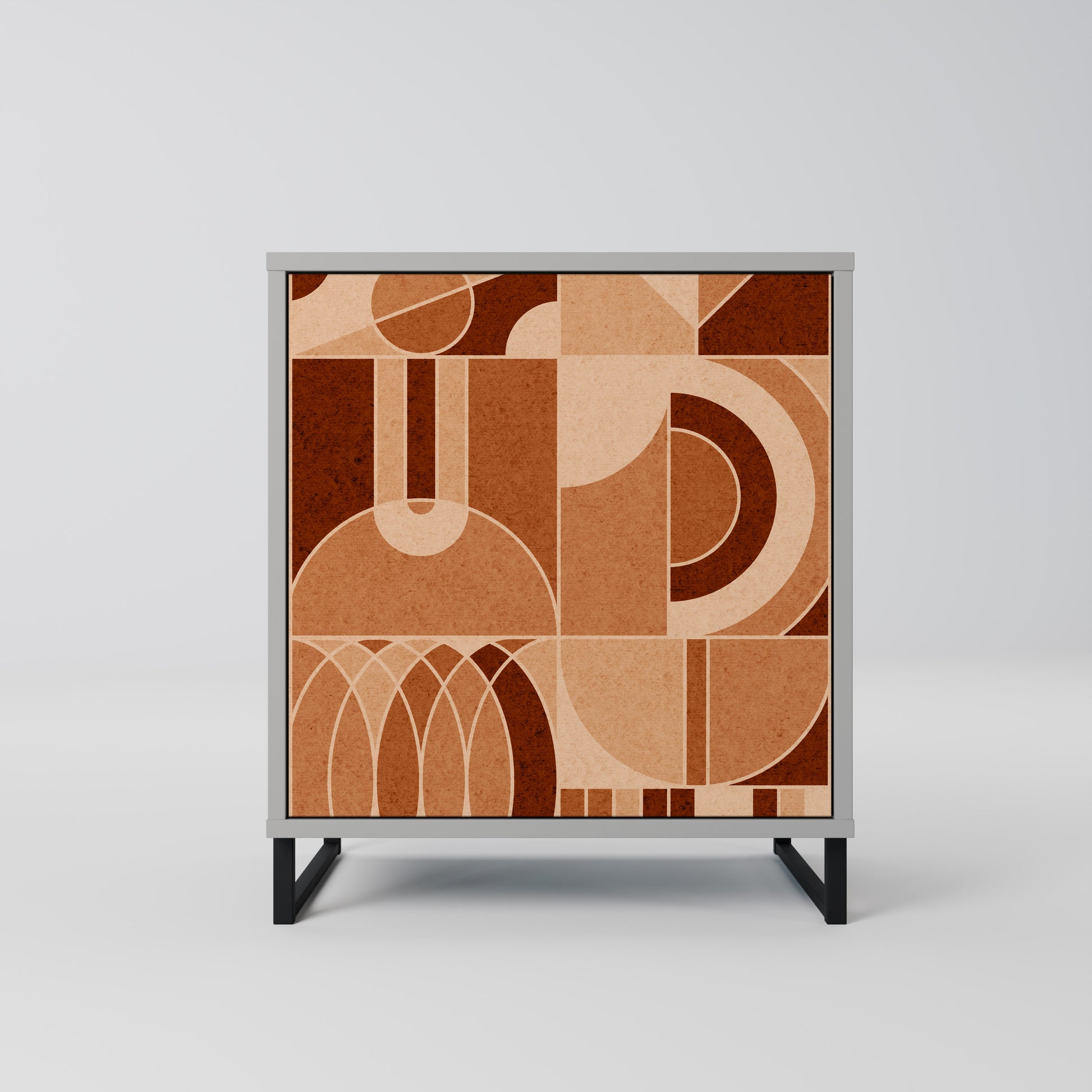 This compact yet remarkably elegant piece of furniture impresses with its minimalist design, perfectly fitting into both modern and classic interiors. The subdued grey color of the body gives the furniture a subtle yet distinctive character, while the fronts with a unique print add an artistic touch.