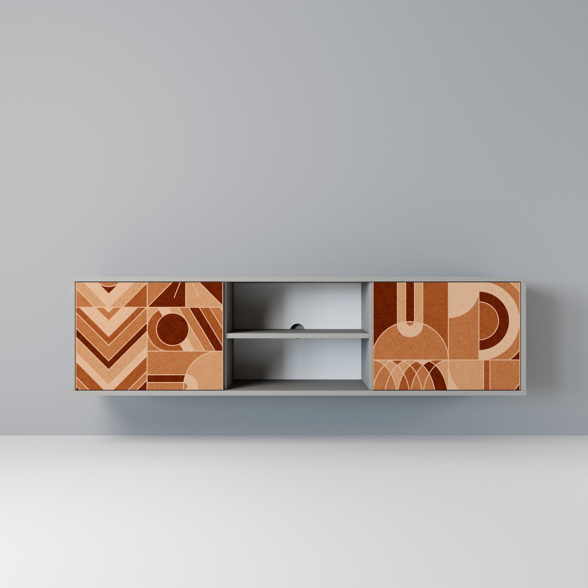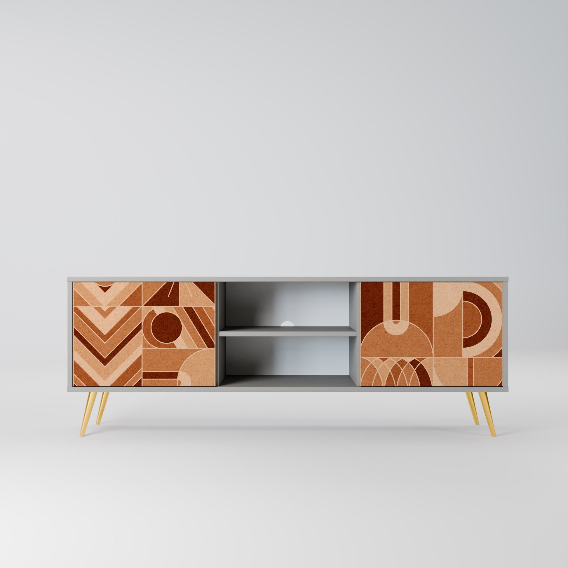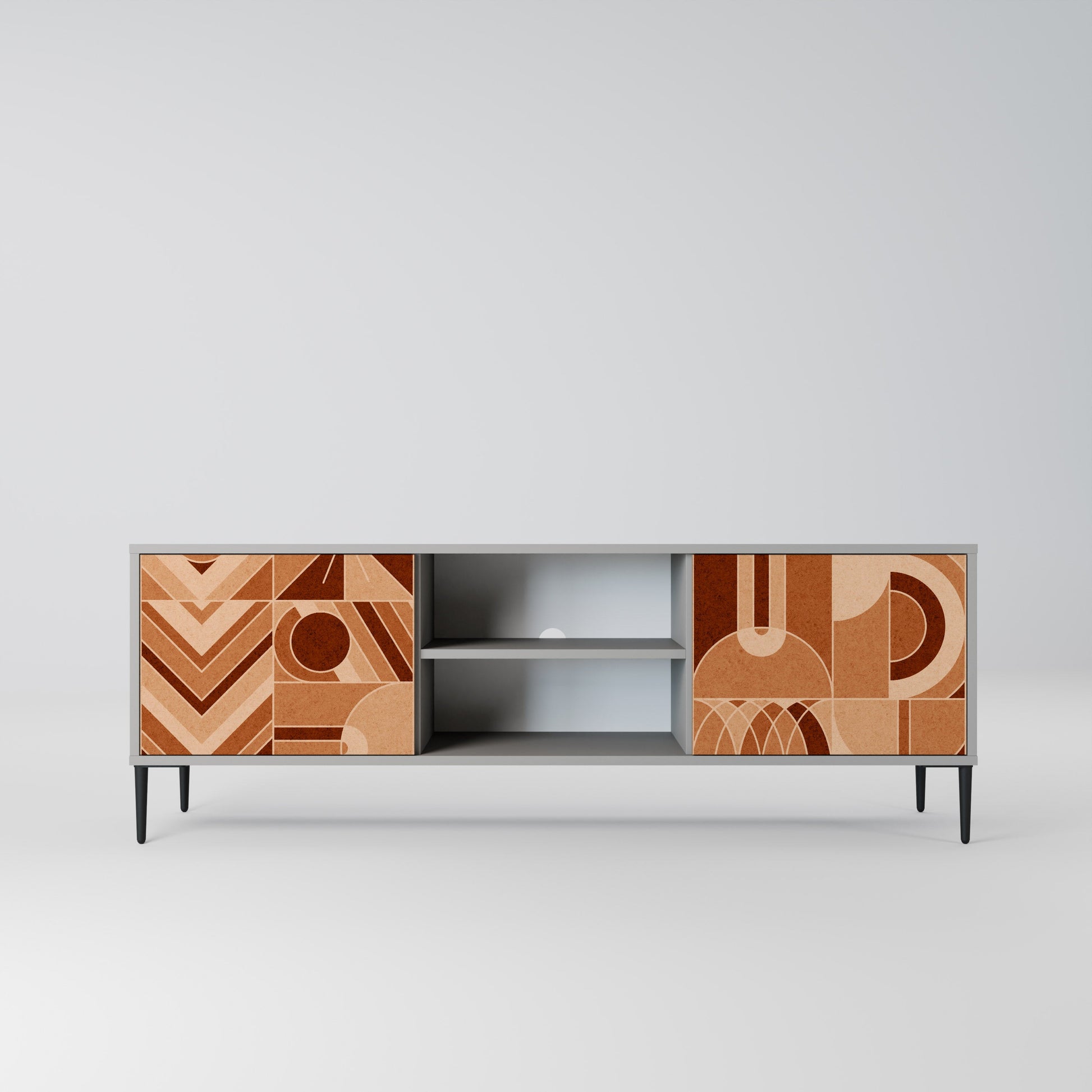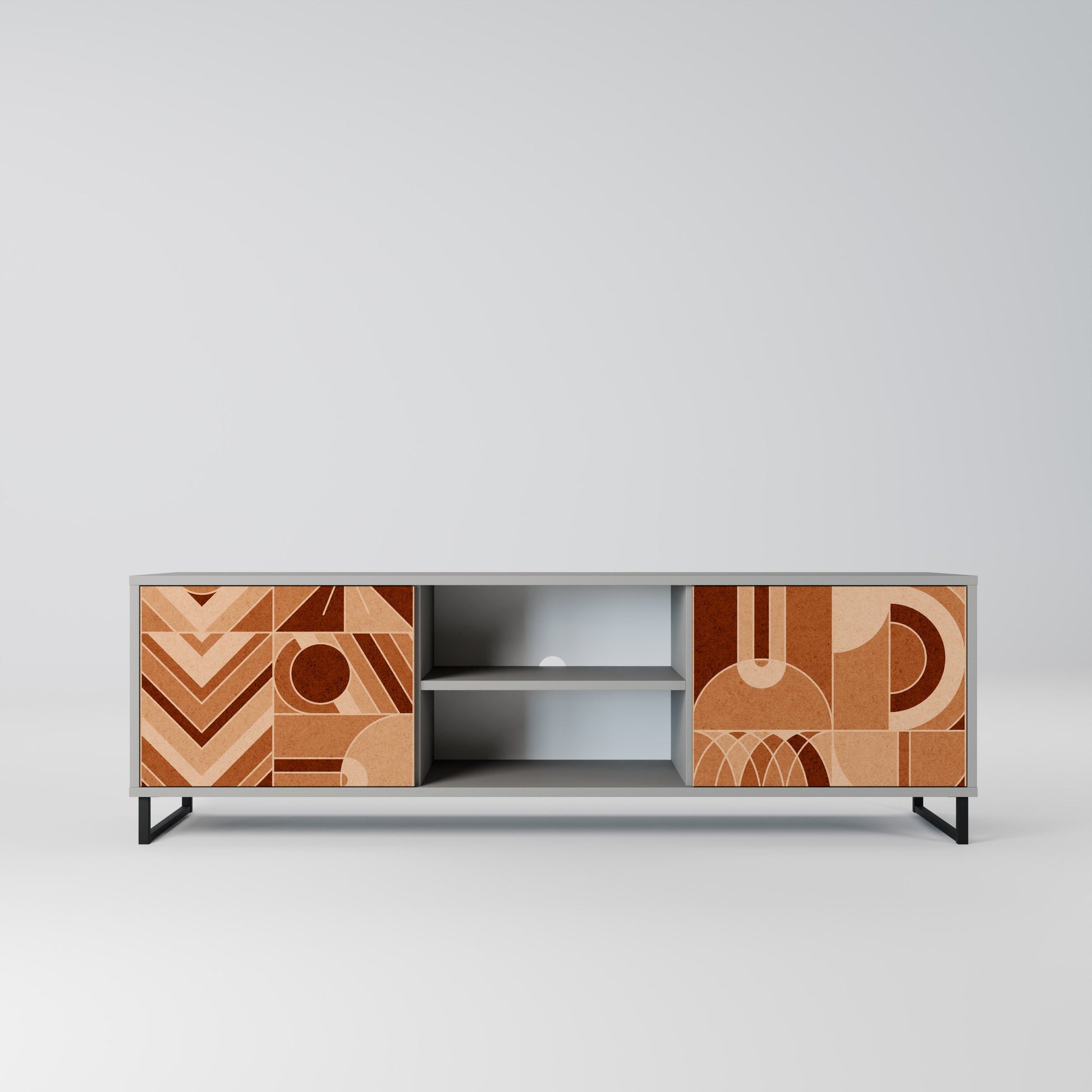 The grey body lends the TV stand a contemporary, refined look, while the fronts with an exceptional print capture attention, becoming the focal point of any room. The spacious interior provides room for electronic devices, cables, remotes, and other accessories, helping you maintain order and organization.