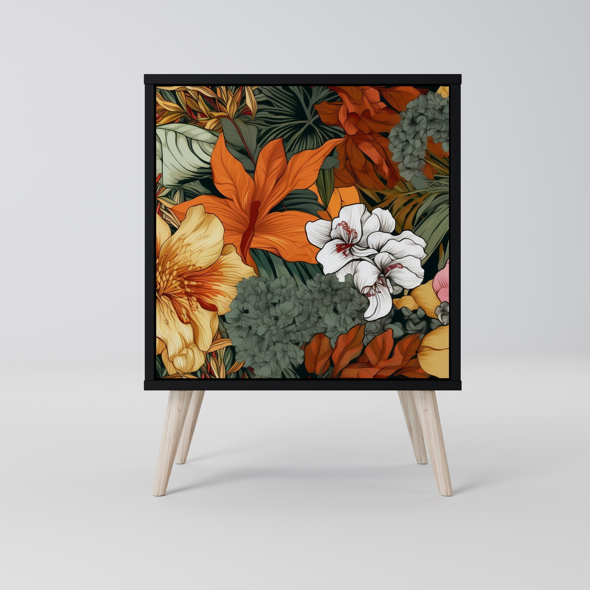 This compact yet remarkably elegant piece of furniture impresses with its minimalist design, perfectly fitting into both modern and classic interiors. The black body emphasizes the furniture’s bold character, while the fronts with a unique print add an artistic touch.