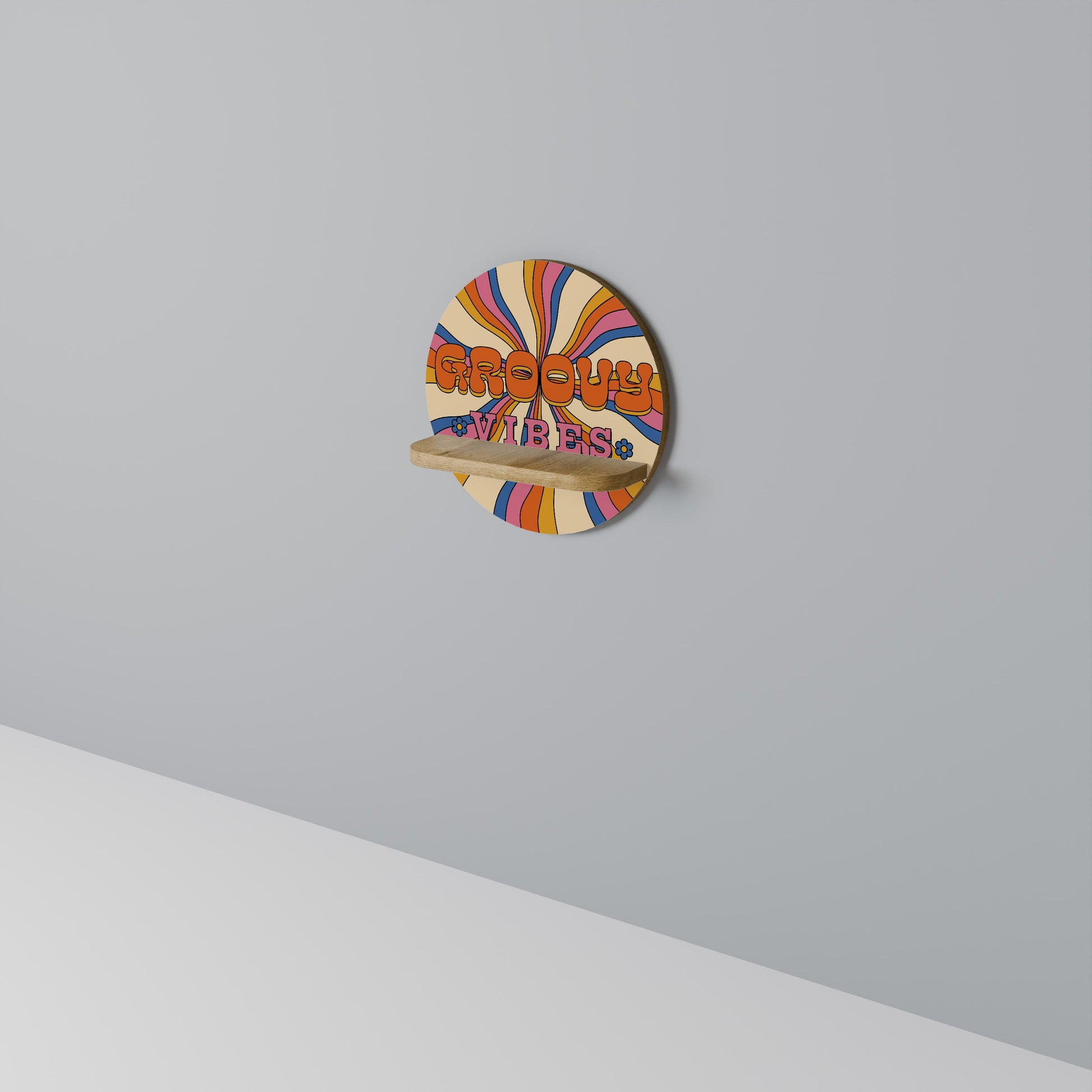 RADIANT GROOVY VIBES Round Art Shelf In Oak Effect