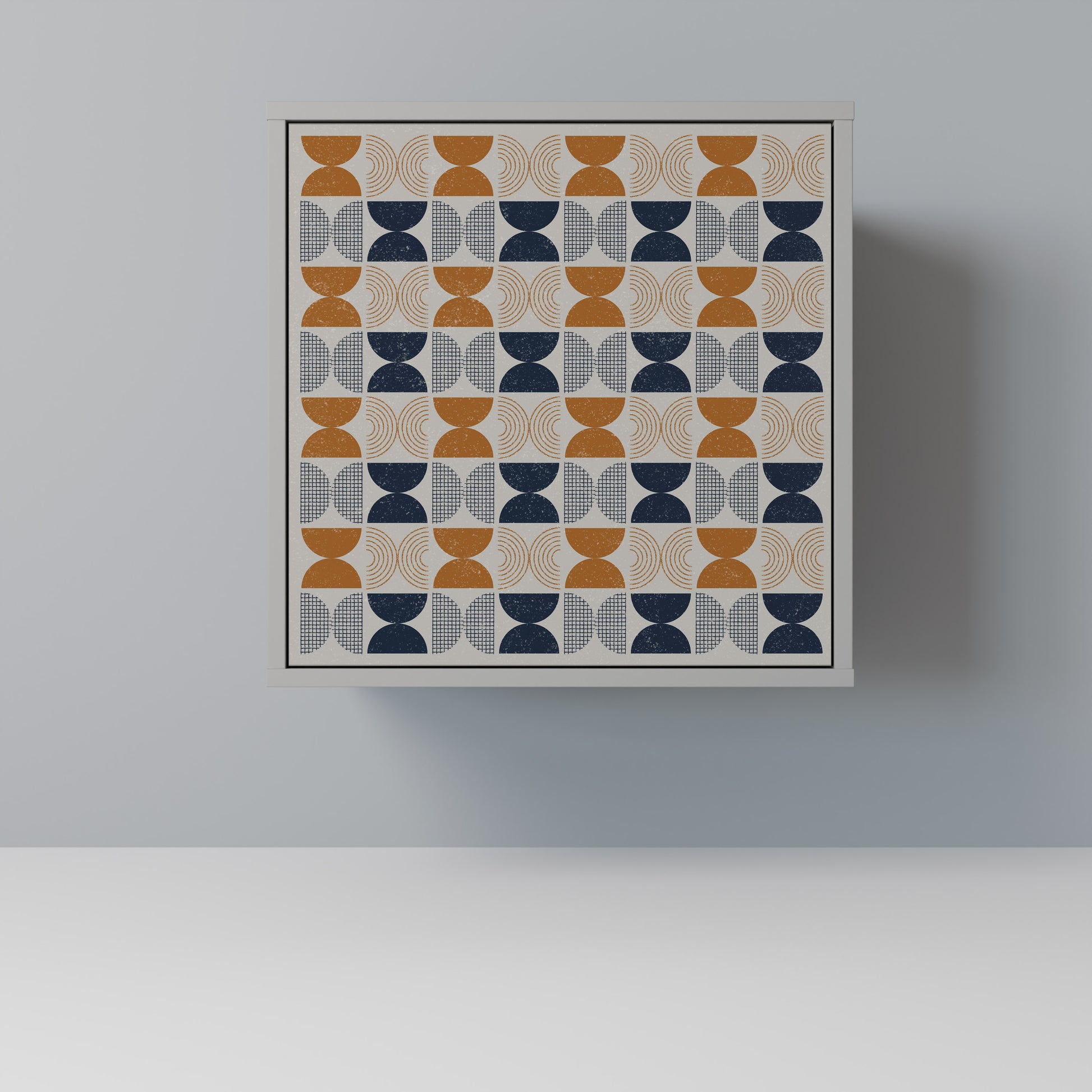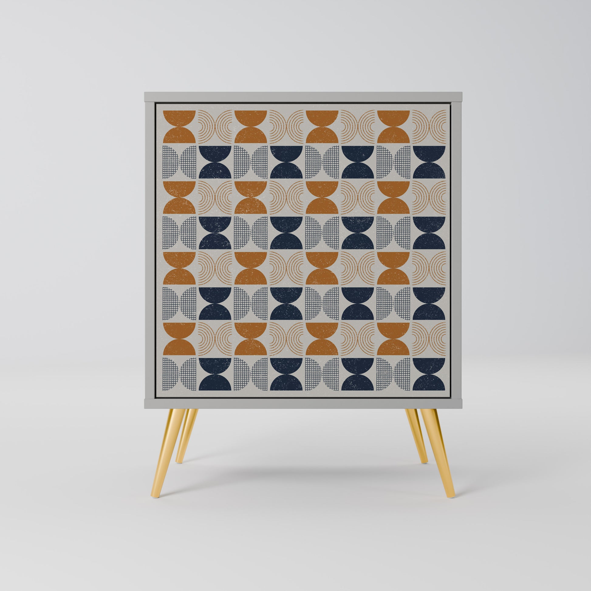 This compact yet remarkably elegant piece of furniture impresses with its minimalist design, perfectly fitting into both modern and classic interiors. The subdued grey color of the body gives the furniture a subtle yet distinctive character, while the fronts with a unique print add an artistic touch.