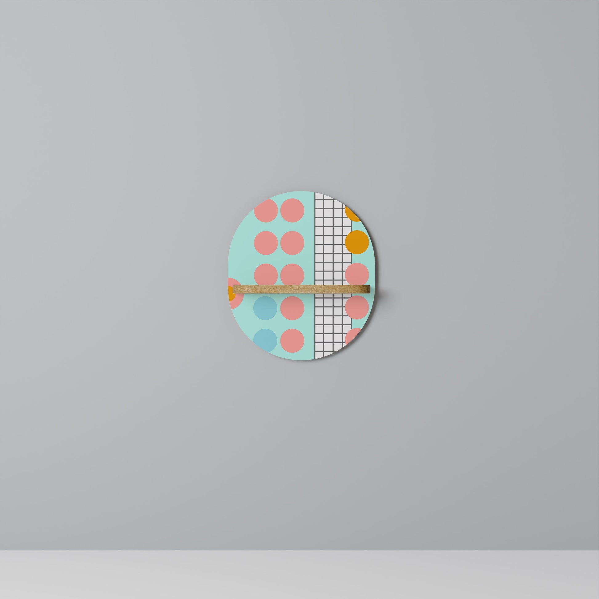 RETRO GRID Oval Art Shelf In Oak Effect