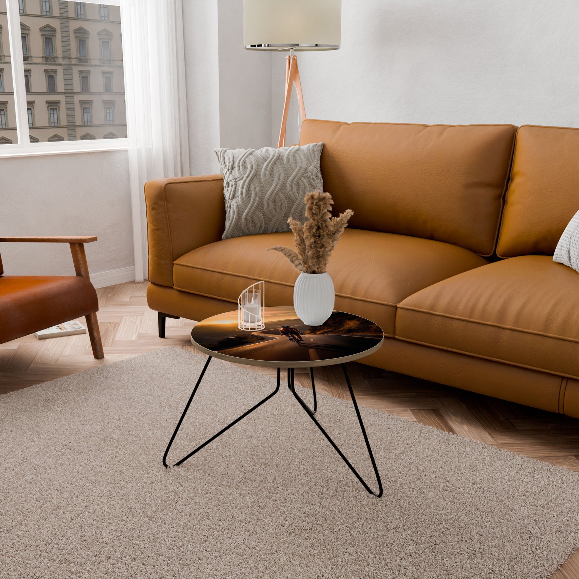 The tabletop features a high-quality printed motif, adding a distinctive artistic accent to your space. Crafted from durable chipboard covered with laminate, it ensures long-lasting use and resistance to daily wear.