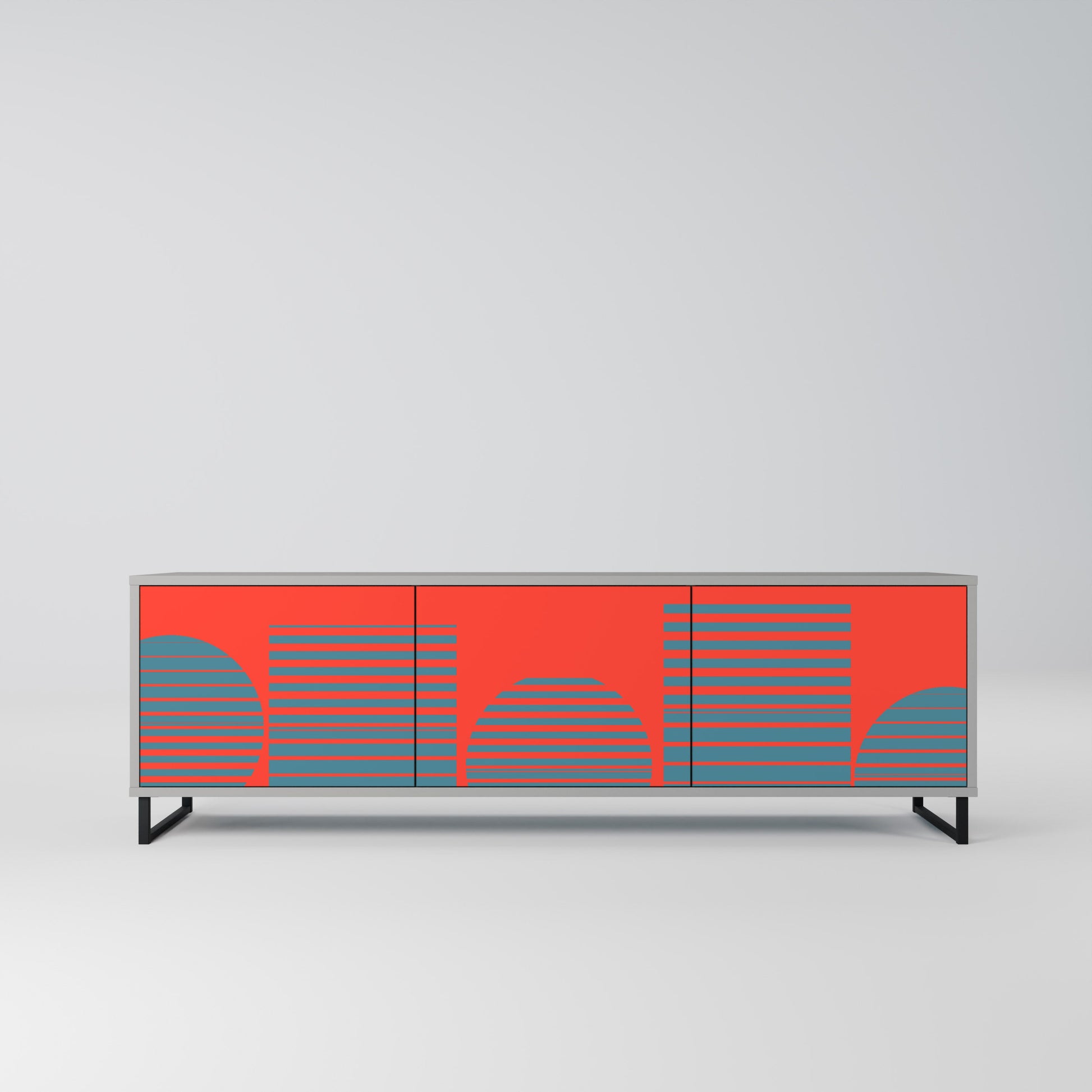 RISING GEOMETRY STARS 3-Door TV Stand in Grey Finish