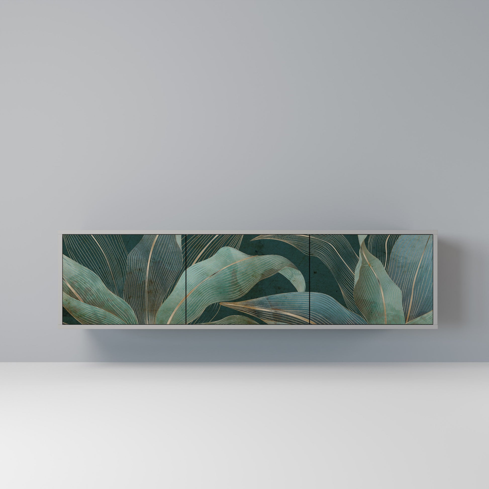 The grey body of the stand creates a refined, modern accent that pairs beautifully with industrial and minimalist arrangements. The fronts with a designer print add character and uniqueness, making this piece not only practical but also a standout decorative element.