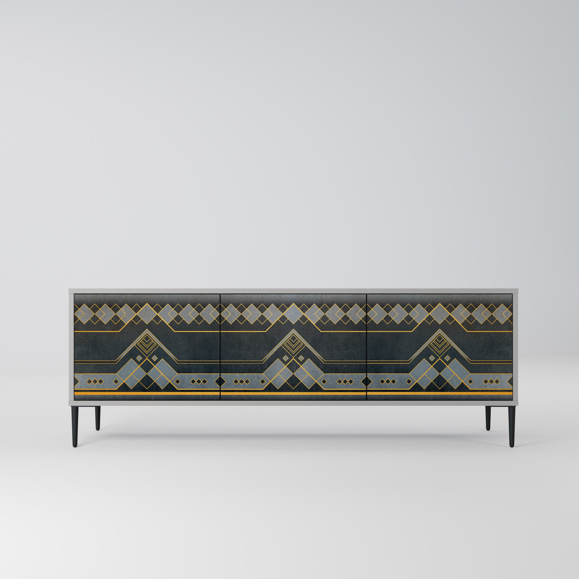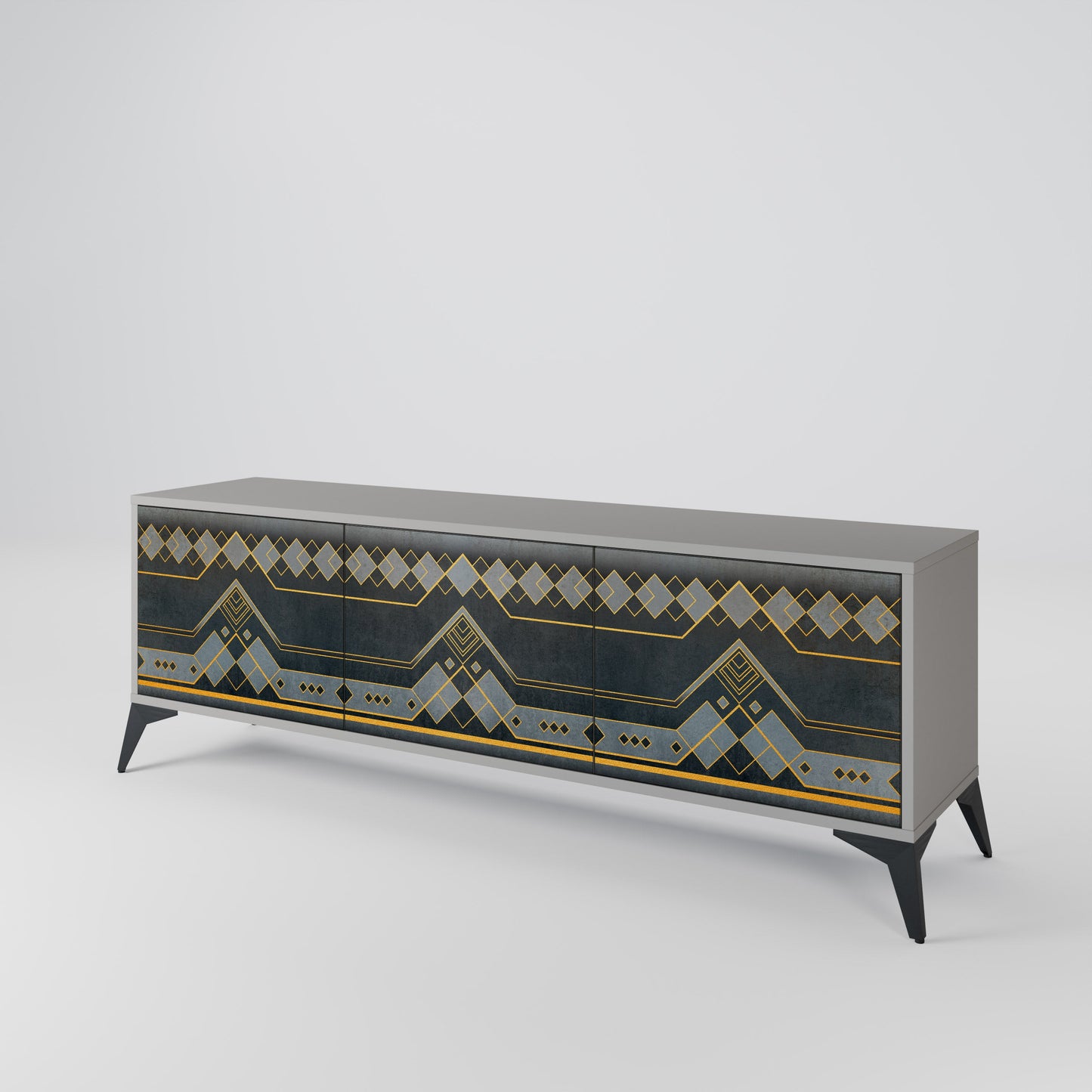 The grey body of the stand creates a refined, modern accent that pairs beautifully with industrial and minimalist arrangements. The fronts with a designer print add character and uniqueness, making this piece not only practical but also a standout decorative element.