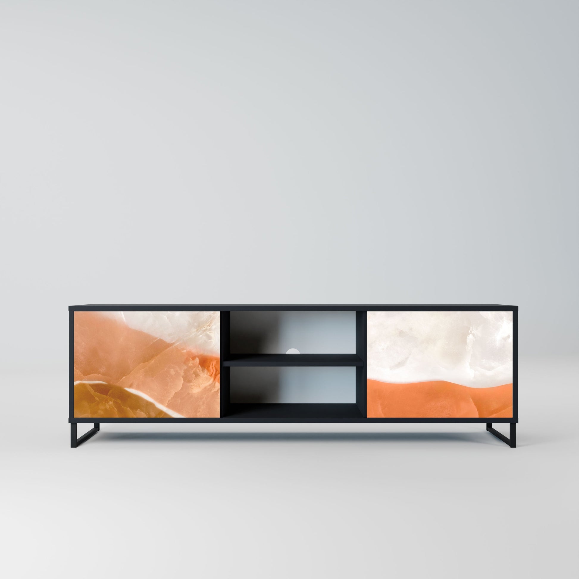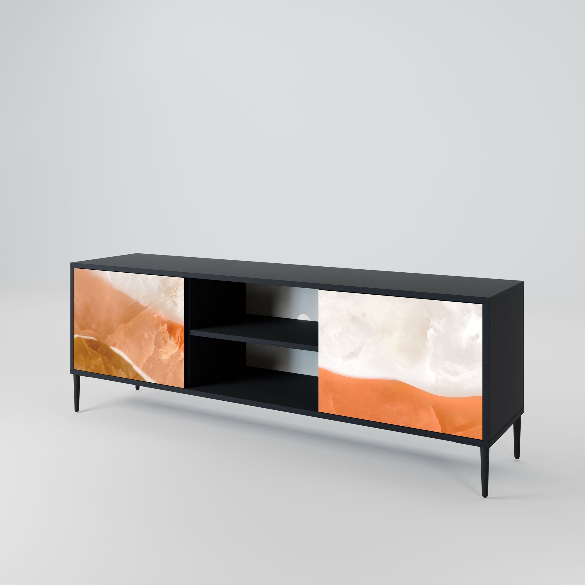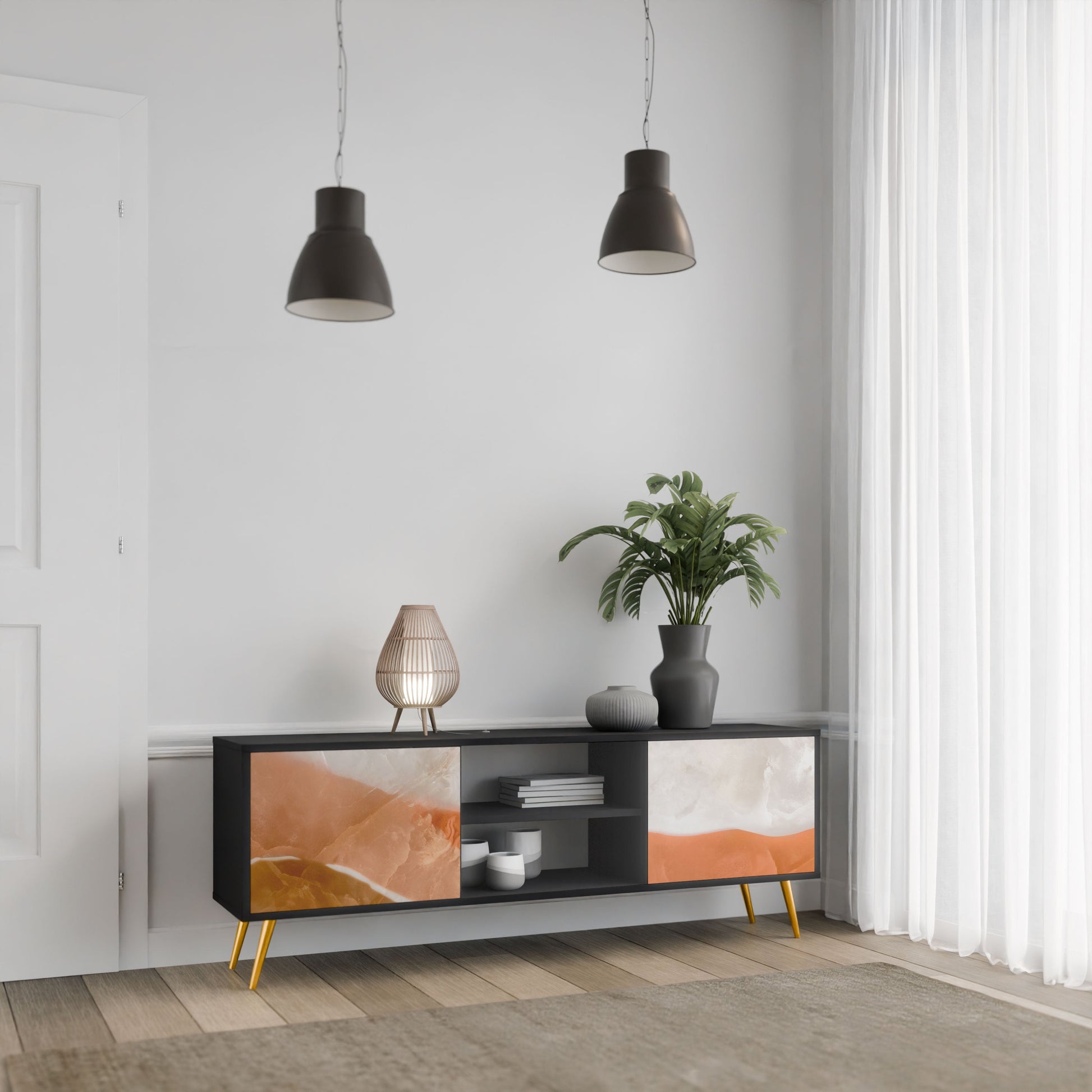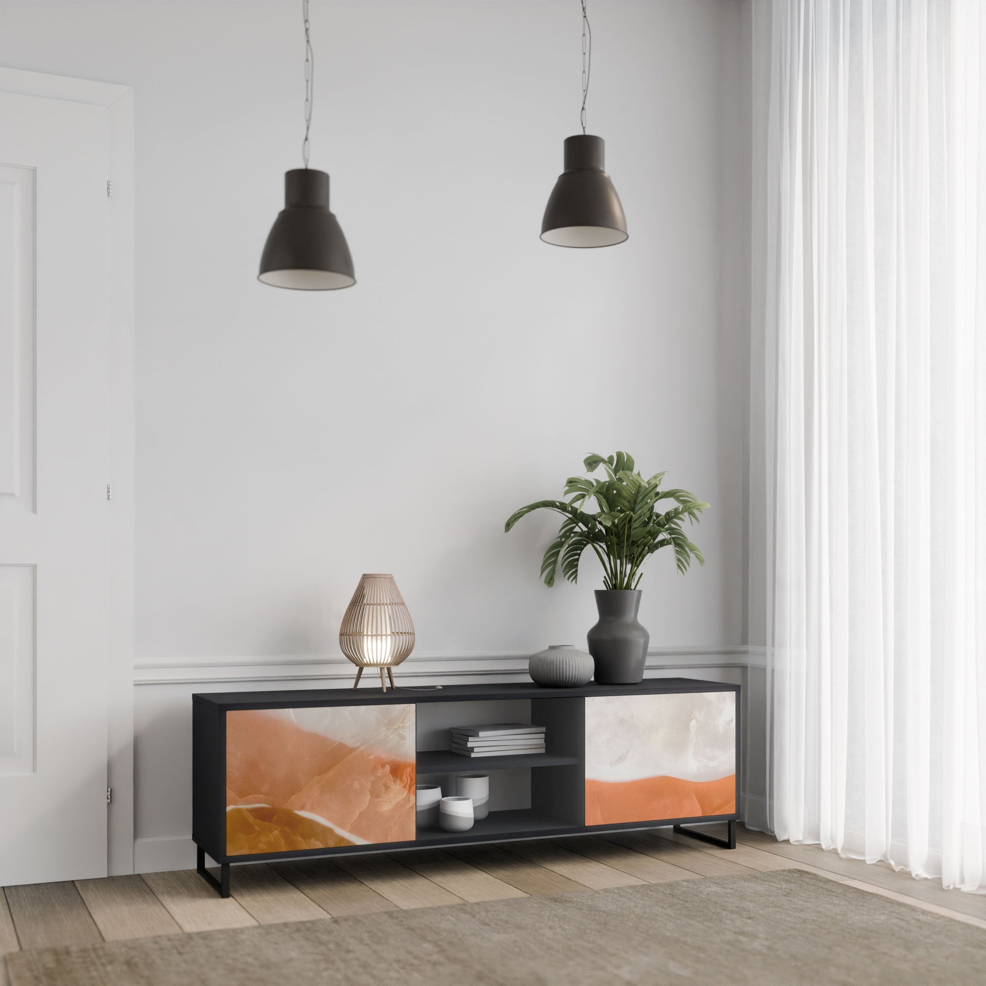 The black body gives the TV stand an elegant, modern look, while the fronts with an exceptional print draw attention, making it the focal point of any room. The spacious interior provides room for electronic devices, cables, remotes, and other accessories, helping you maintain order and organization.