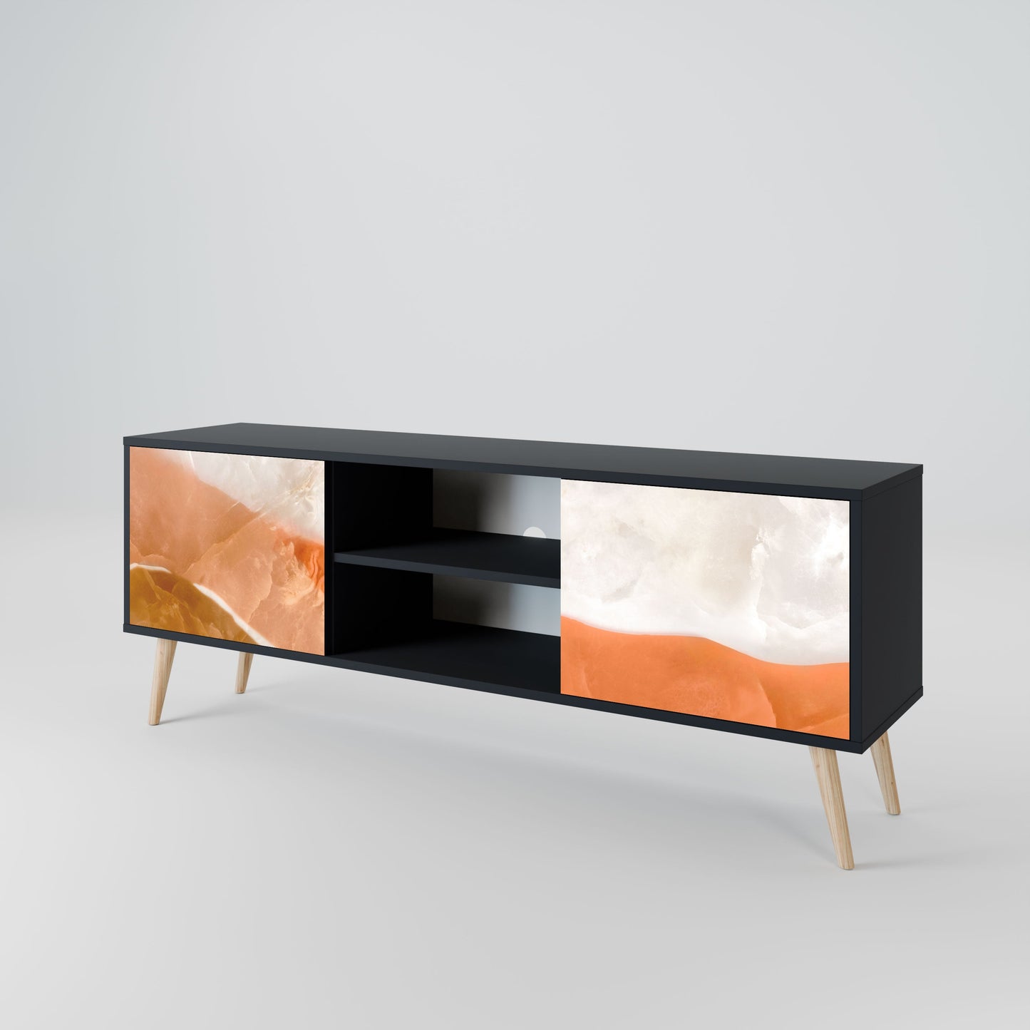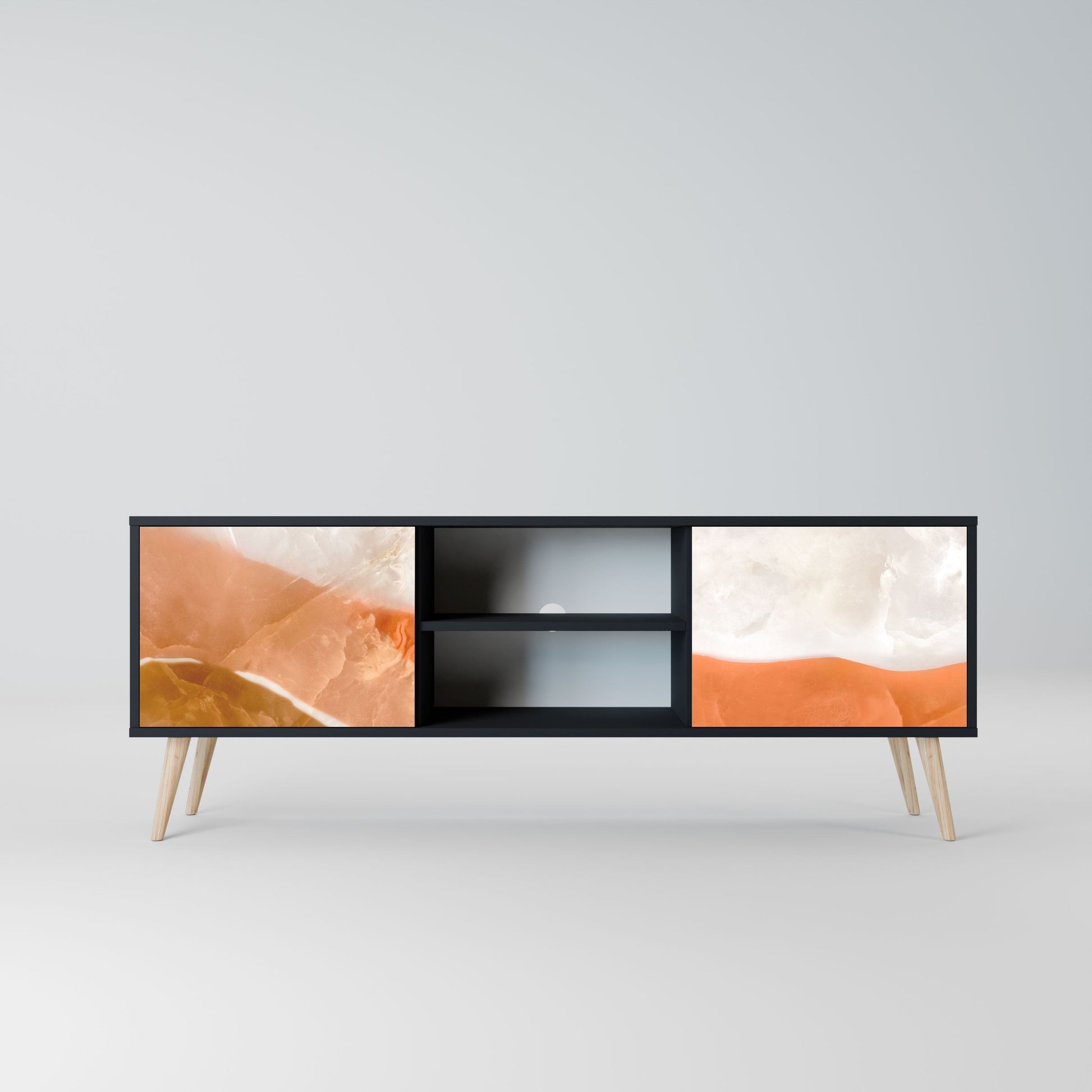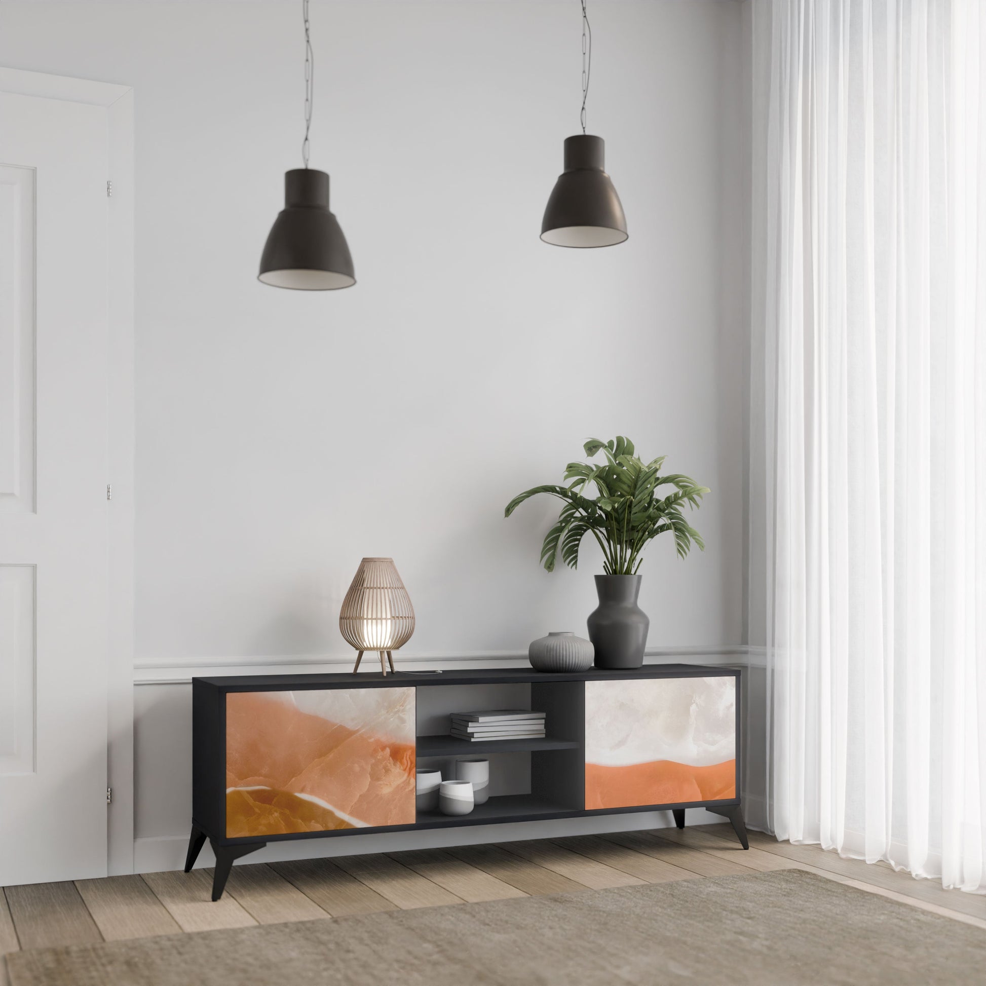 The black body gives the TV stand an elegant, modern look, while the fronts with an exceptional print draw attention, making it the focal point of any room. The spacious interior provides room for electronic devices, cables, remotes, and other accessories, helping you maintain order and organization.