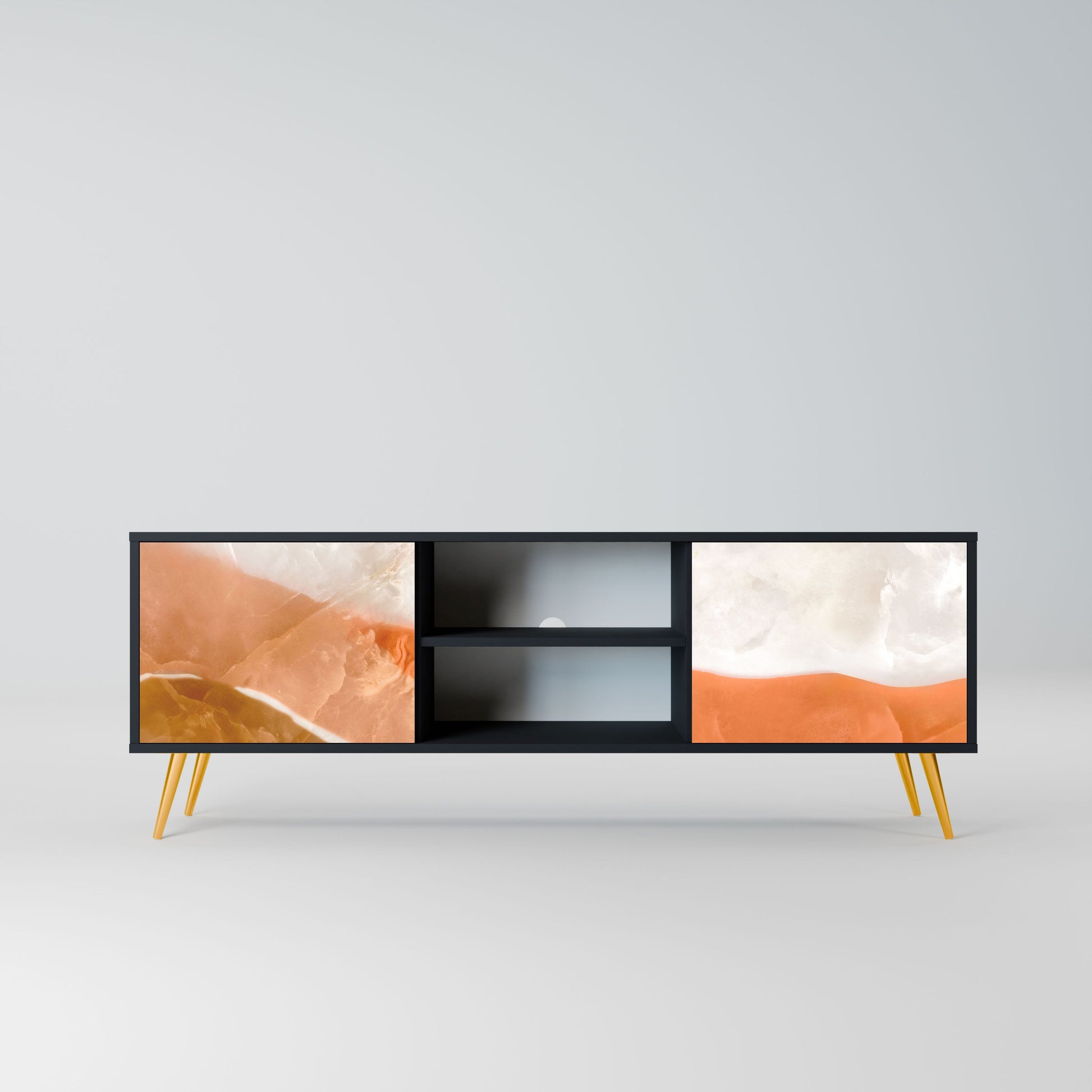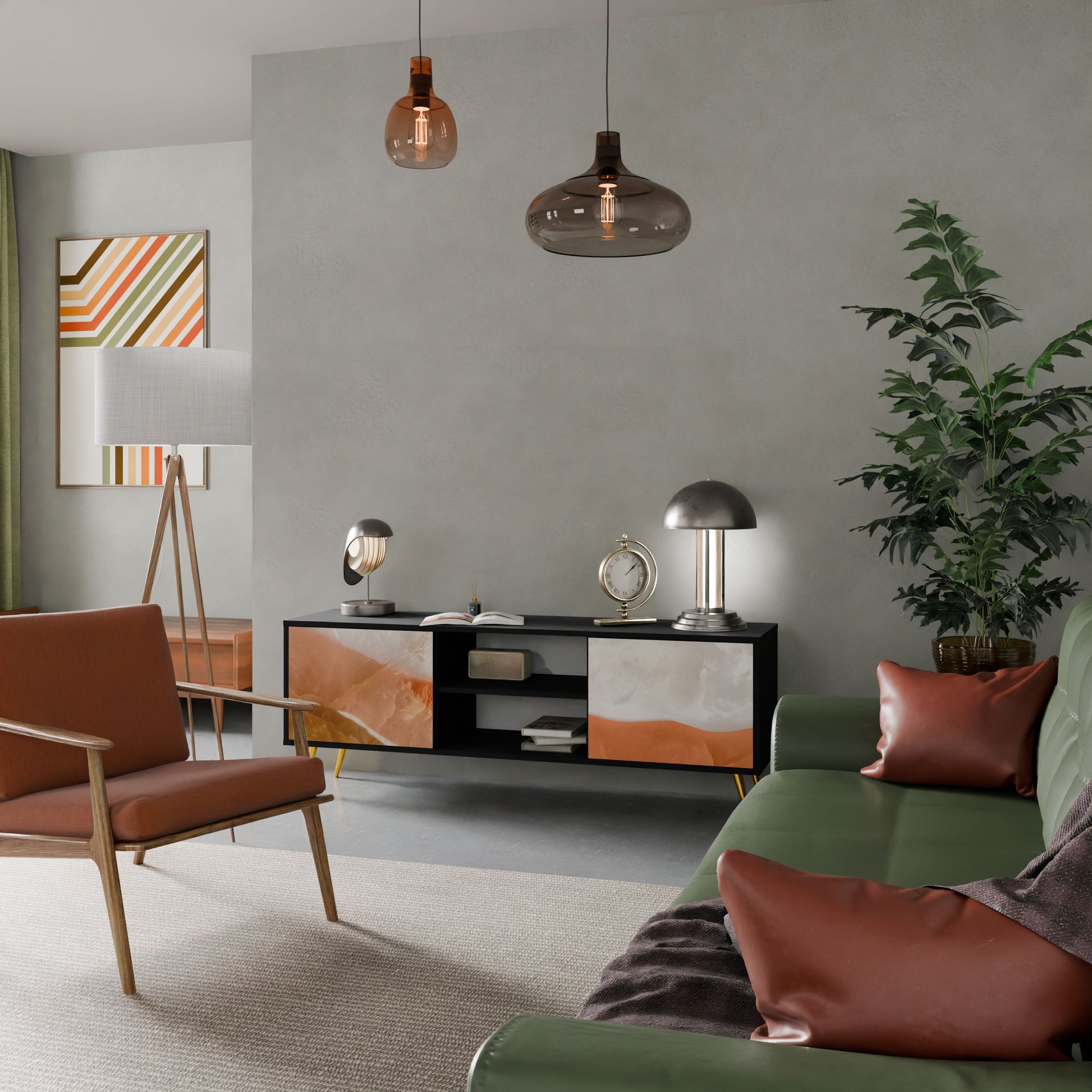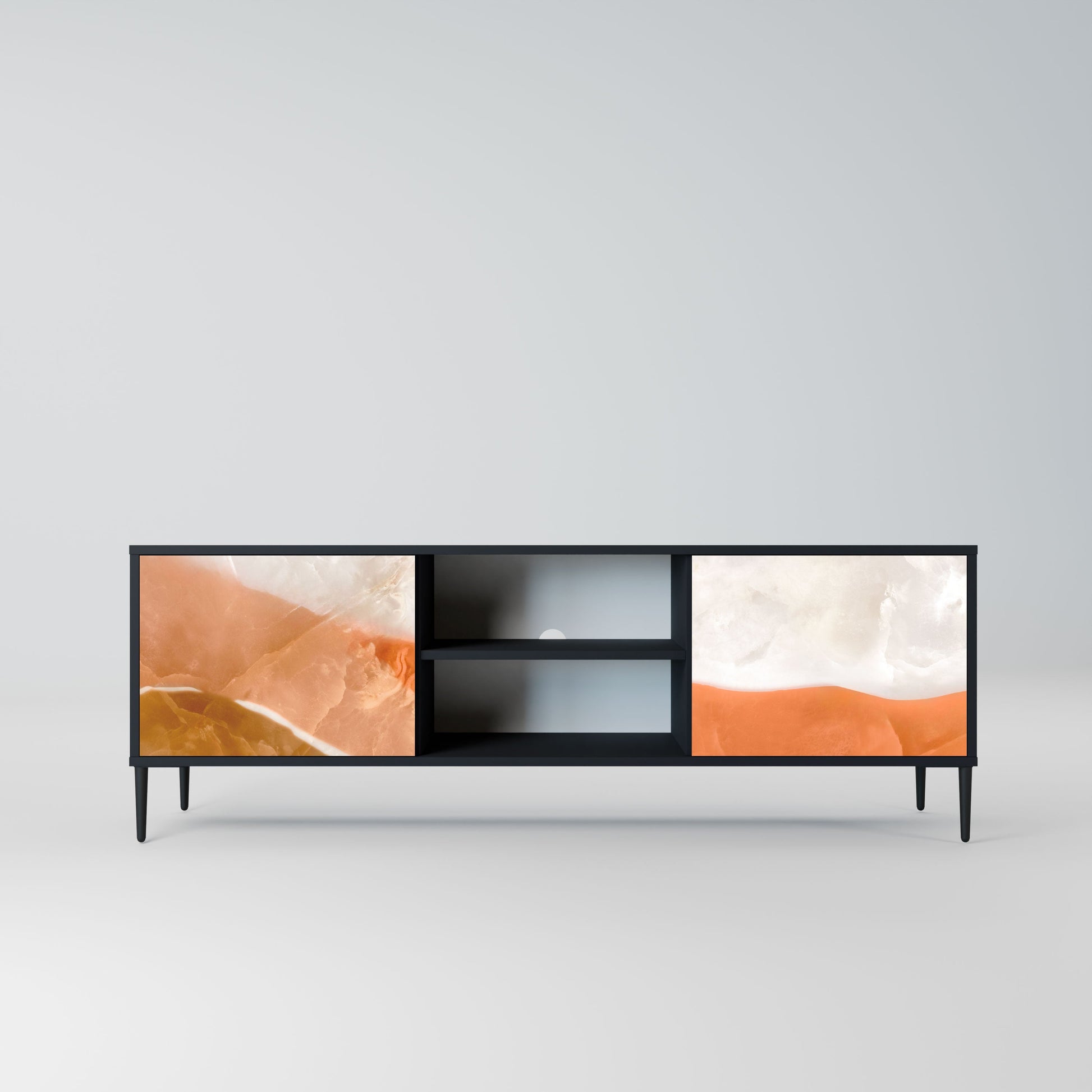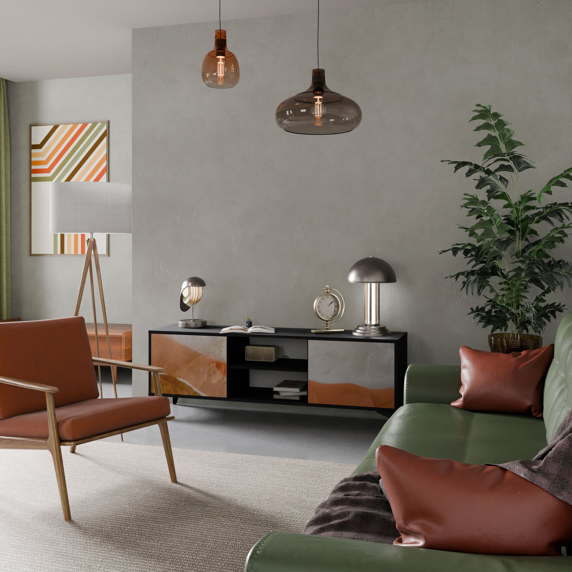The black body gives the TV stand an elegant, modern look, while the fronts with an exceptional print draw attention, making it the focal point of any room. The spacious interior provides room for electronic devices, cables, remotes, and other accessories, helping you maintain order and organization.