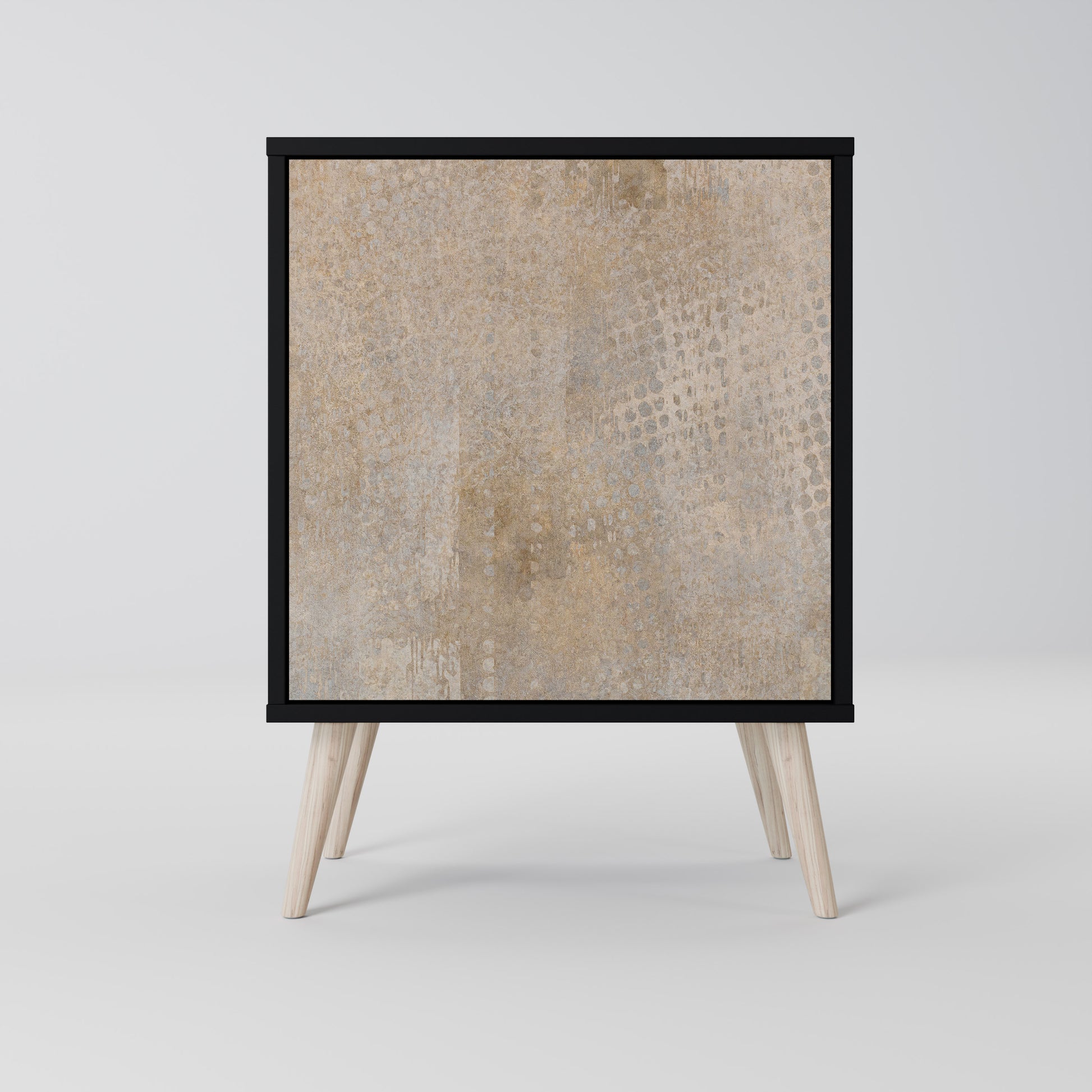 This compact yet remarkably elegant piece of furniture impresses with its minimalist design, perfectly fitting into both modern and classic interiors. The black body emphasizes the furniture’s bold character, while the fronts with a unique print add an artistic touch.
