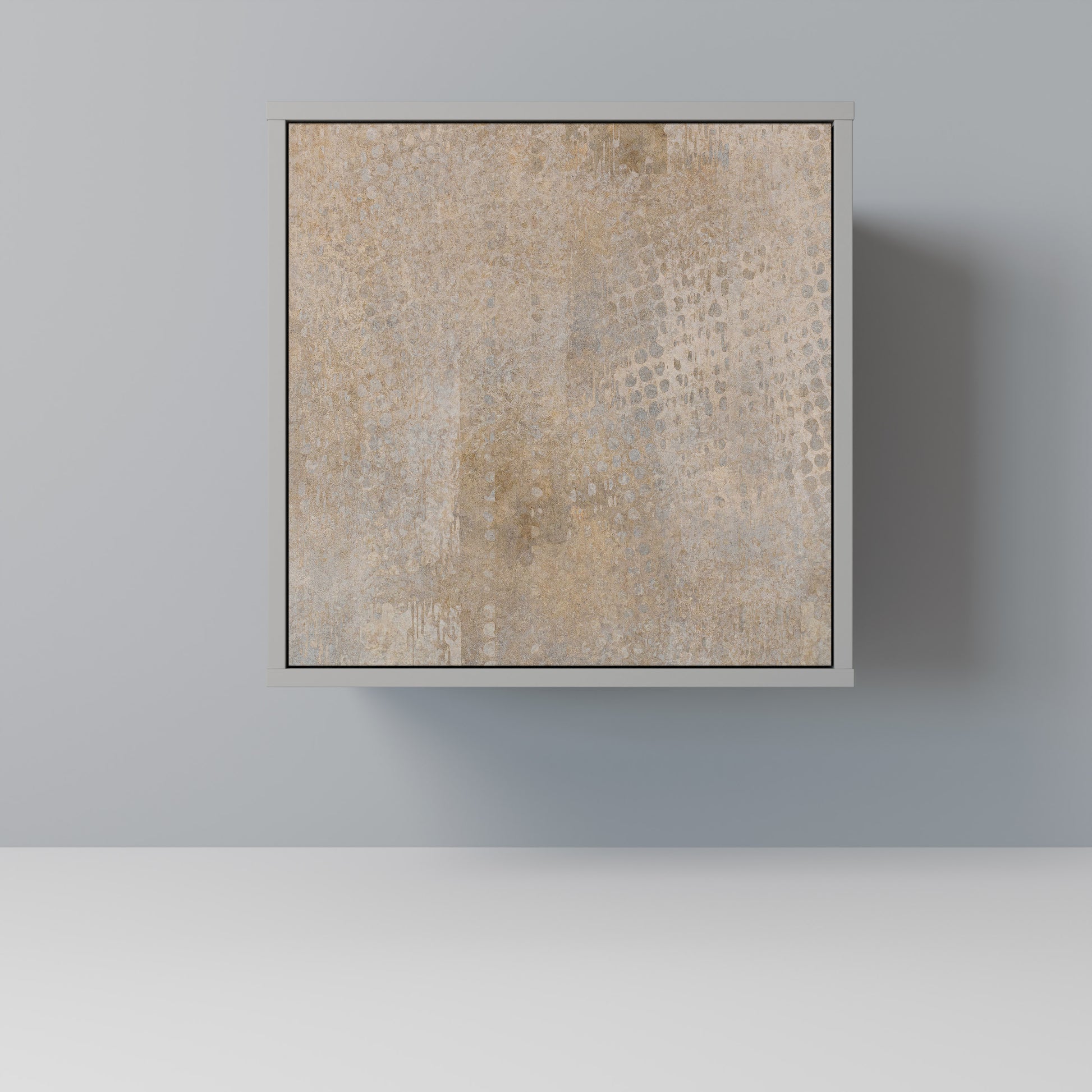 This compact yet remarkably elegant piece of furniture impresses with its minimalist design, perfectly fitting into both modern and classic interiors. The subdued grey color of the body gives the furniture a subtle yet distinctive character, while the fronts with a unique print add an artistic touch.