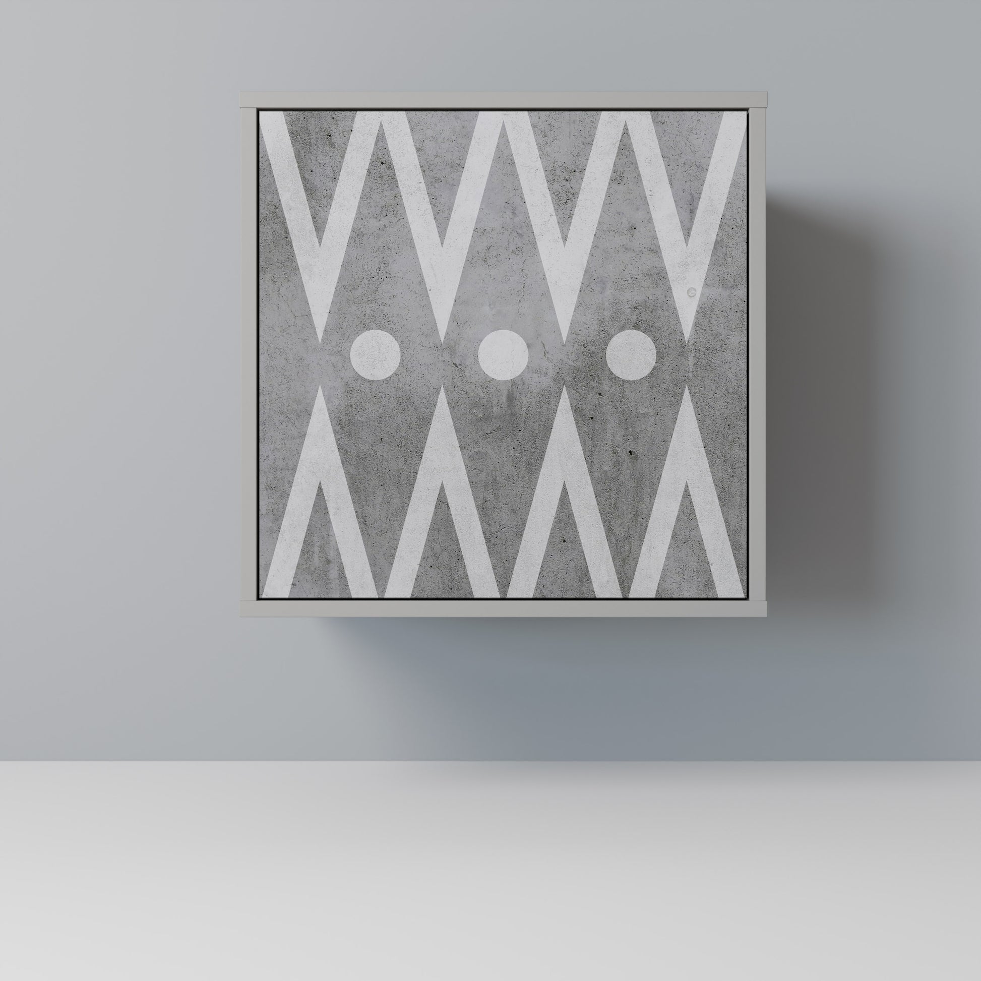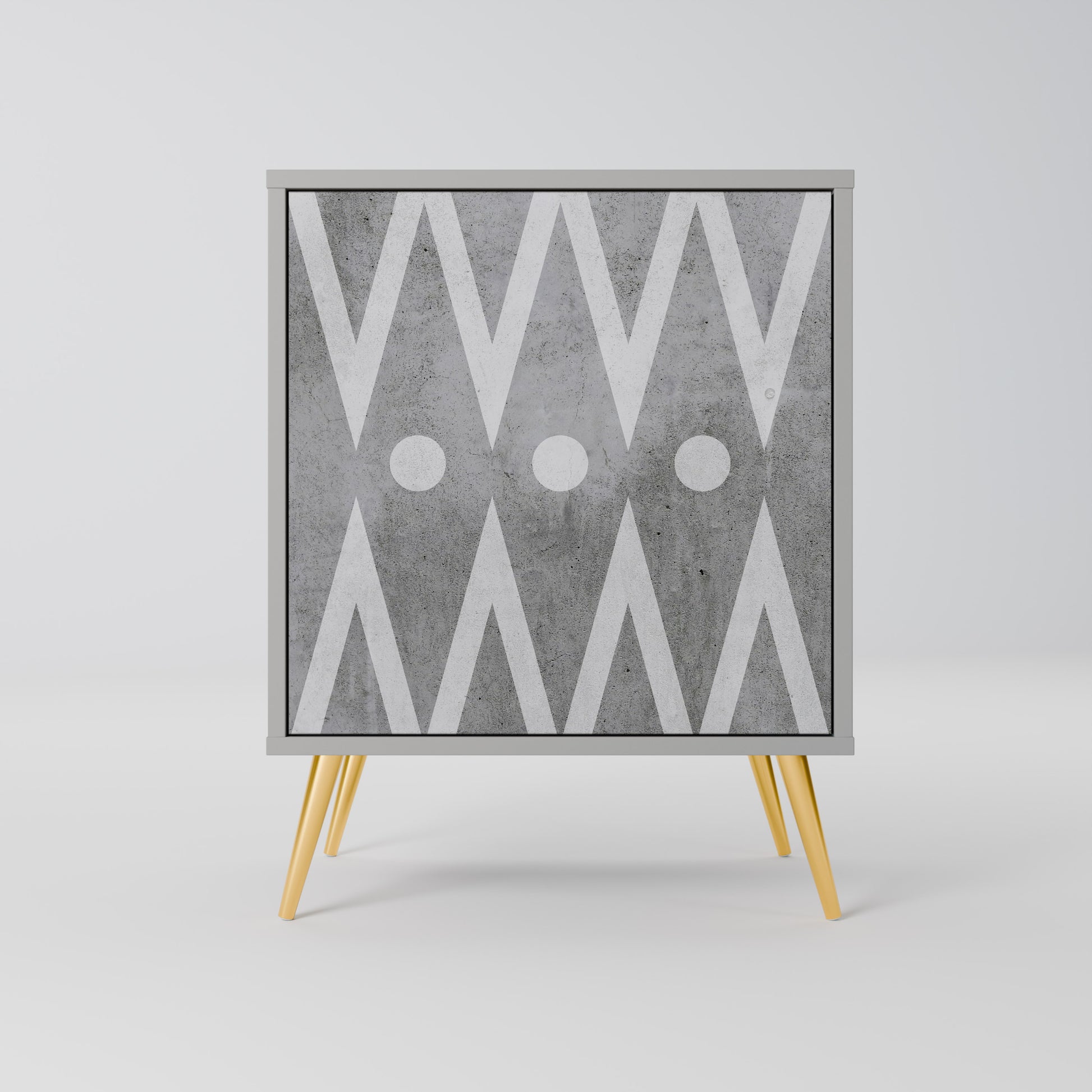 This compact yet remarkably elegant piece of furniture impresses with its minimalist design, perfectly fitting into both modern and classic interiors. The subdued grey color of the body gives the furniture a subtle yet distinctive character, while the fronts with a unique print add an artistic touch.