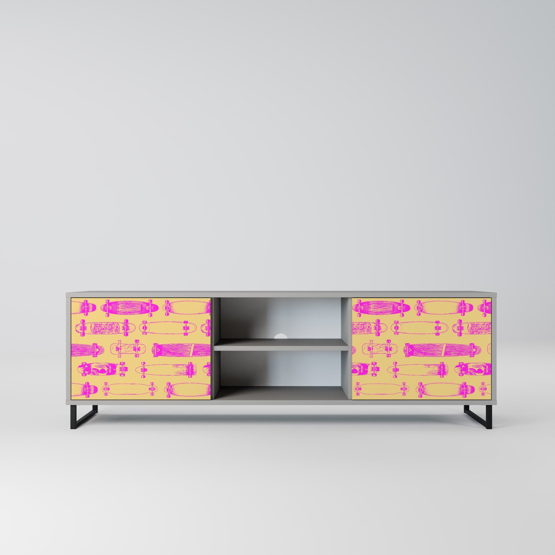 SKATEBOARD ARTISTRY 2-Door TV Stand in Grey Finish