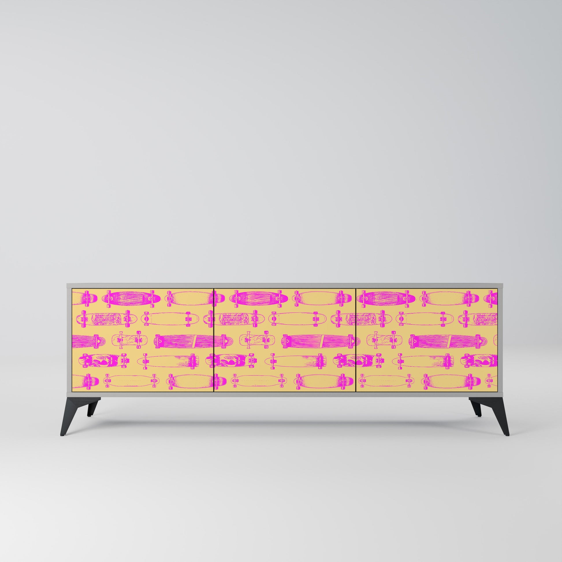 SKATEBOARD ARTISTRY 3-Door TV Stand in Grey Finish