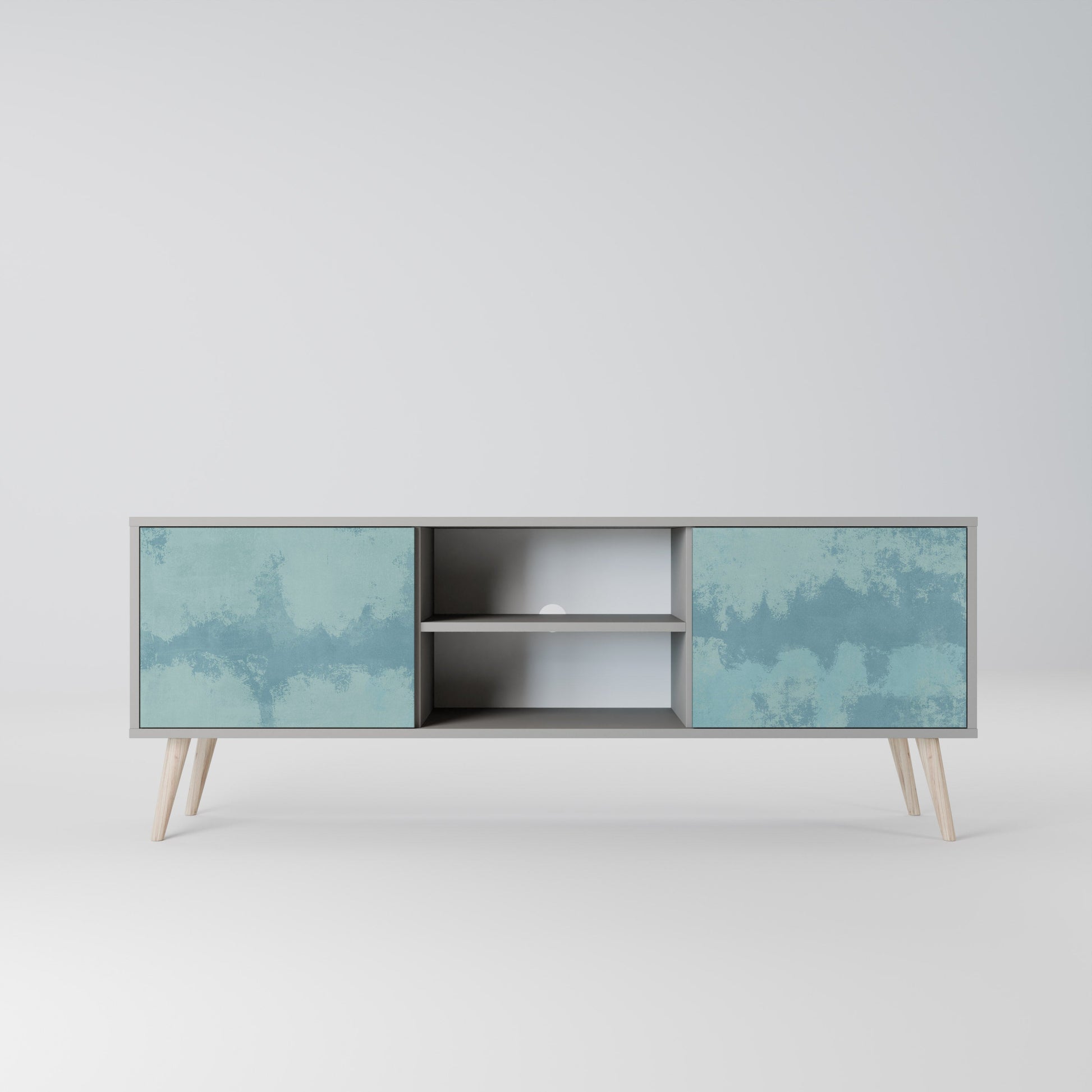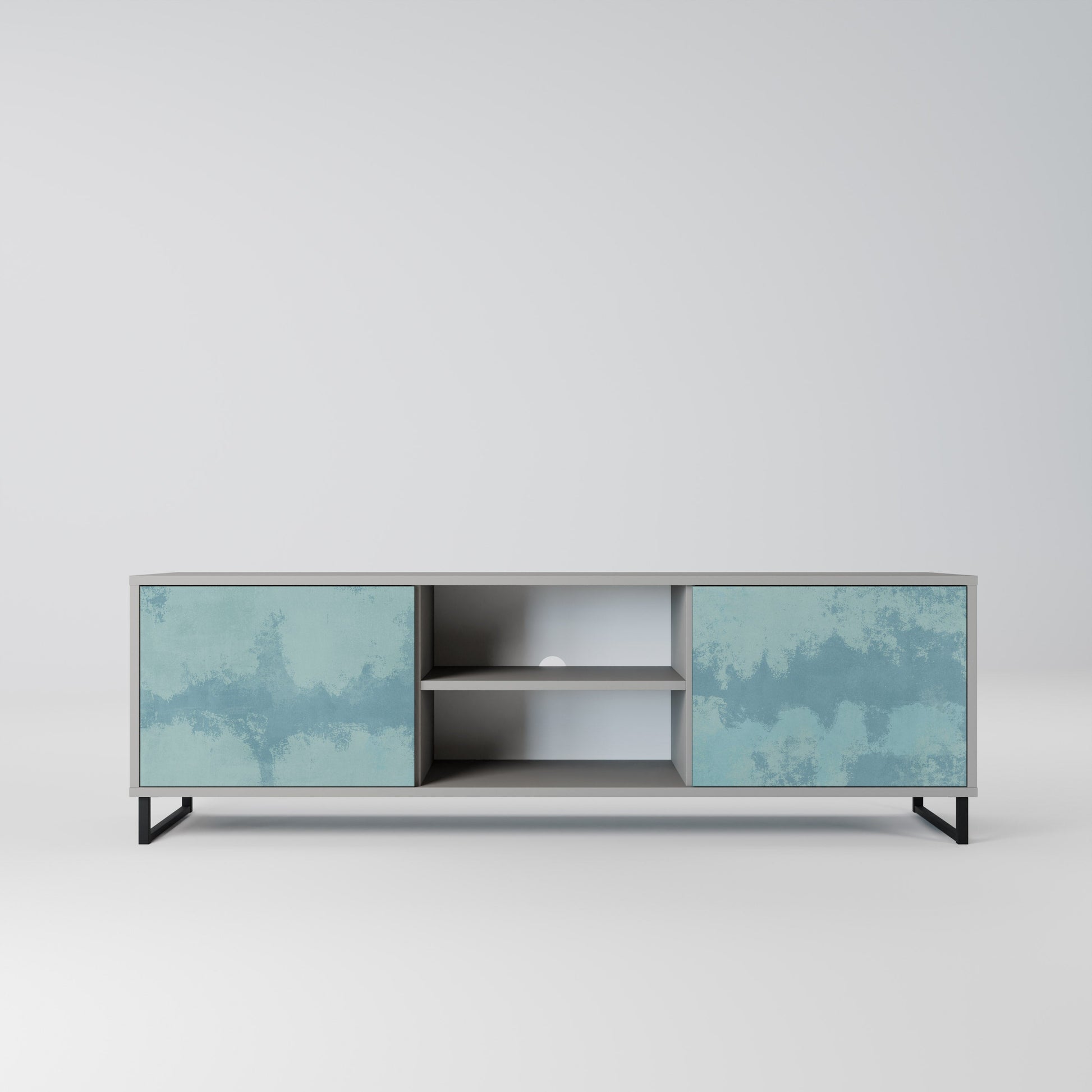 The grey body lends the TV stand a contemporary, refined look, while the fronts with an exceptional print capture attention, becoming the focal point of any room. The spacious interior provides room for electronic devices, cables, remotes, and other accessories, helping you maintain order and organization.