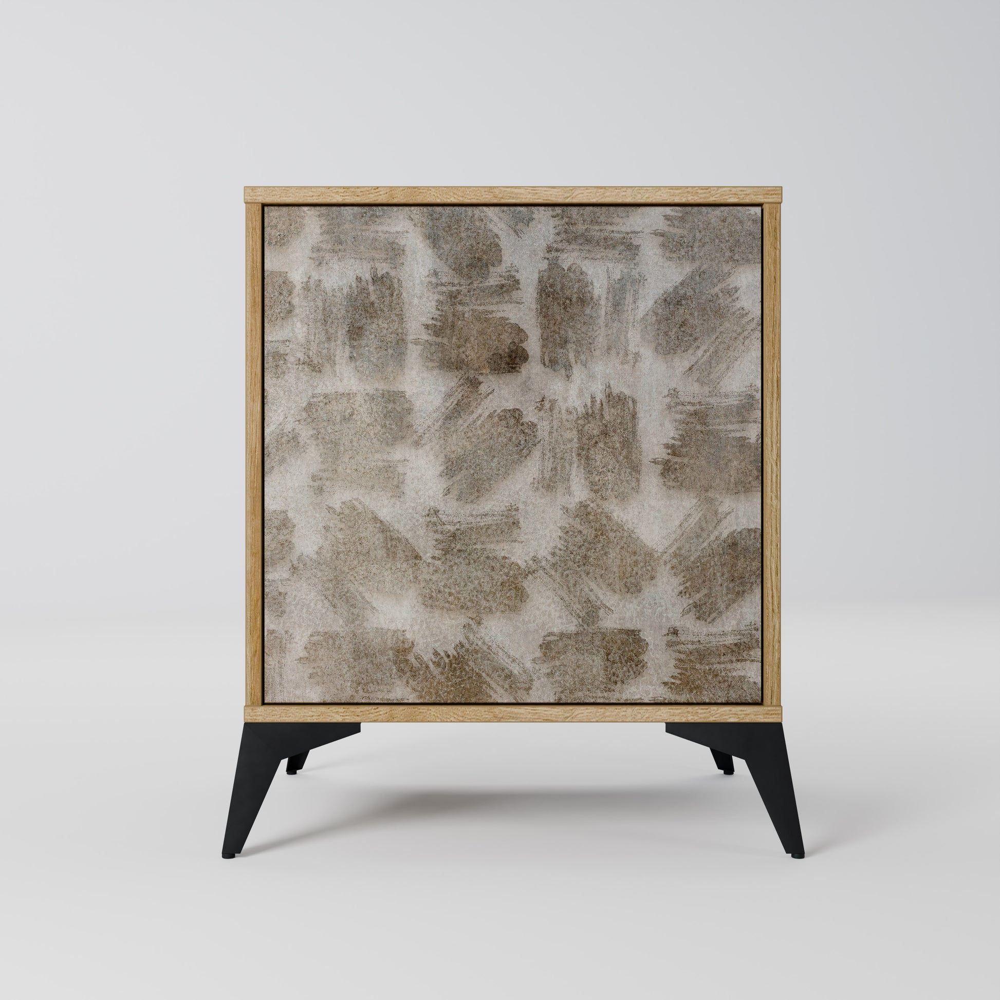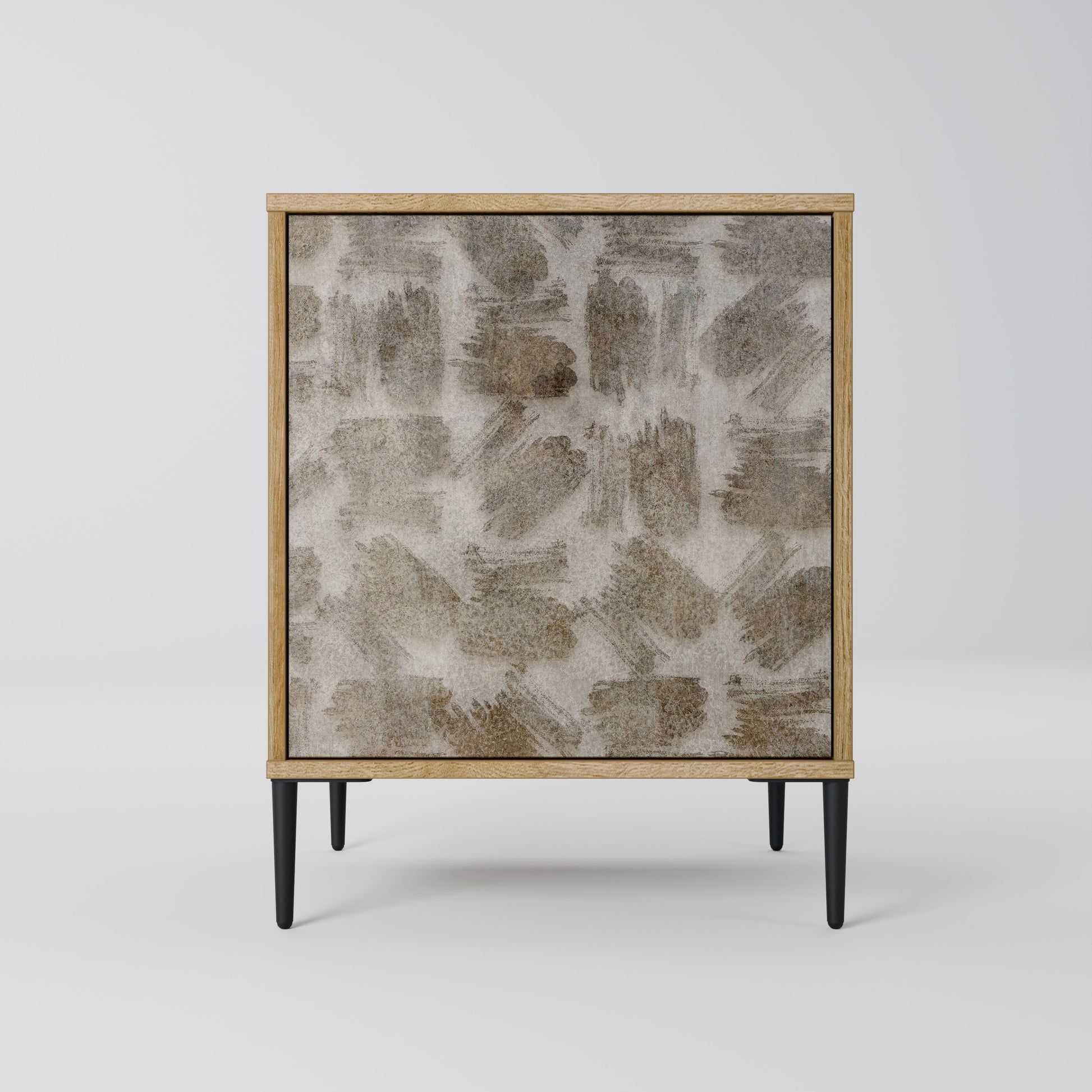 The stylish front with a subtle print adds a modern touch, making the sideboard not only a practical but also a decorative element of the interior.
