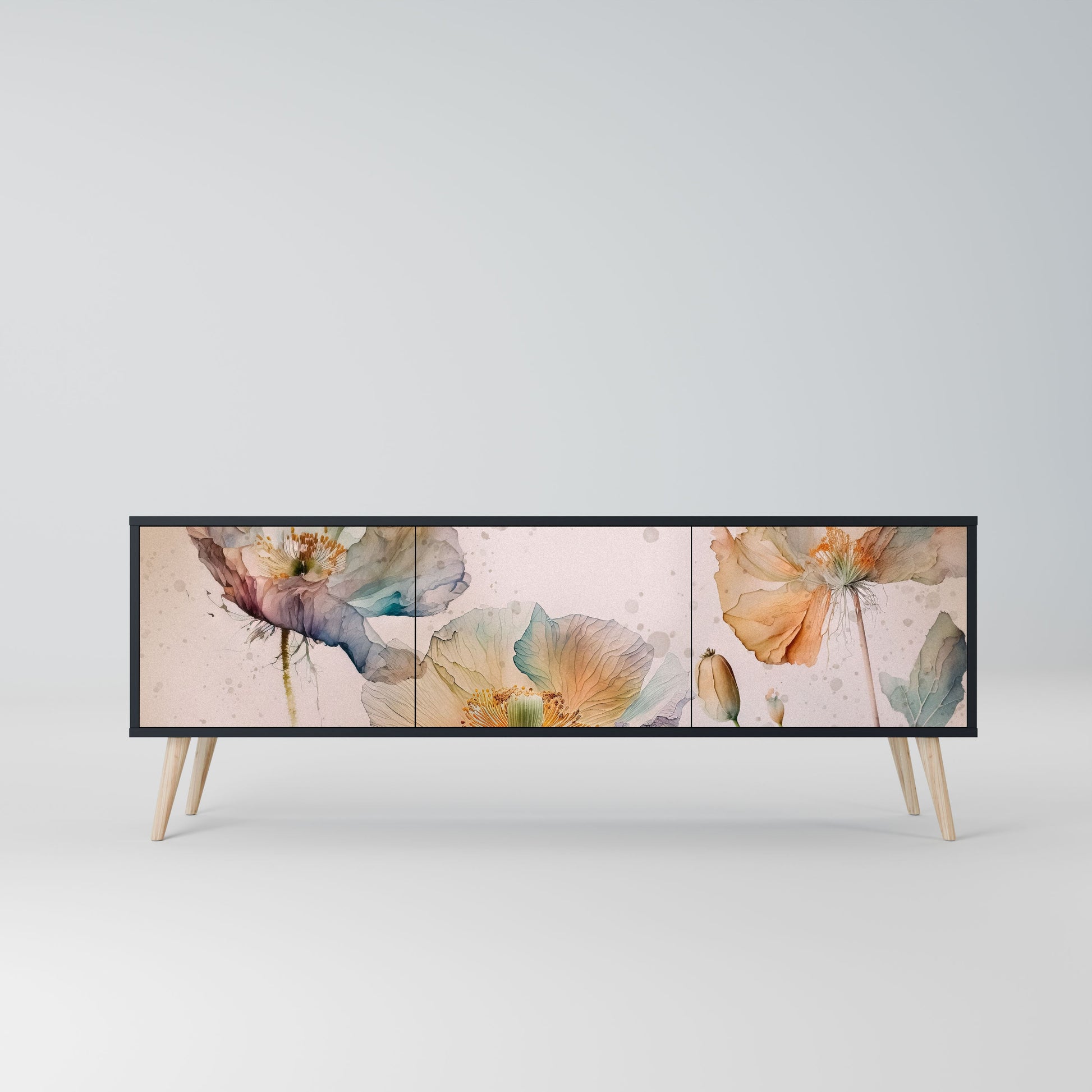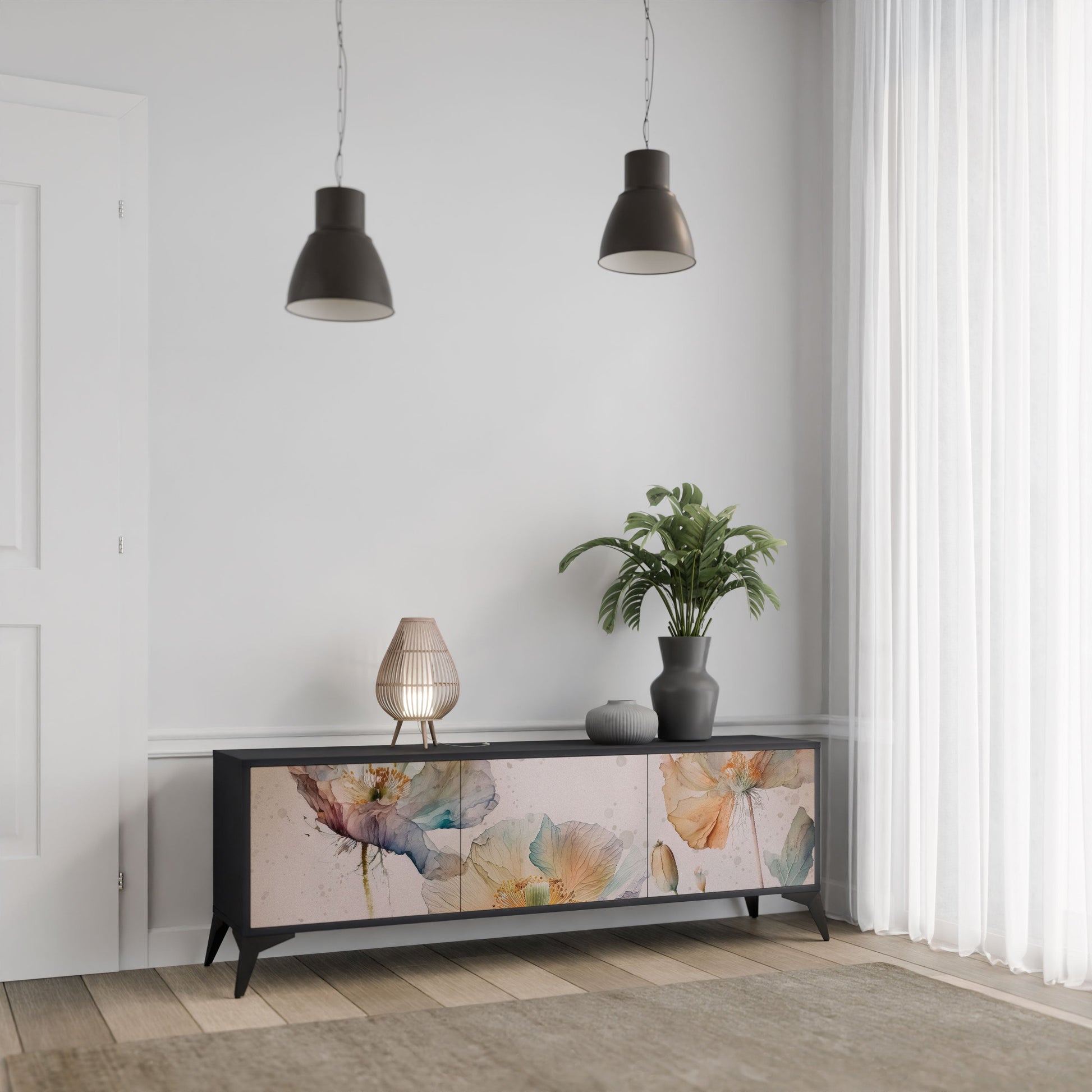 SOFTEN POPPY 3-Door TV Stand in Black Finish