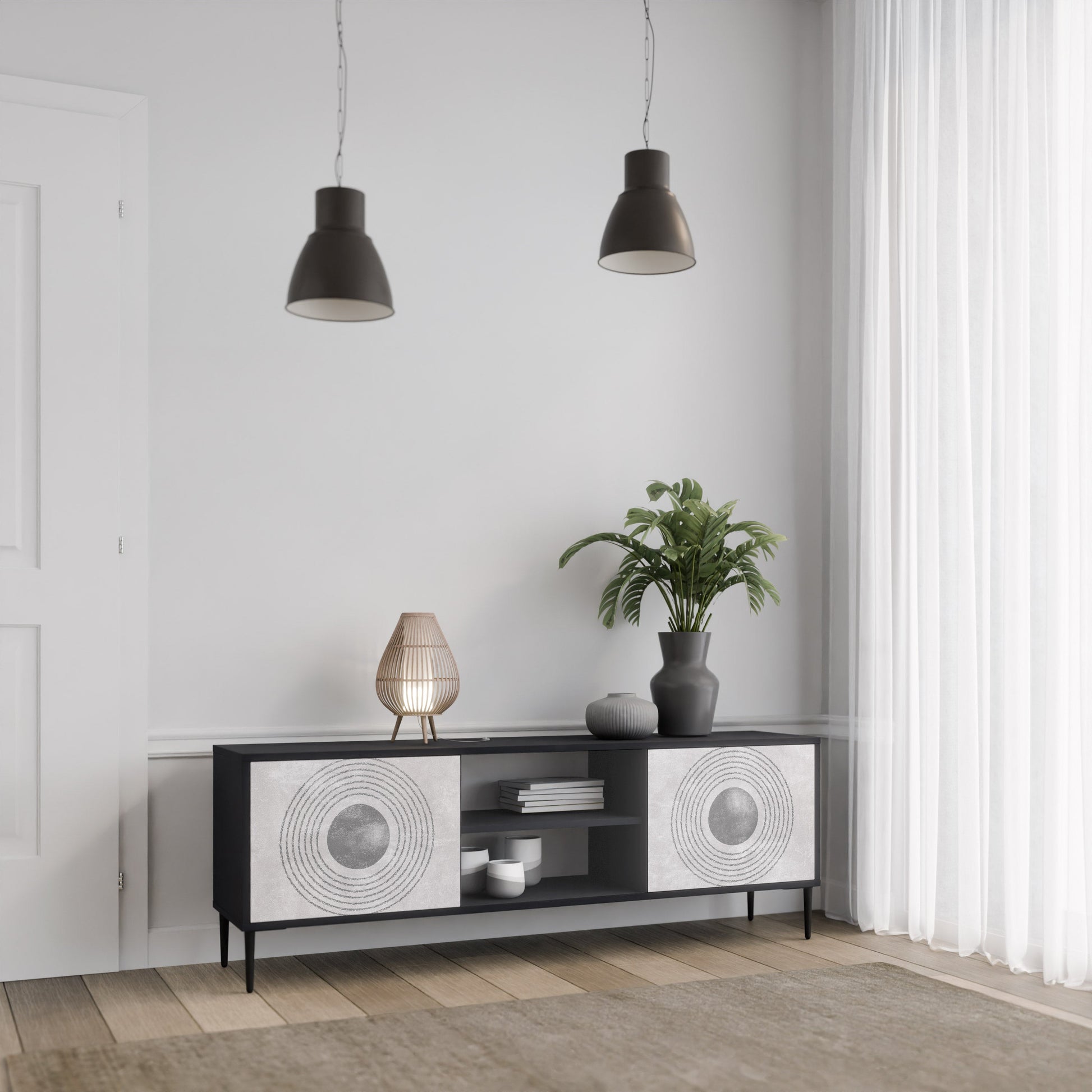 SOLID CIRCLES 2-Door TV Stand in Black Finish
