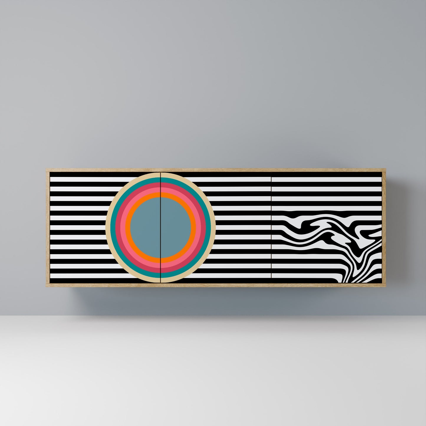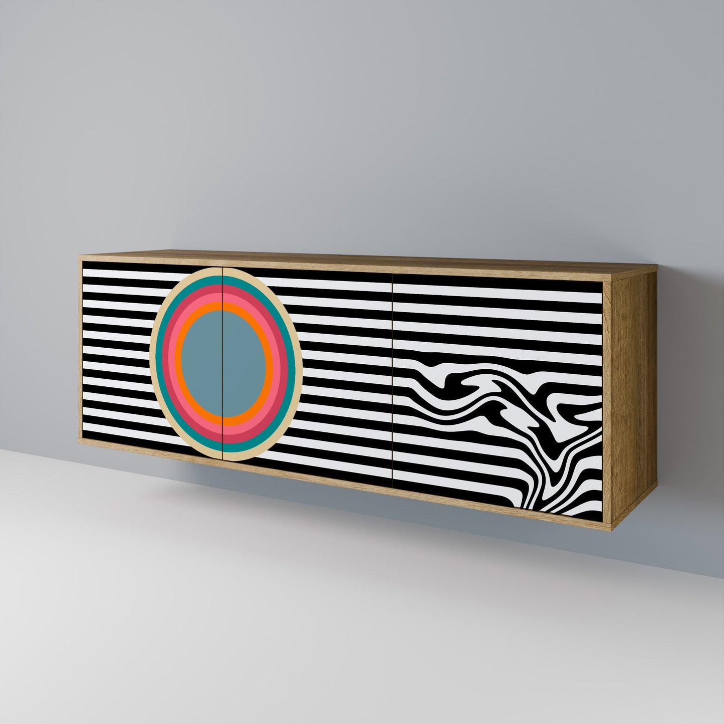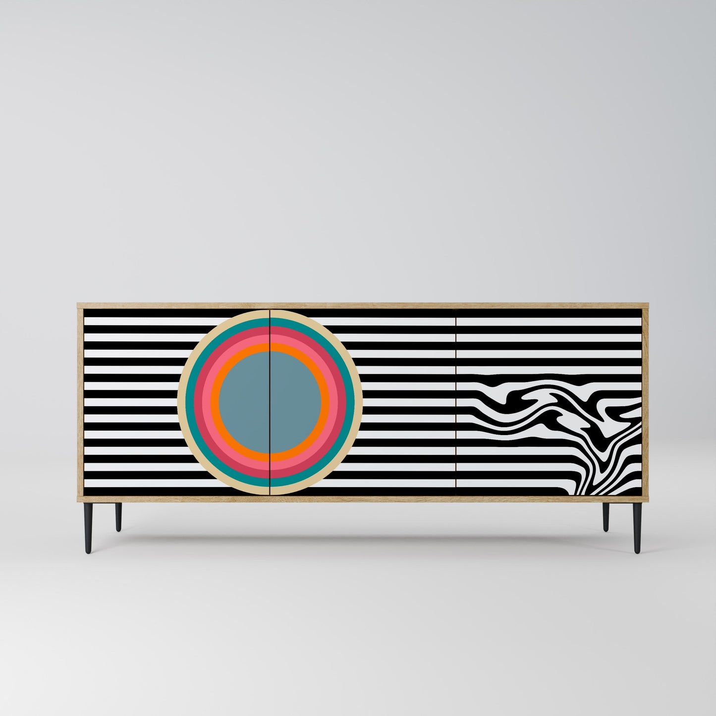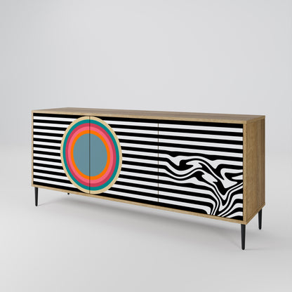 Discover the elegance and natural beauty of wood with our 3-door sideboard in oak finish. This stylish piece combines the sturdiness of a wooden body with the aesthetic detail of printed front doors, creating a cohesive and attractive design. Perfect for both the living room and bedroom, this sideboard adds a touch of class and functionality to any interior.