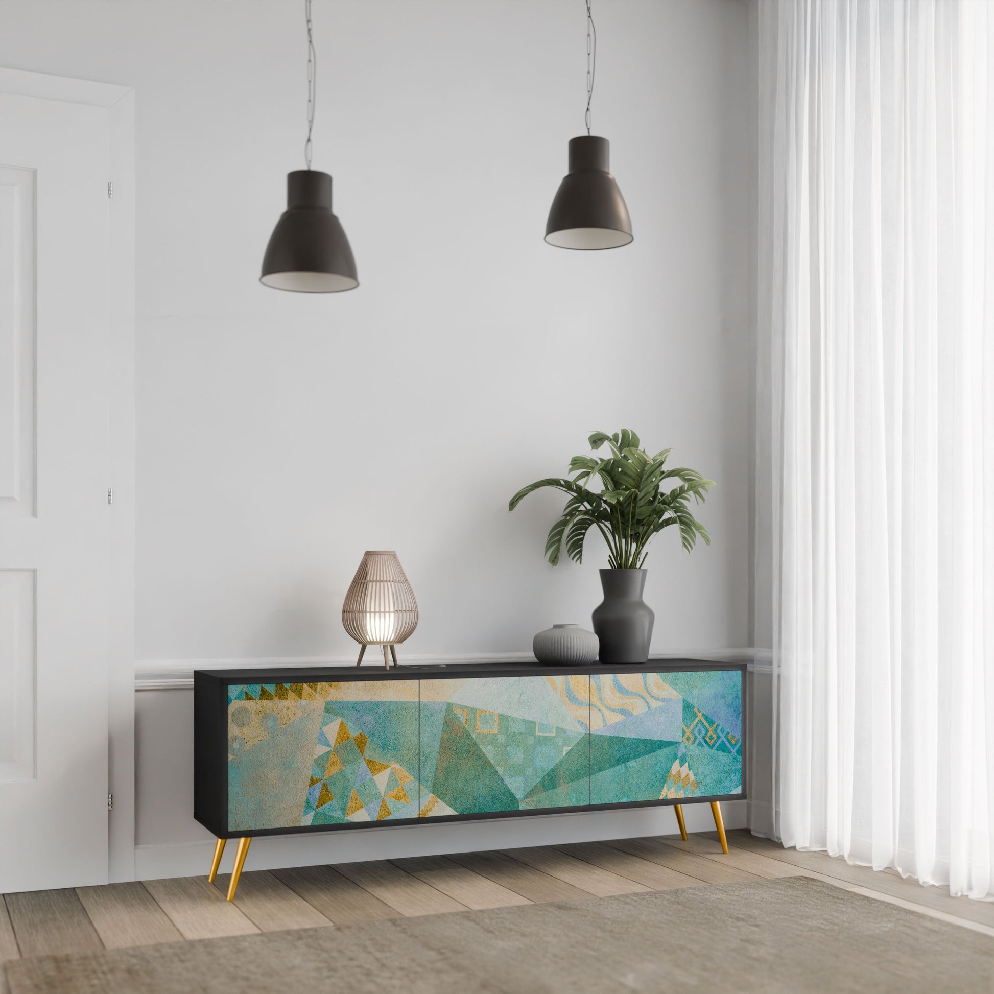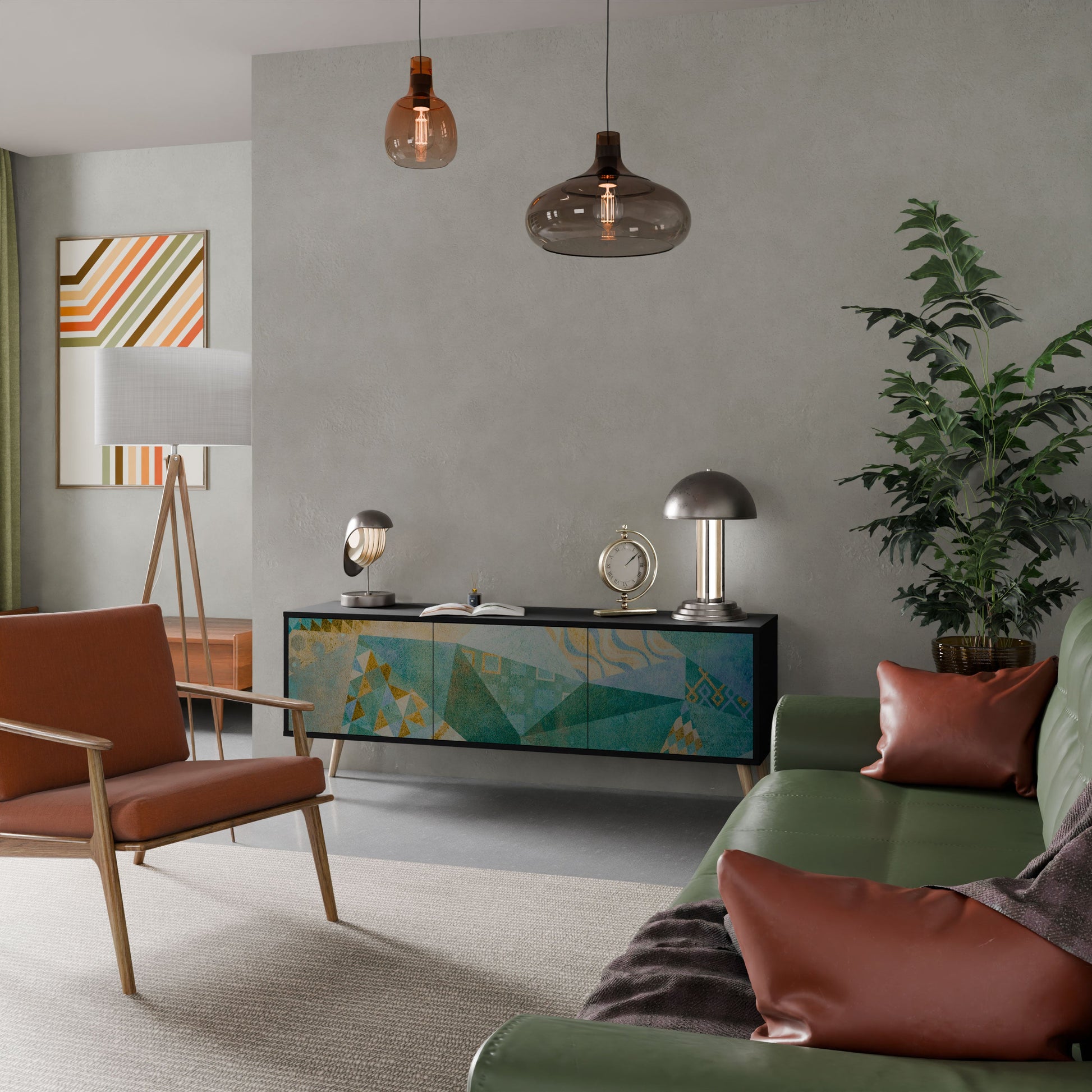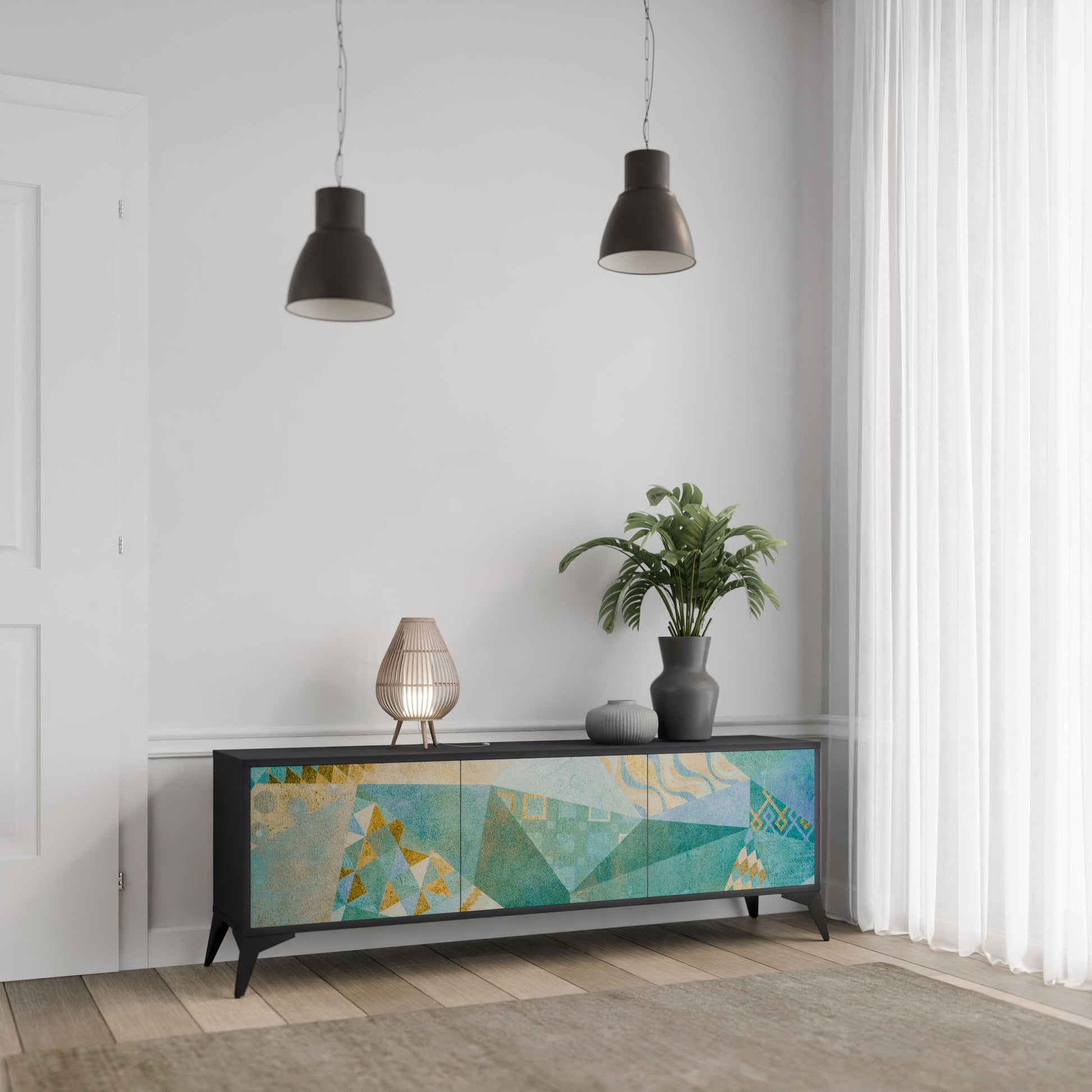 The black body of the stand creates a bold, modern accent that pairs beautifully with industrial and minimalist arrangements. The fronts with a designer print add character and uniqueness, making this piece not only practical but also a standout decorative element.