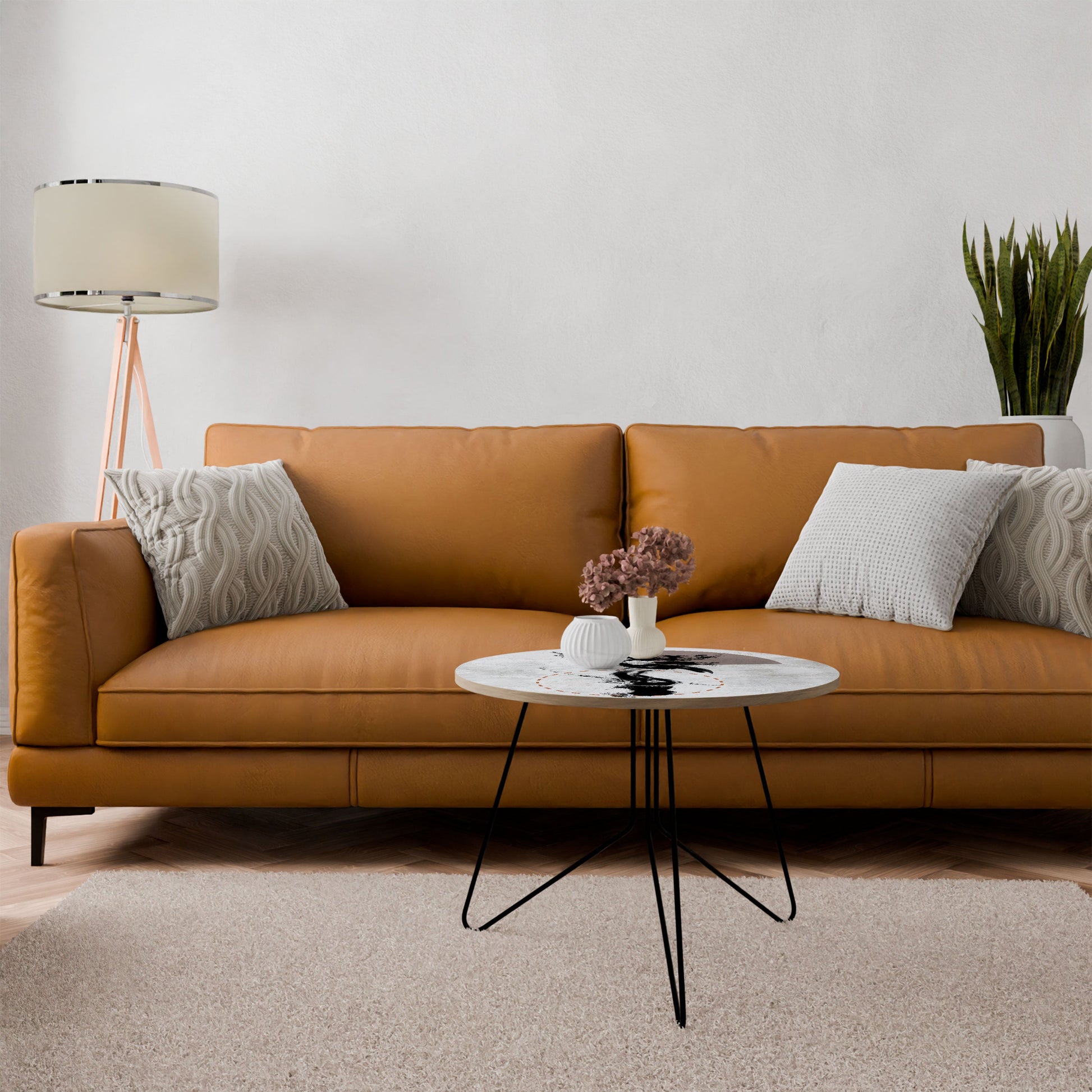 The tabletop features a high-quality printed motif, adding a distinctive artistic accent to your space. Crafted from durable chipboard covered with laminate, it ensures long-lasting use and resistance to daily wear.