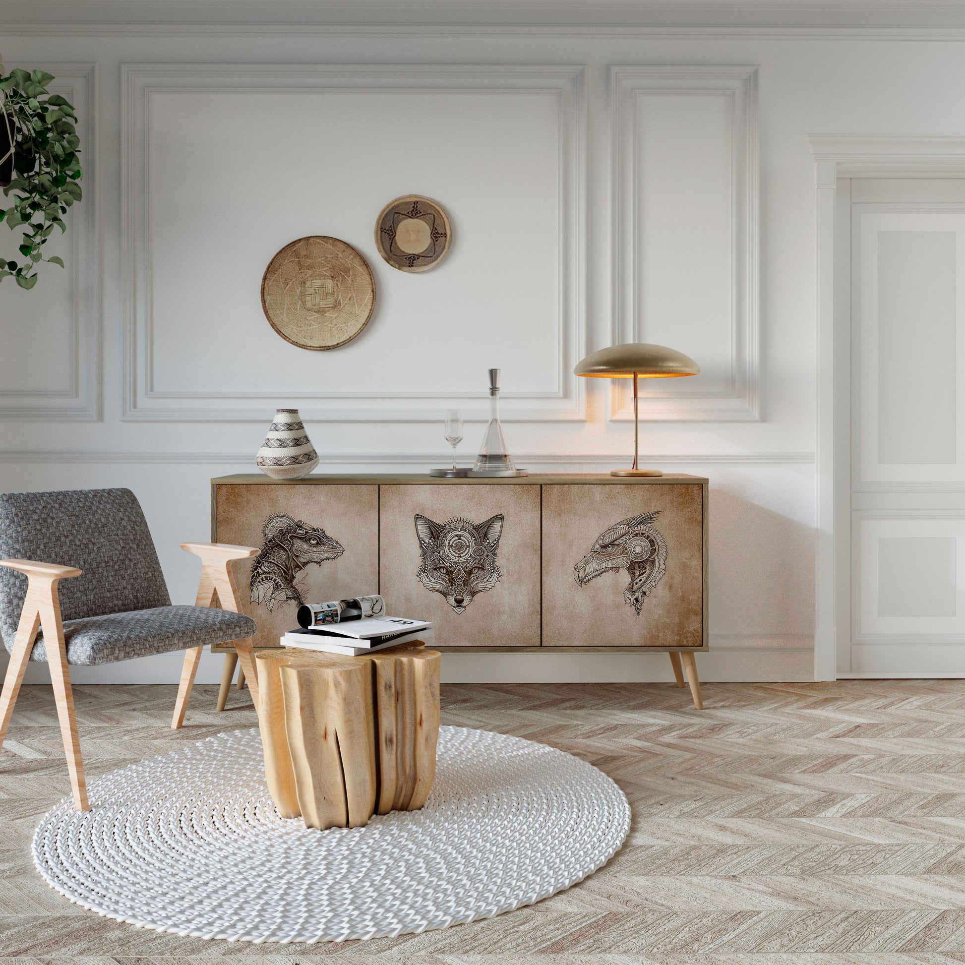 Discover the elegance and natural beauty of wood with our 3-door sideboard in oak finish. This stylish piece combines the sturdiness of a wooden body with the aesthetic detail of printed front doors, creating a cohesive and attractive design. Perfect for both the living room and bedroom, this sideboard adds a touch of class and functionality to any interior.
