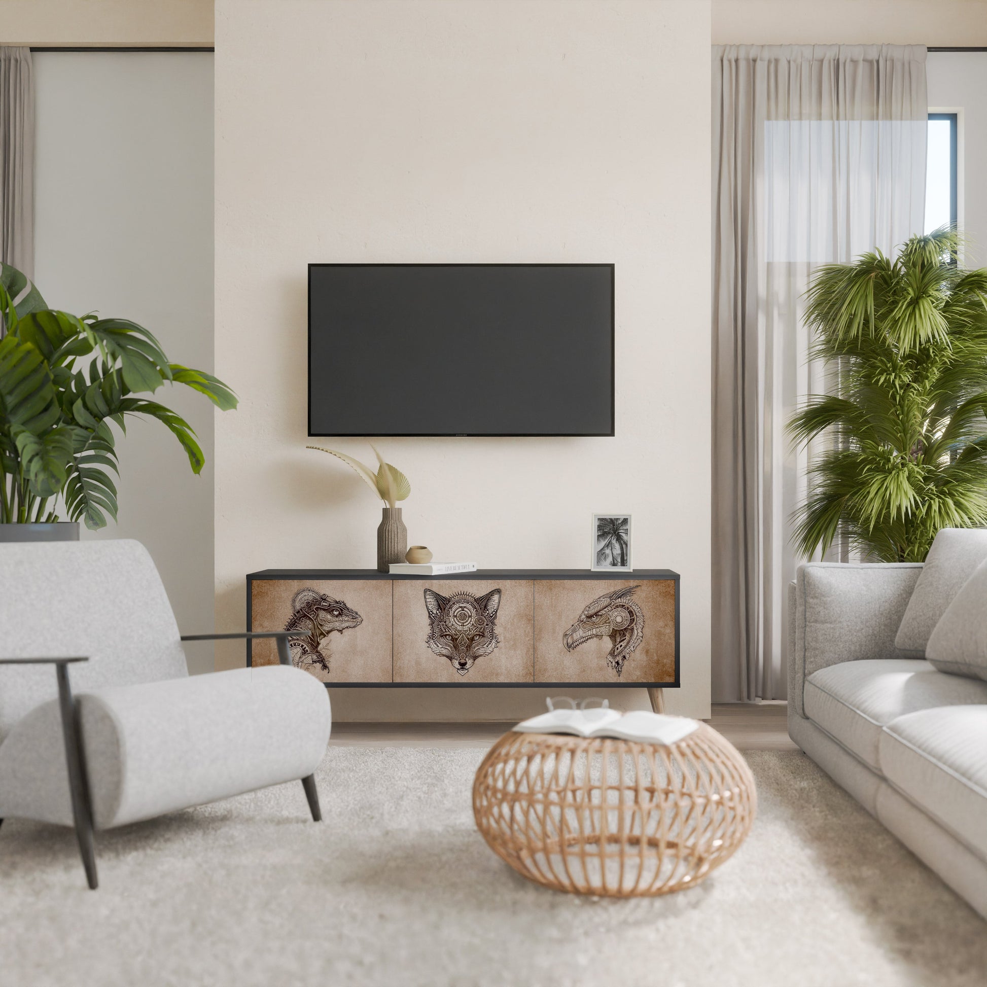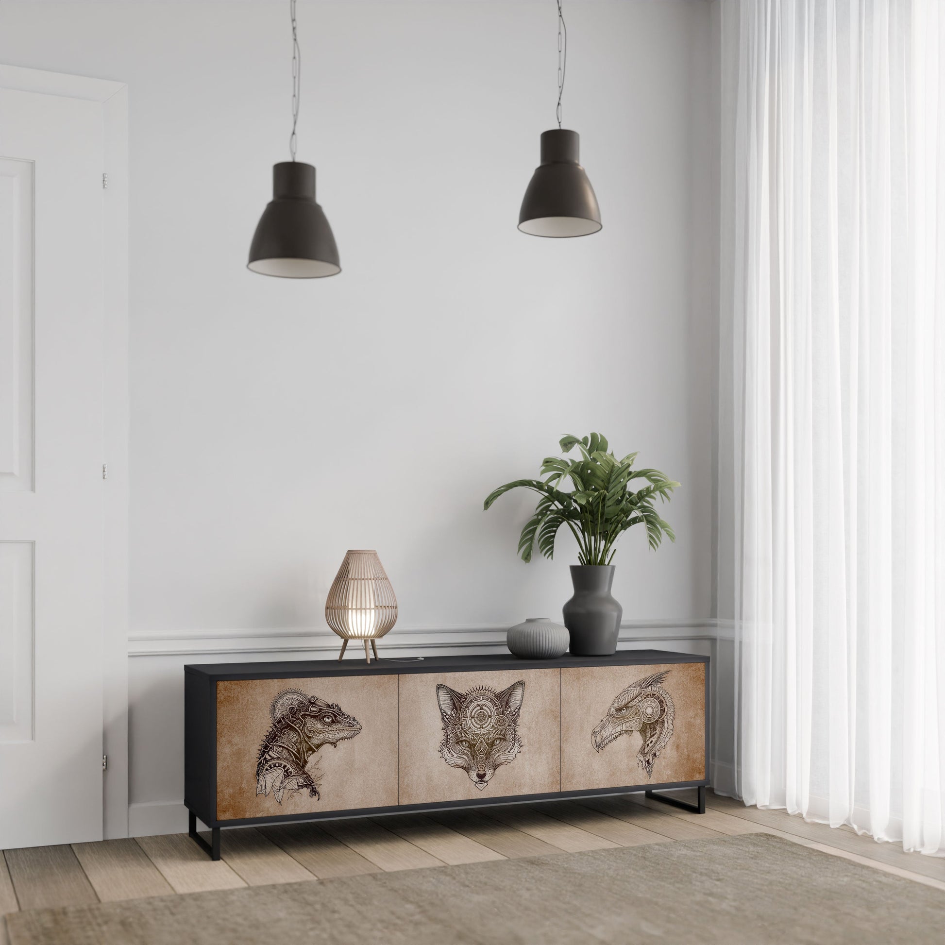 STEAMPUNK CLAN 3-Door TV Stand in Black Finish