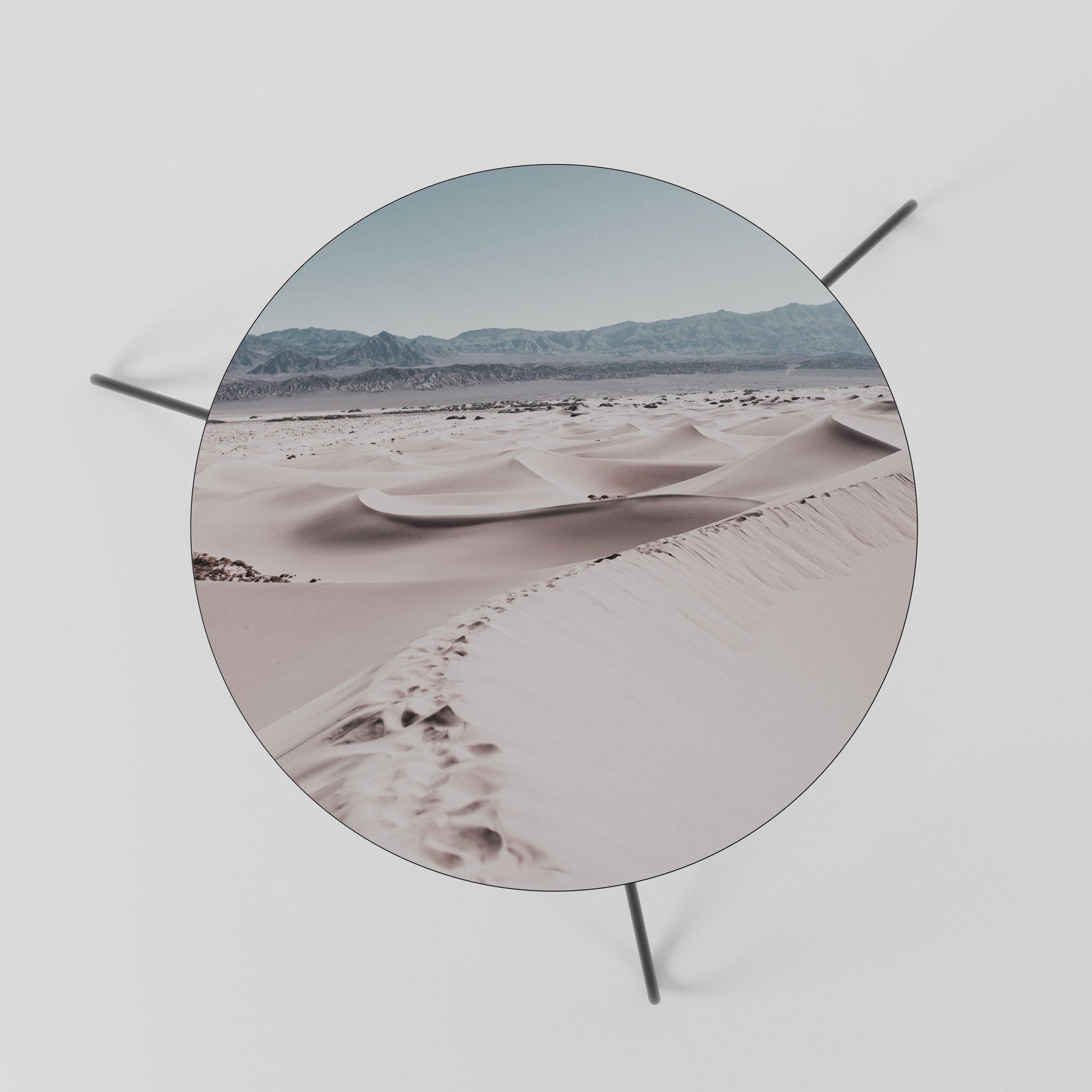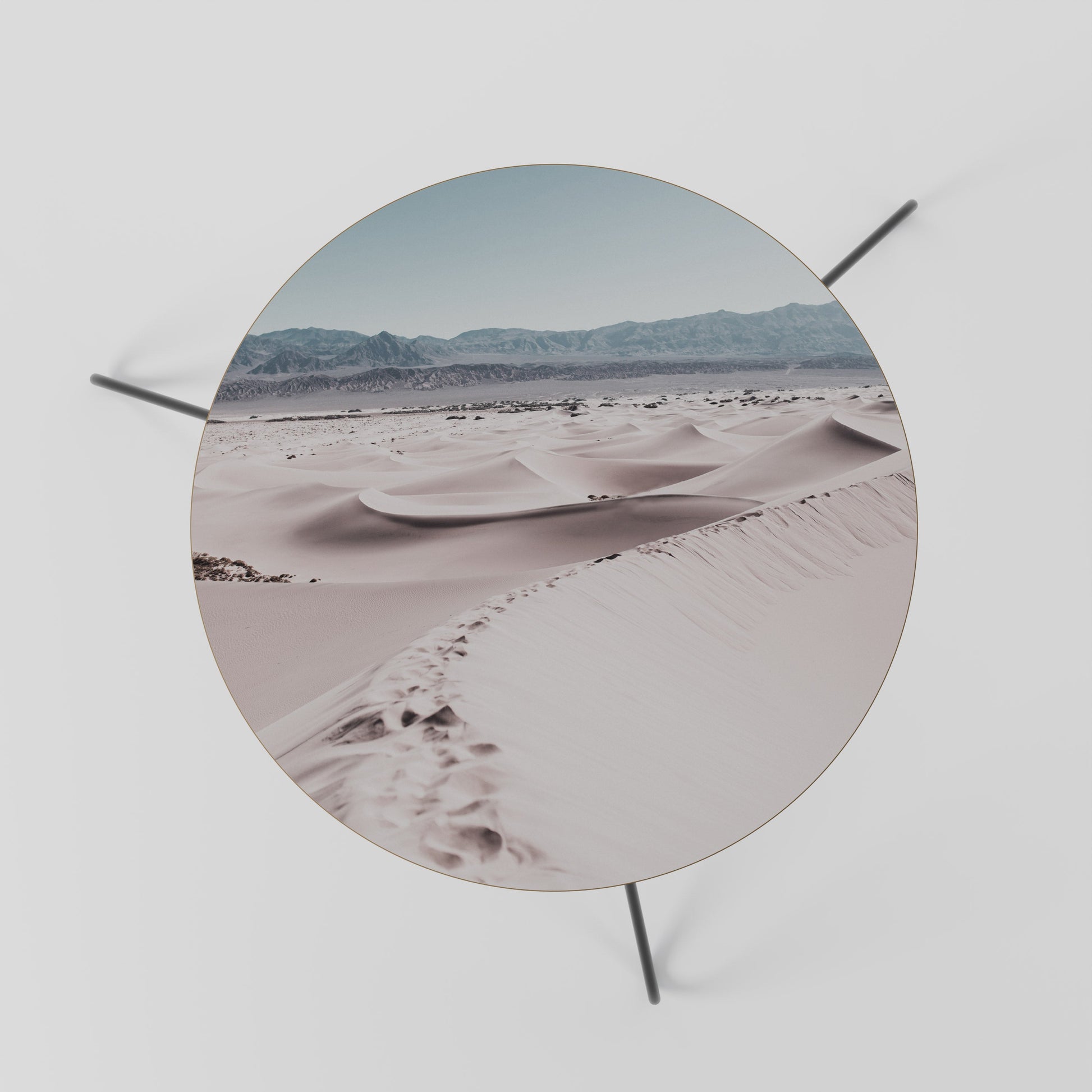 The tabletop features a high-quality printed motif, adding a distinctive artistic accent to your space. Crafted from durable chipboard covered with laminate, it ensures long-lasting use and resistance to daily wear.