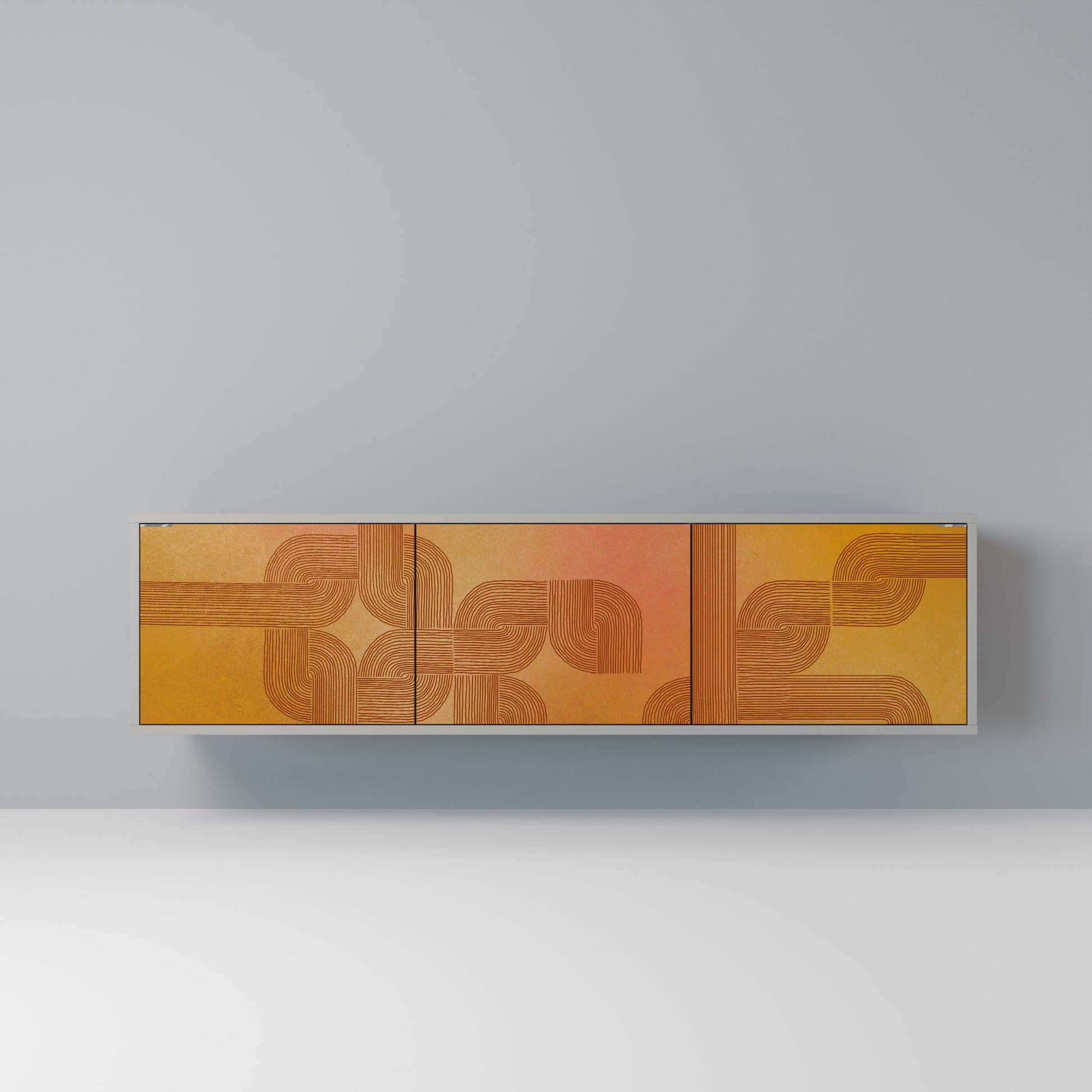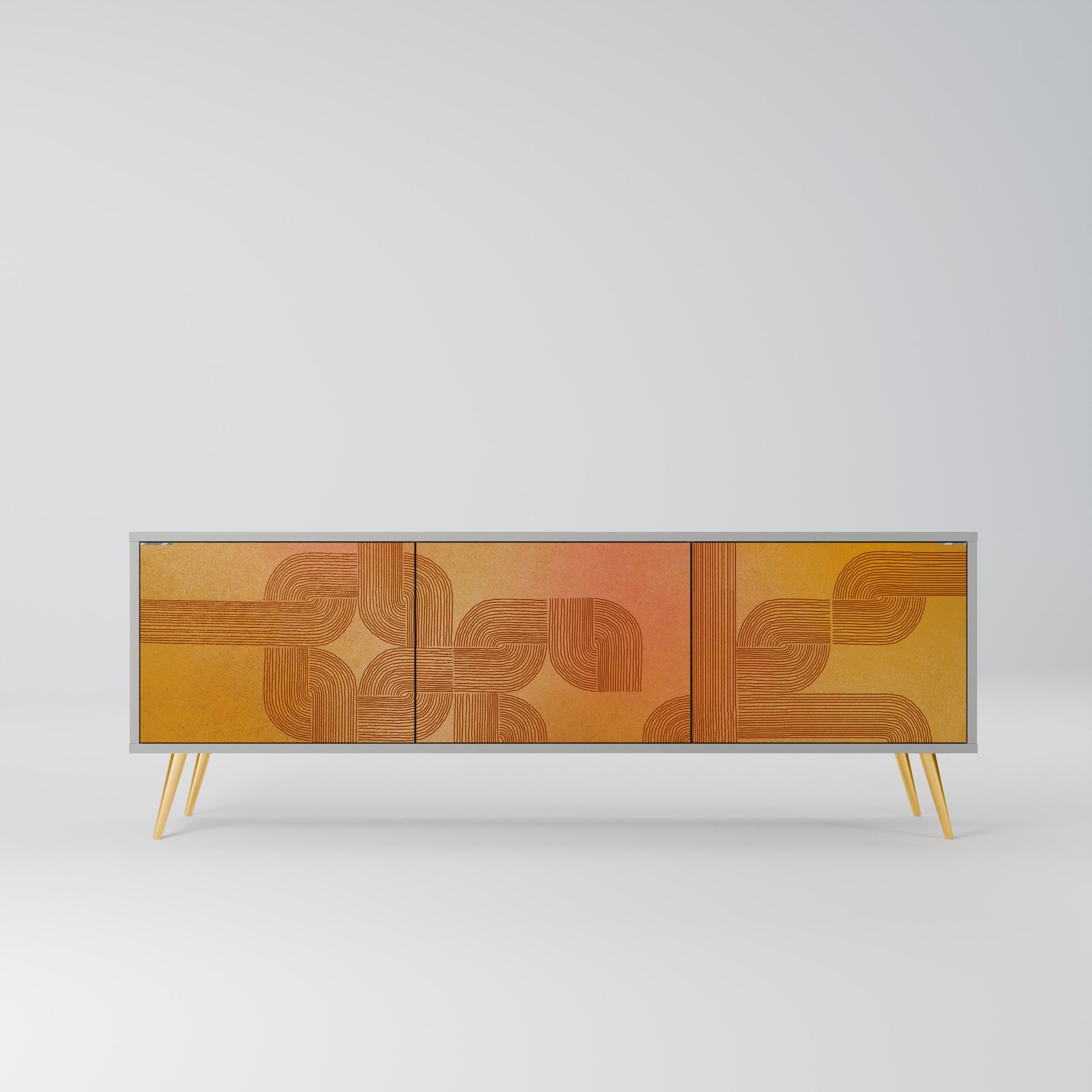 The grey body of the stand creates a refined, modern accent that pairs beautifully with industrial and minimalist arrangements. The fronts with a designer print add character and uniqueness, making this piece not only practical but also a standout decorative element.