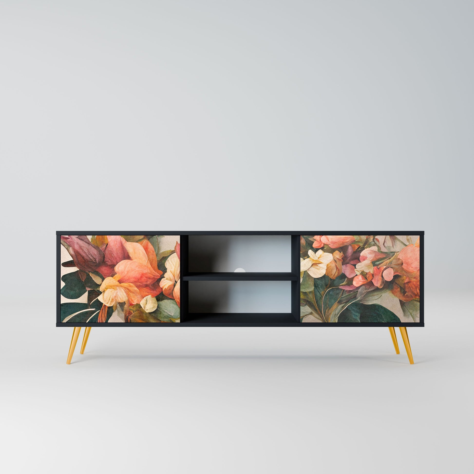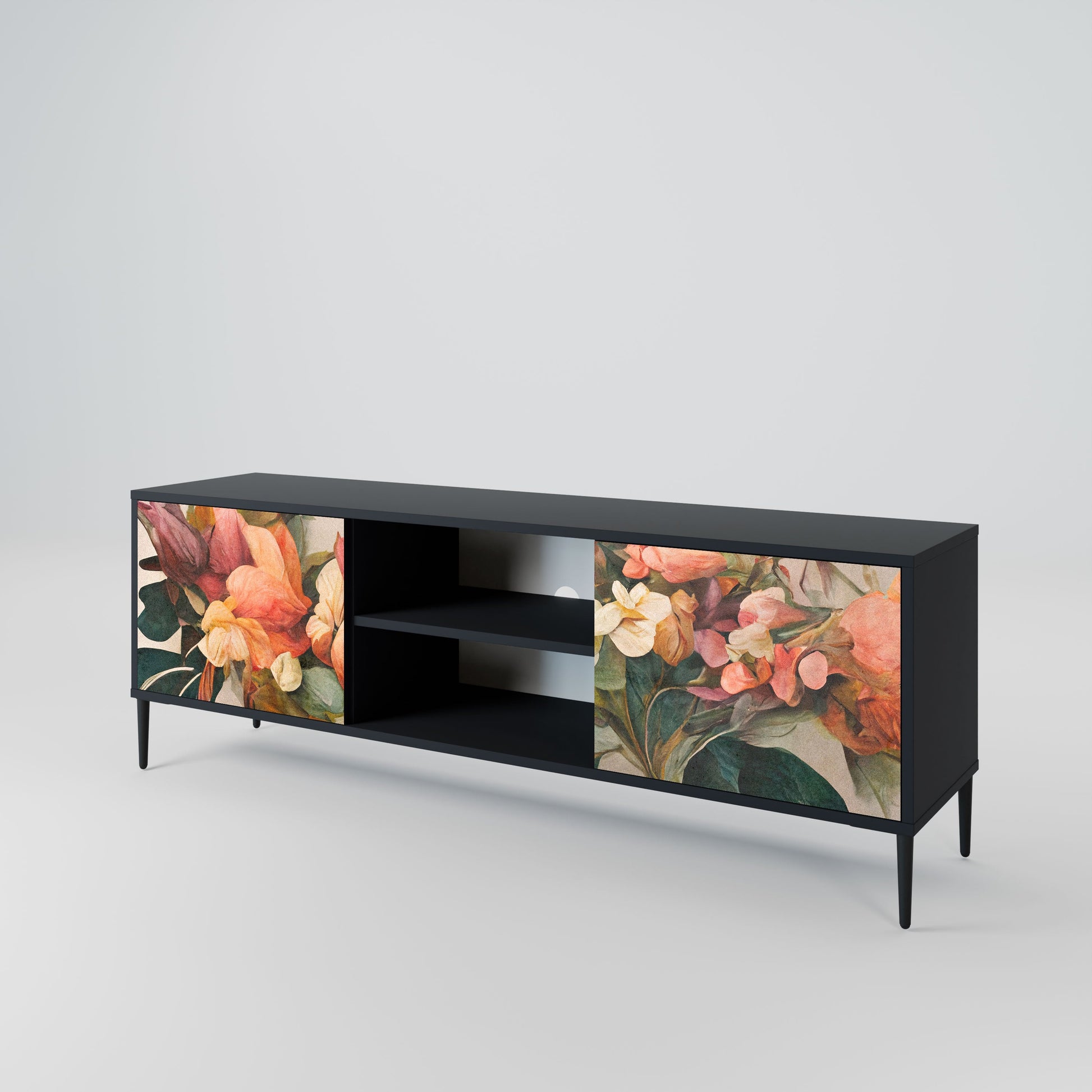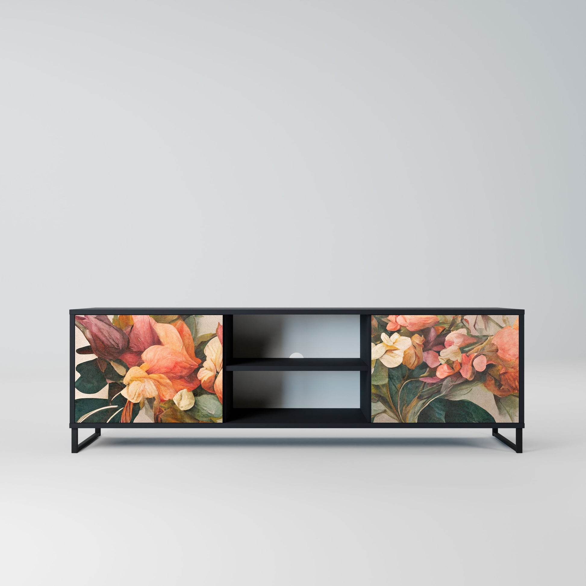 The black body gives the TV stand an elegant, modern look, while the fronts with an exceptional print draw attention, making it the focal point of any room. The spacious interior provides room for electronic devices, cables, remotes, and other accessories, helping you maintain order and organization.