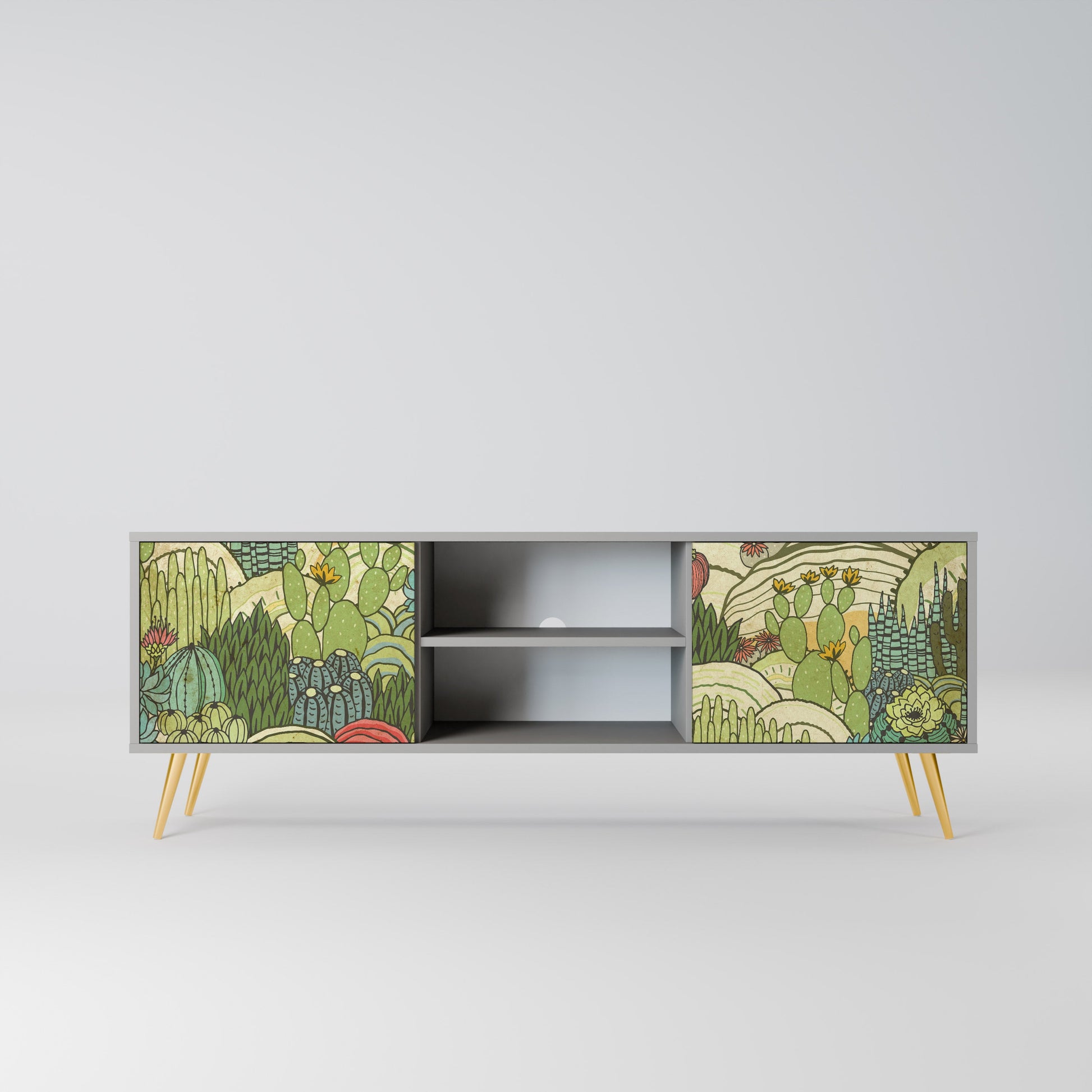 SUCCULENTS KALEIDOSCOPE 2-Door TV Stand in Grey Finish
