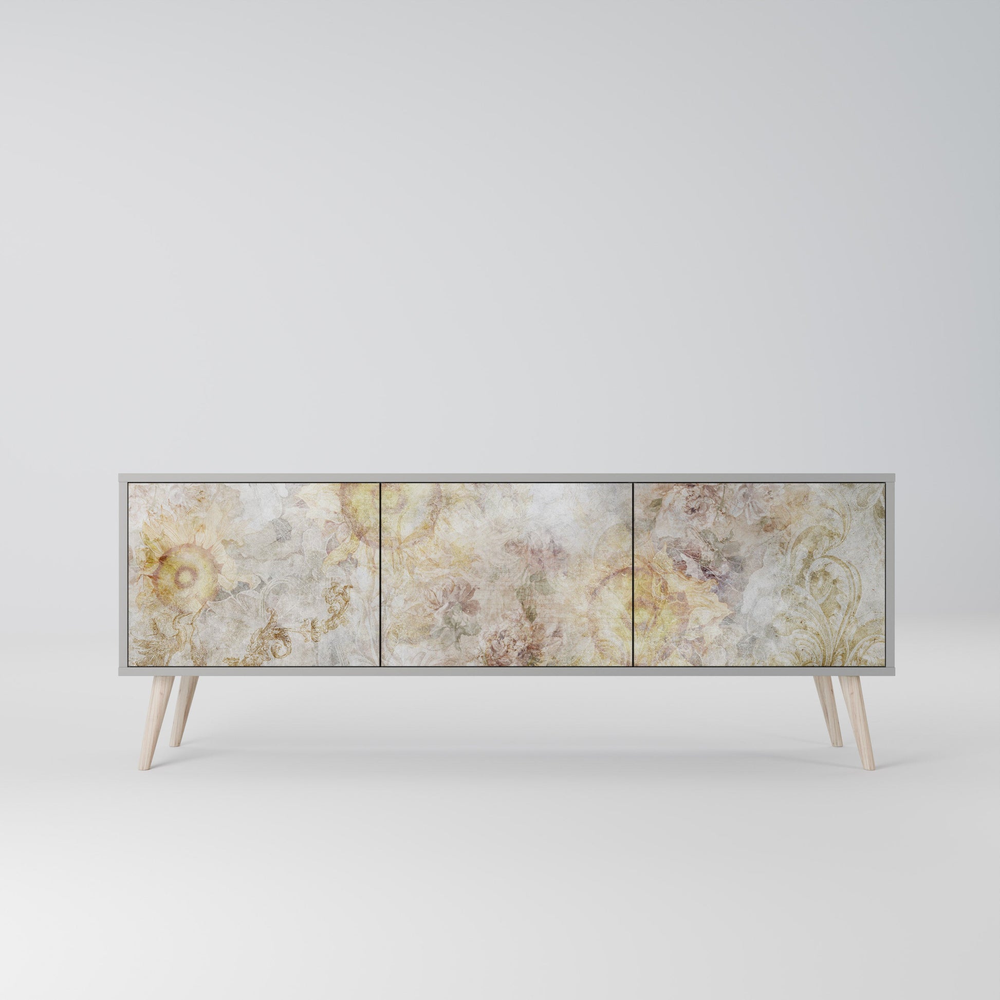 SUNFLOWER BLUR 3-Door TV Stand in Grey Finish